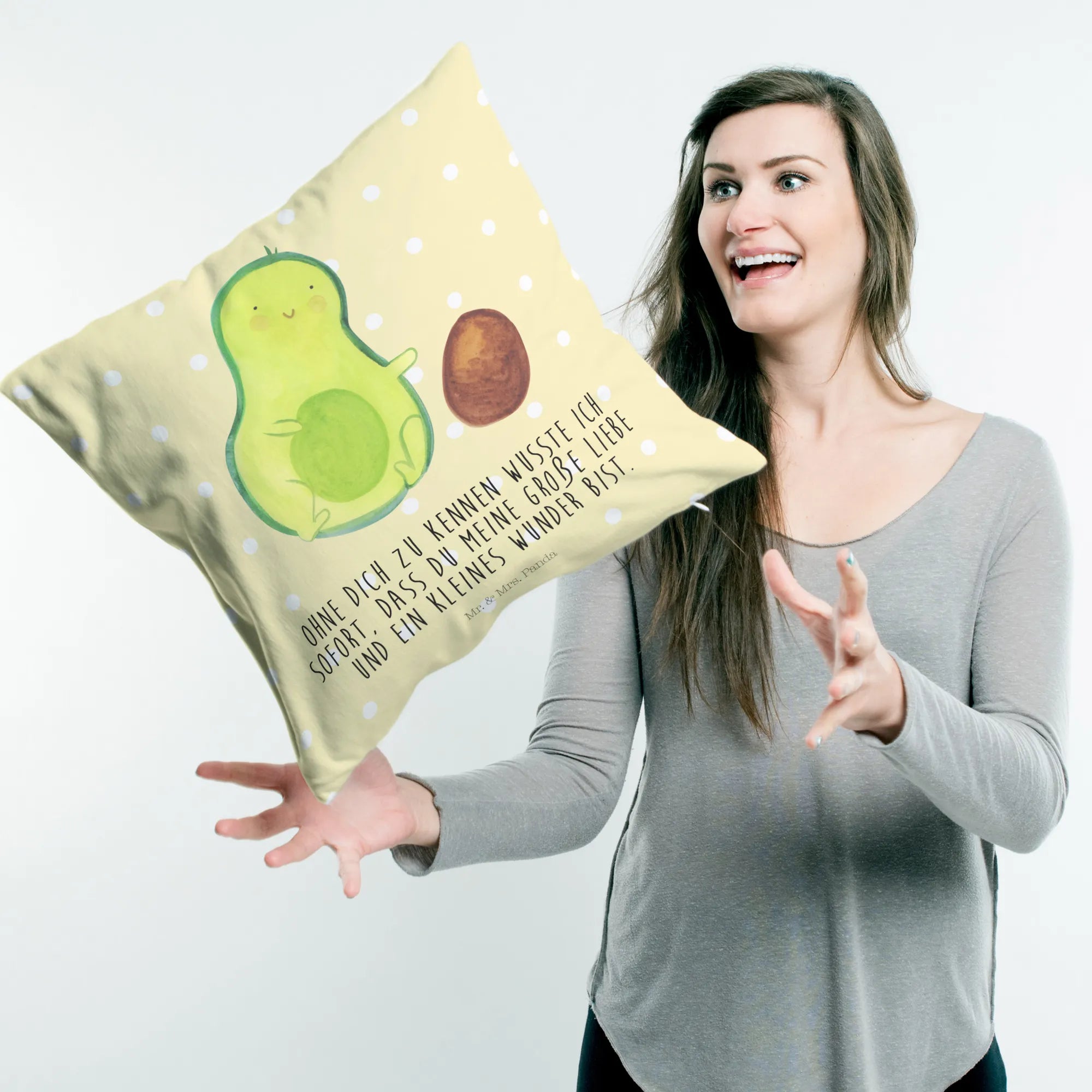 Das 40x40 Kissen "Avocado rollt Kern" von Mr. & Mrs. Panda ist das perfekte Geschenk für alle, die die kleinen Freuden des Lebens schätzen. Mit seiner liebevollen Gestaltung und dem süßen Motto "Ohne dich zu kennen wusste ich sofort, dass du meine große Liebe und ein kleines Wunder bist", bringt dieses Kissen ein Stück Liebe und Freude in dein Zuhause.