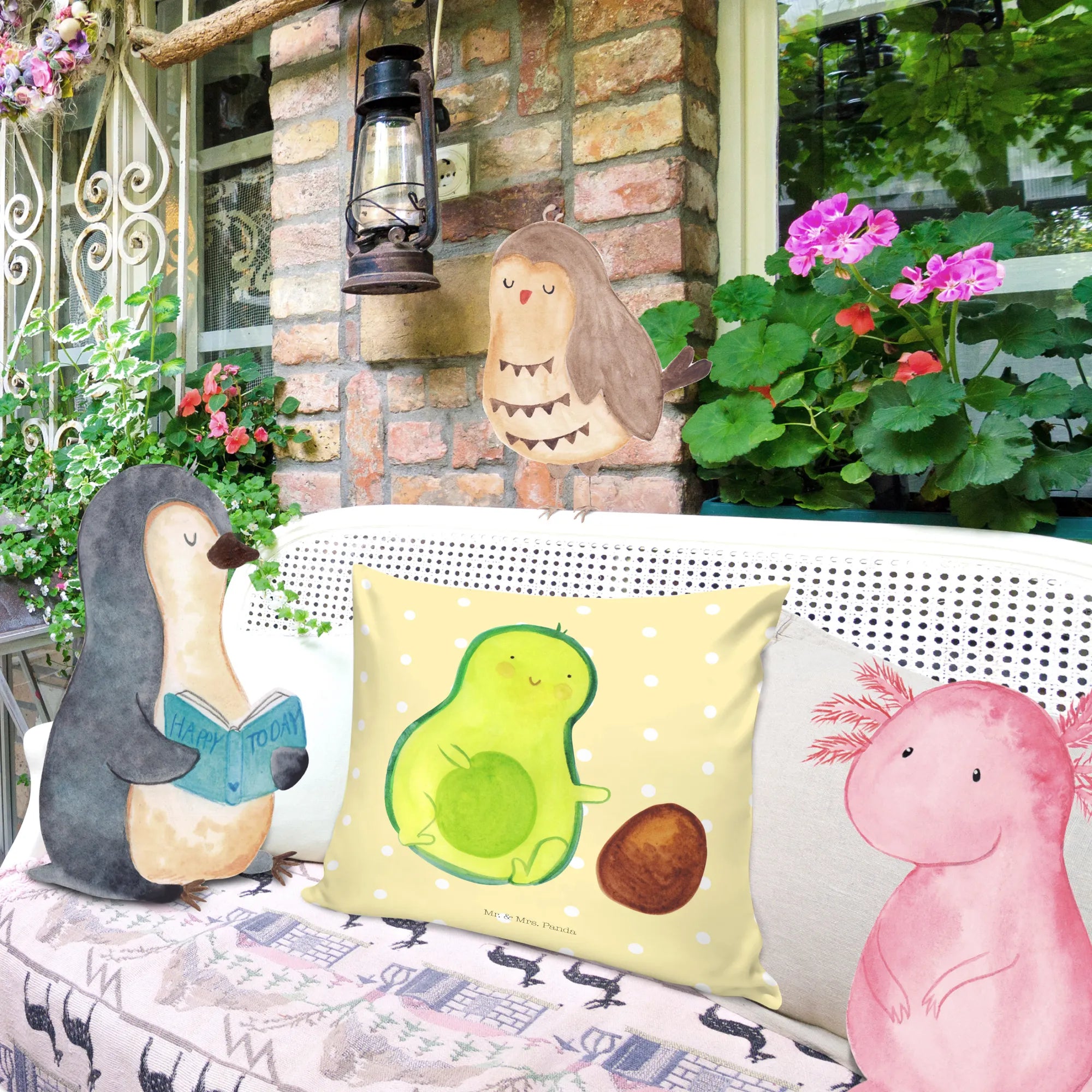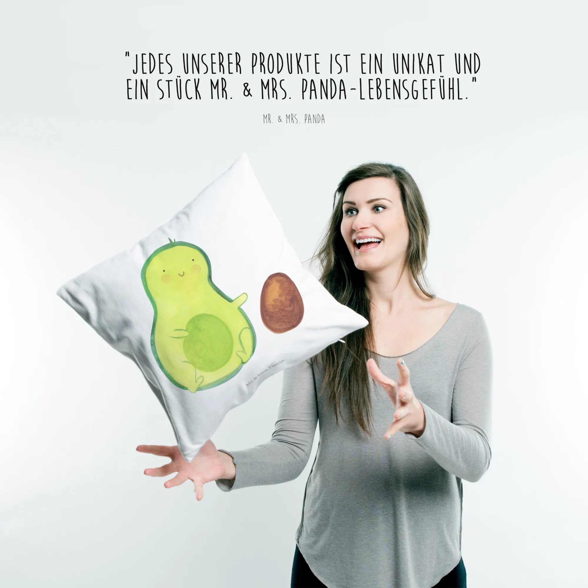 Das Kissen "Avocado rollt Kern" von Mr. & Mrs. Panda ist mehr als nur ein dekoratives Element in deinem Zuhause – es ist ein Stück Lebensfreude und Positivität, das dein Herz erwärmen wird! Mit den perfekten Maßen von 40x40 cm passt es ideal auf dein Sofa, deinen Lieblingssessel oder dein Bett.