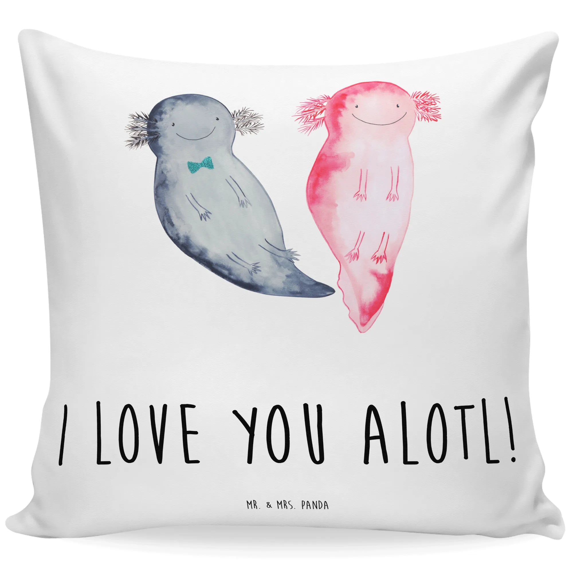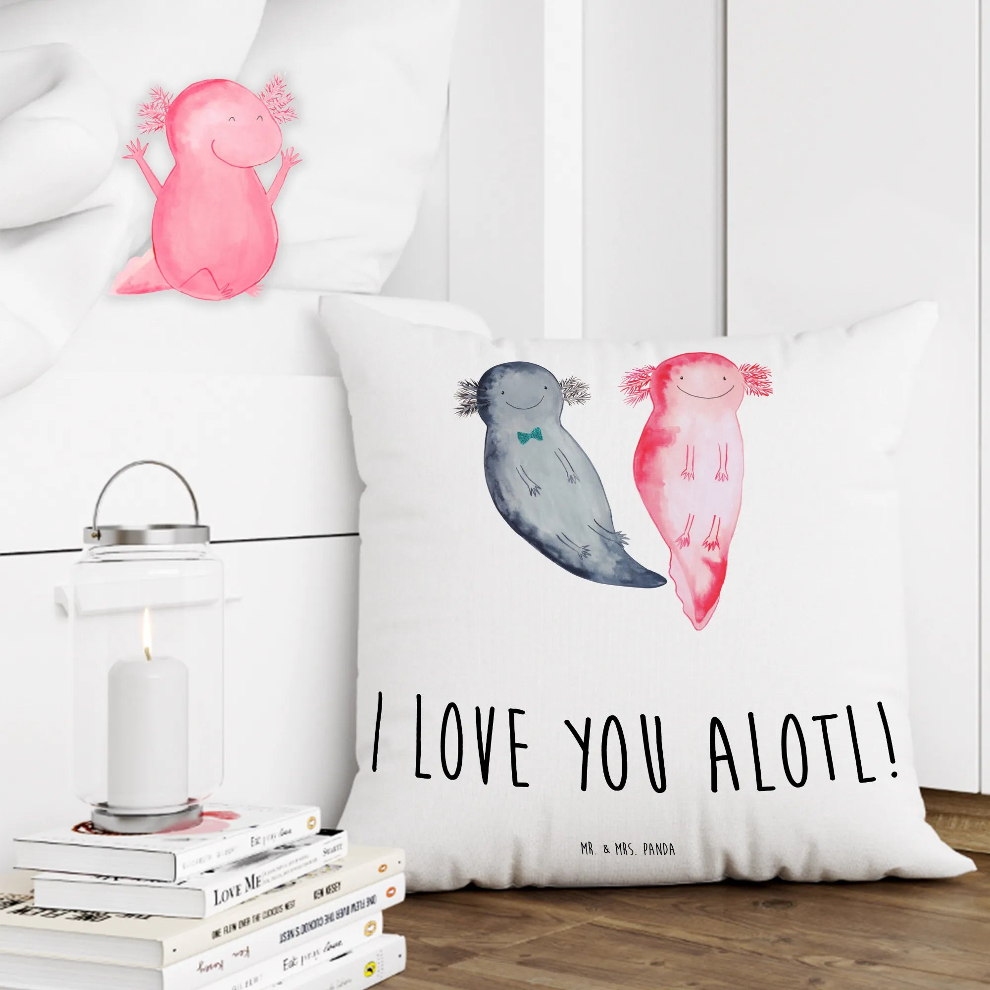 Dieses liebevoll gestaltete Sofakissen zeigt zwei bezaubernde Axolotl, die sich verliebt anstrahlen – begleitet vom charmanten Spruch „I love you alotl!”. Das Motiv stammt aus unserer Liebe-Kollektion und wurde mit viel Herz von Mrs. Panda handgezeichnet. Es eignet sich perfekt als Dekokissen, Zierkissen oder gemütliches Kopfkissen für romantische Stunden.