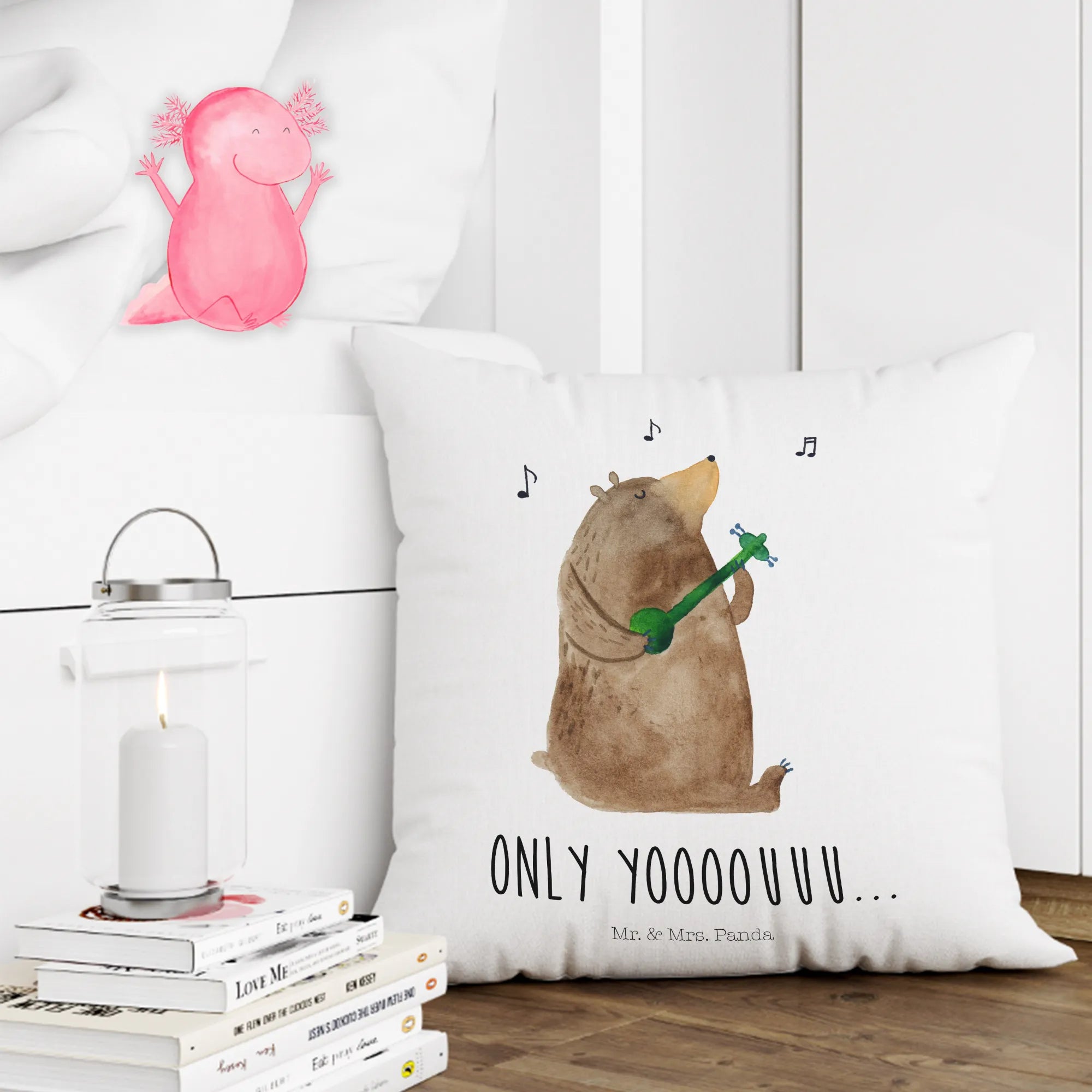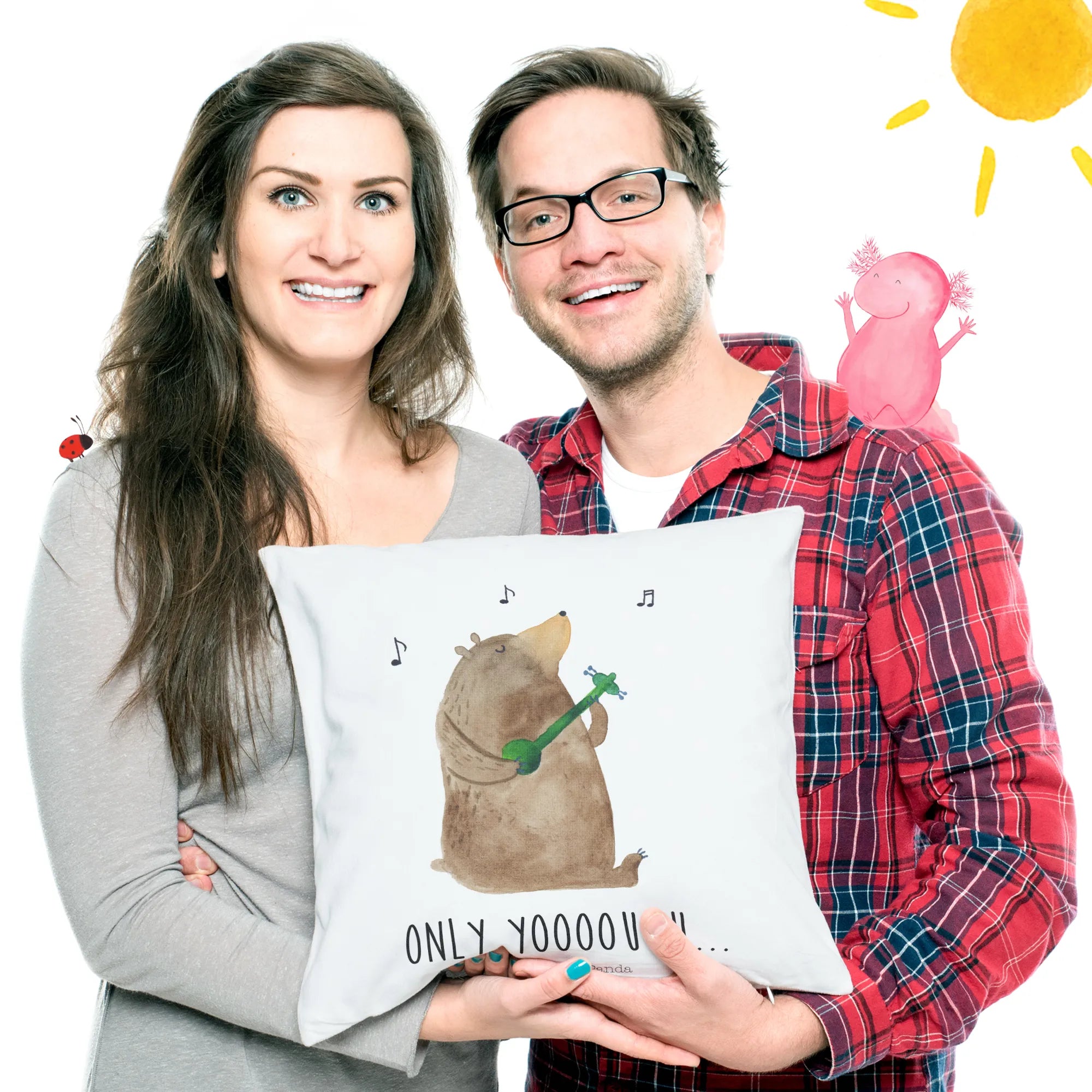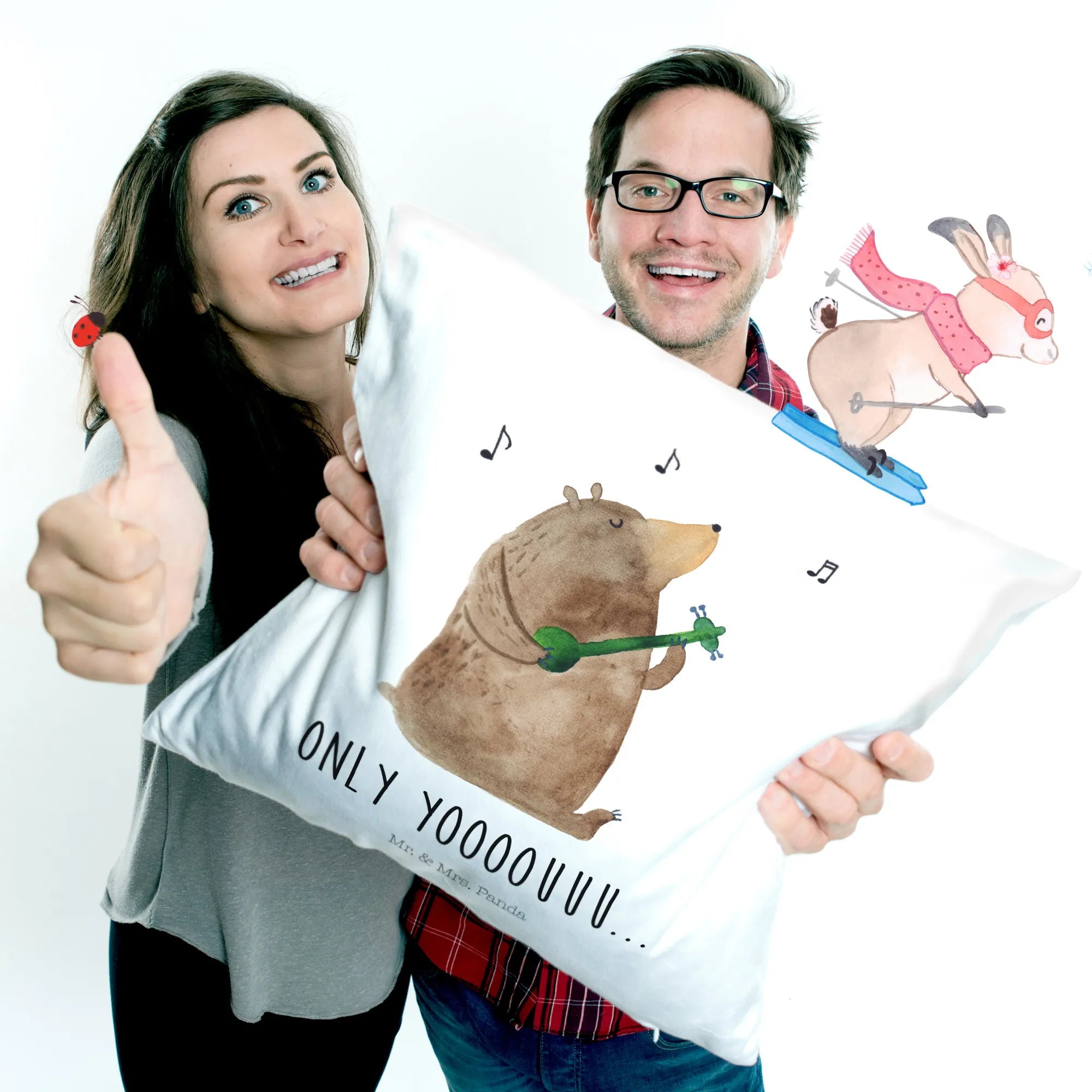 Du liebst Musik und Bären? Dann wird dich unser süßes Bär Gitarre Kissen aus der Bär-Kollektion von Mr. & Mrs. Panda sofort verzaubern. Das Motiv zeigt einen knuffigen Bären, der auf seiner Gitarre spielt, begleitet vom liebevollen Spruch "Only yoooouuu...". Ein echter Hingucker als Sofakissen, Dekokissen oder als gemütliches Kopfkissen.