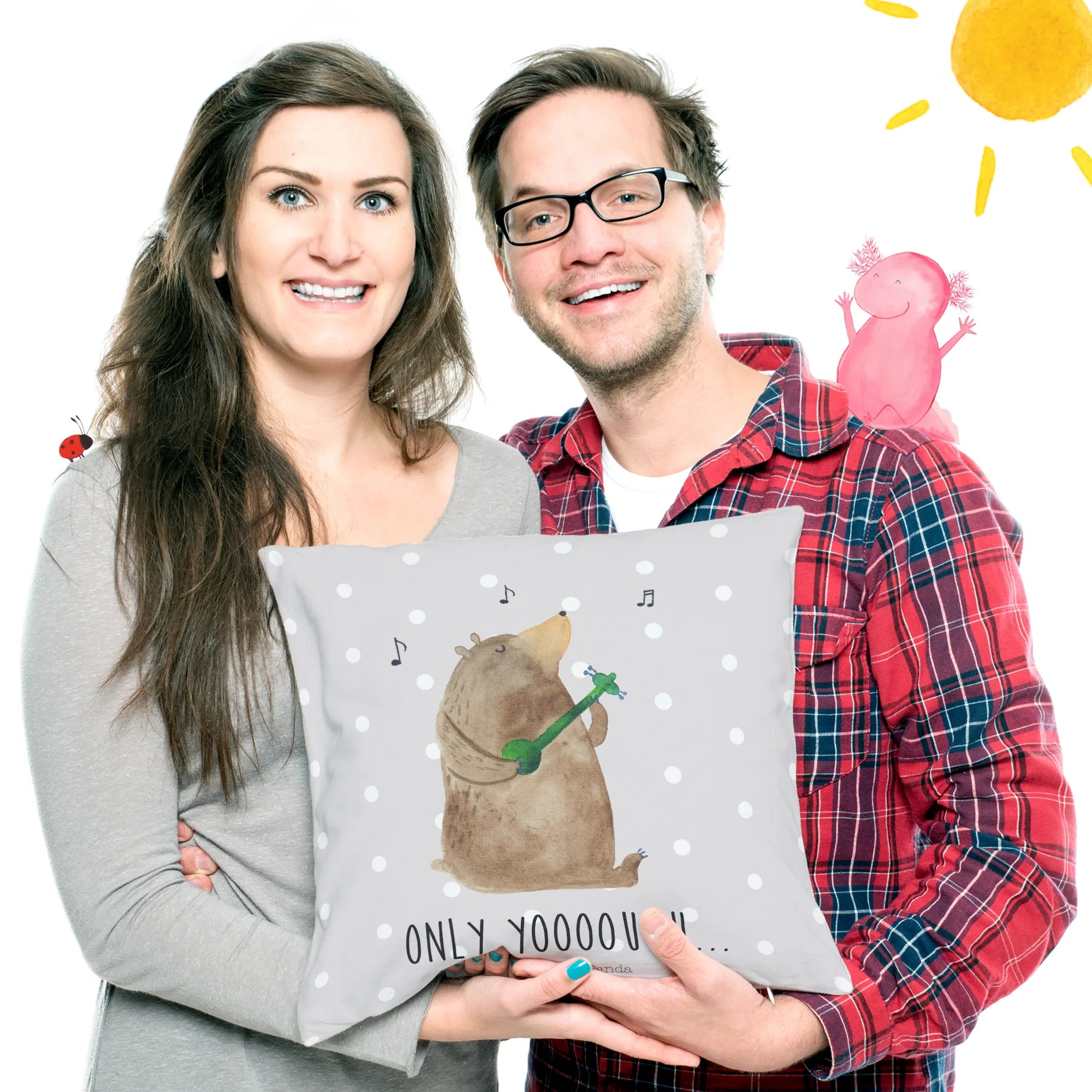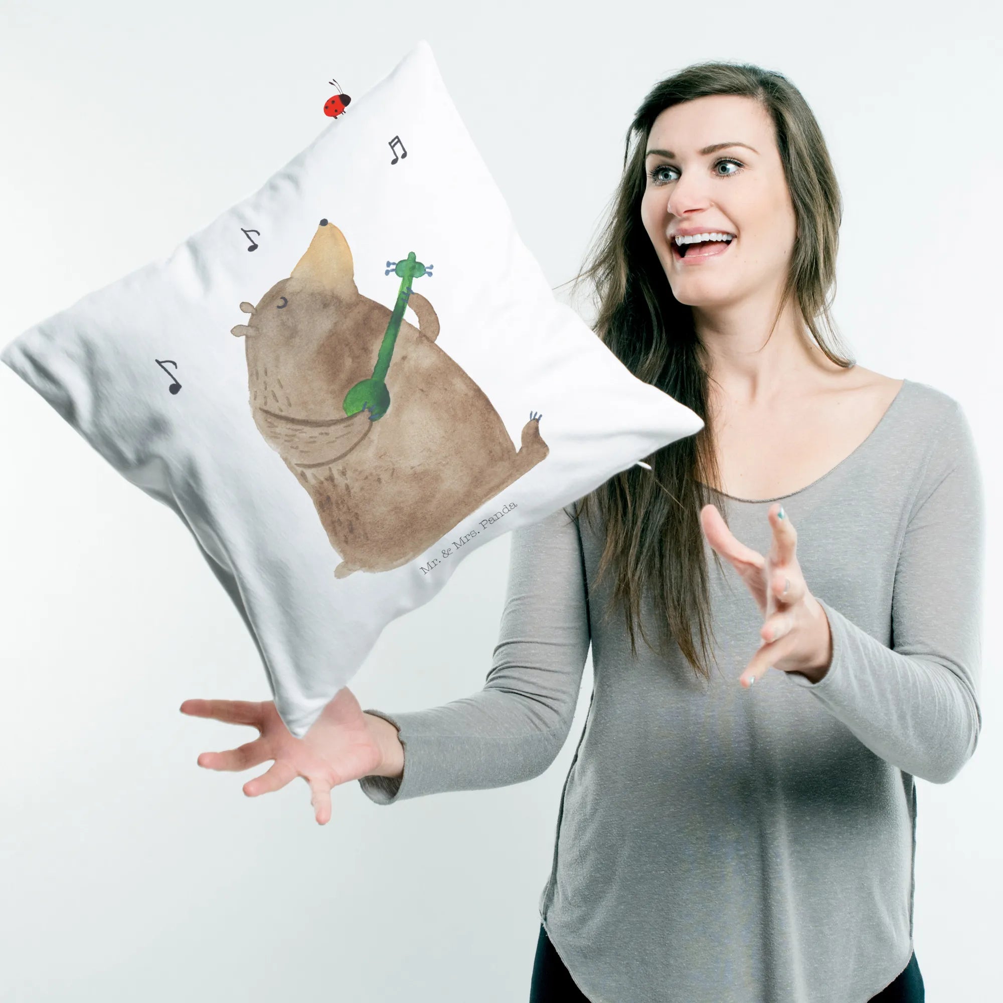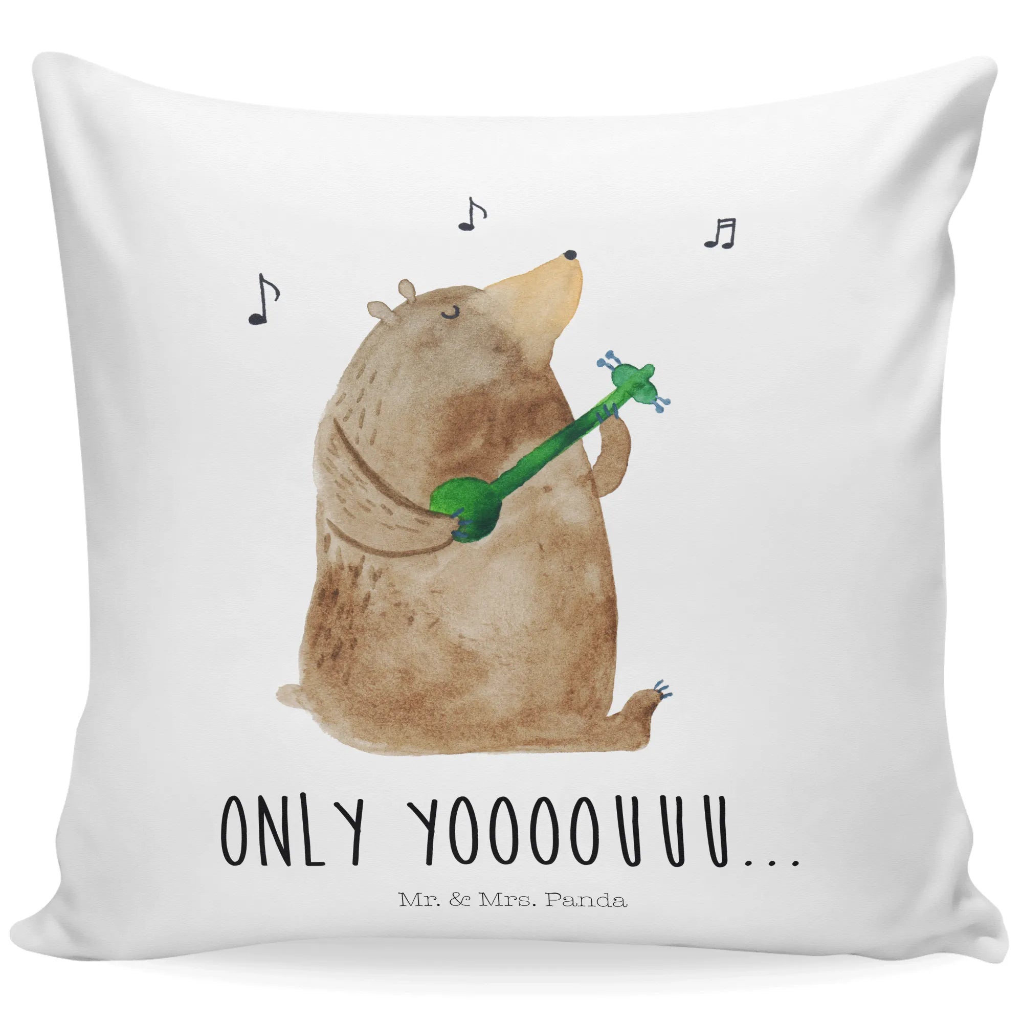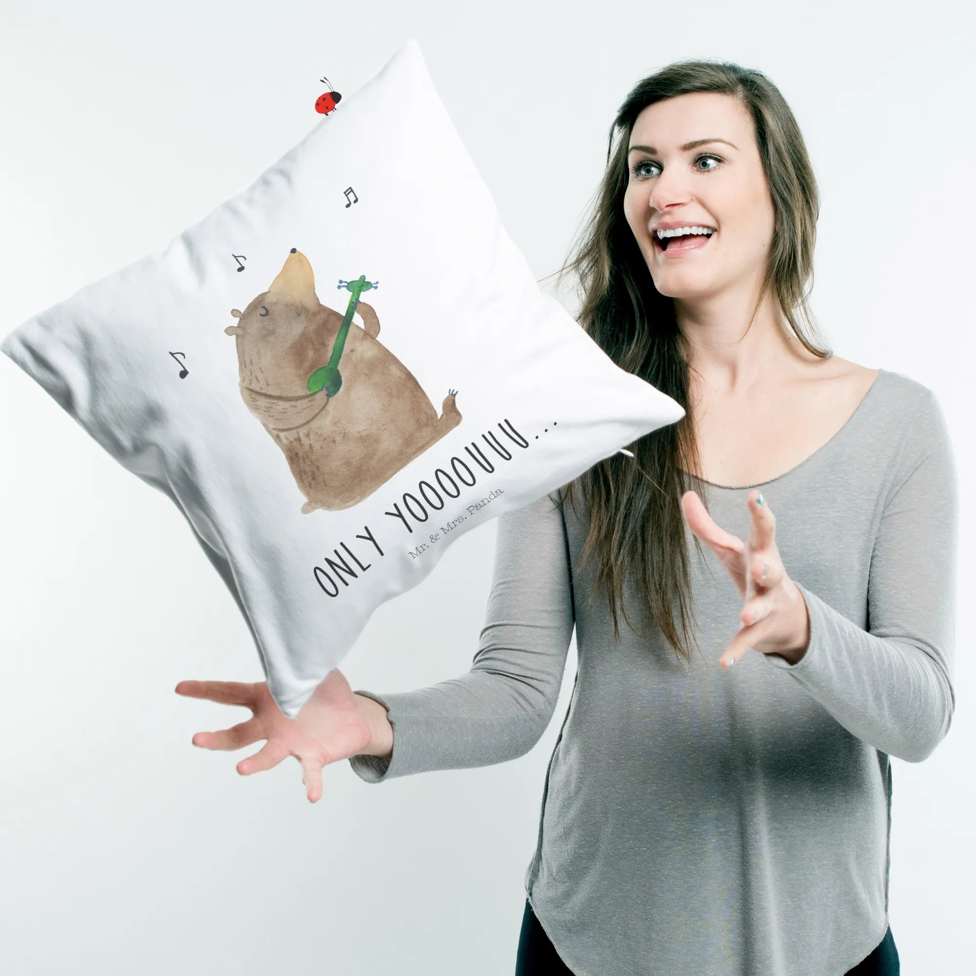 Du liebst Musik und Bären? Dann wird dich unser süßes Bär Gitarre Kissen aus der Bär-Kollektion von Mr. & Mrs. Panda sofort verzaubern. Das Motiv zeigt einen knuffigen Bären, der auf seiner Gitarre spielt, begleitet vom liebevollen Spruch "Only yoooouuu...". Ein echter Hingucker als Sofakissen, Dekokissen oder als gemütliches Kopfkissen.