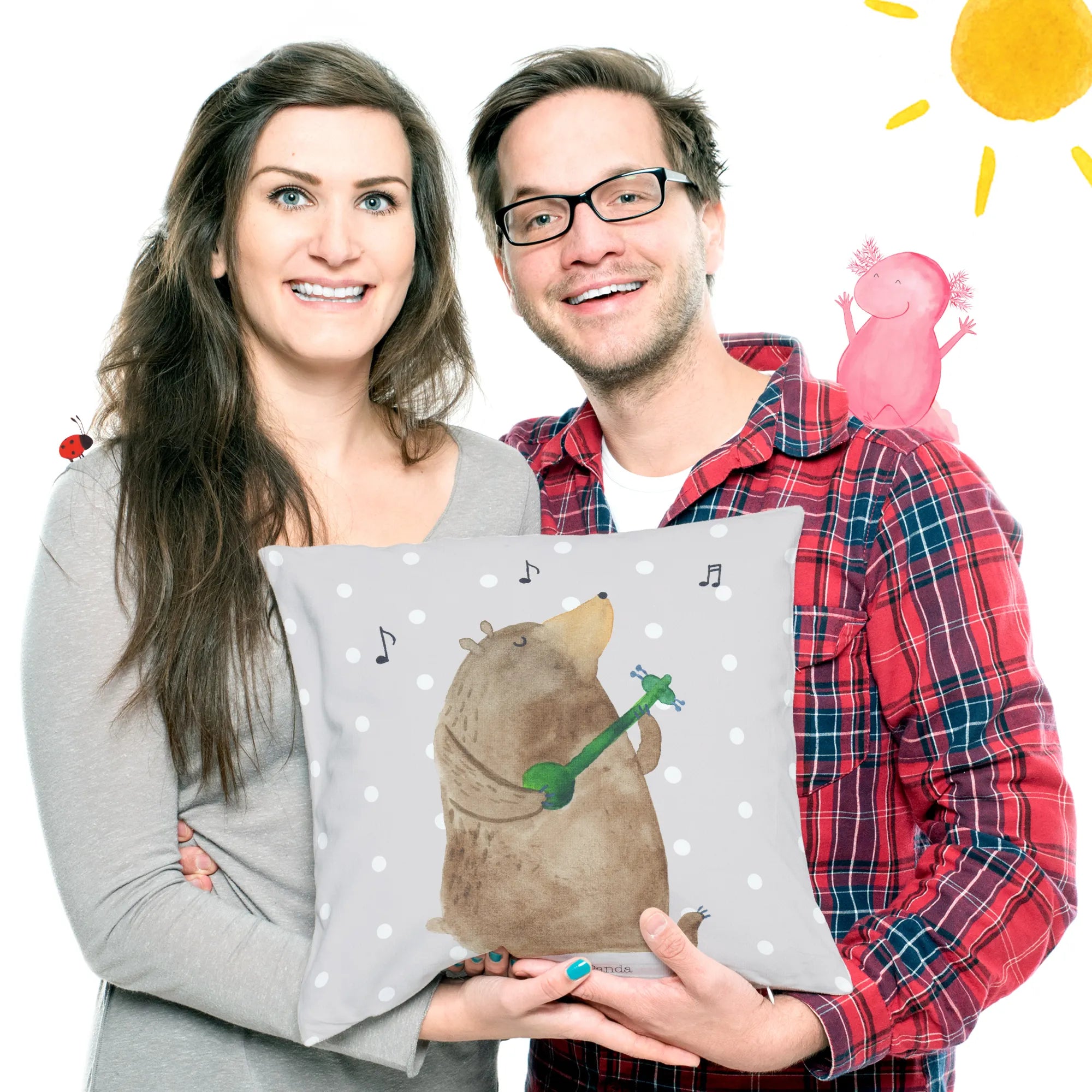 40x40 Kissen Bär Gitarre - mit Spruch - Grau Pastell