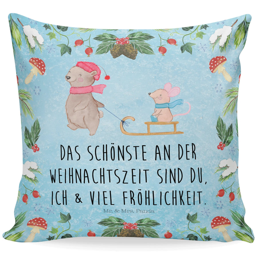 Das 40x40 Kissen "Bär Maus Schlitten" aus der Winter Kollektion von Mr. & Mrs. Panda ist das perfekte Geschenk für alle, die die kalte Jahreszeit in vollen Zügen genießen möchten! Mit seinem liebevoll gestalteten Motiv bringt dieses Kissen ein Stück Weihnachtszauber in jedes Zuhause. Der fröhliche Bär, der seine kleine Maus auf einem Schlitten zieht, versprüht pure Lebensfreude. Umrahmt von winterlichen Elementen wie Schneeflocken und roten Beeren, ist dieses Kissen eine wahre Augenweide und sorgt für eine festliche Atmosphäre.