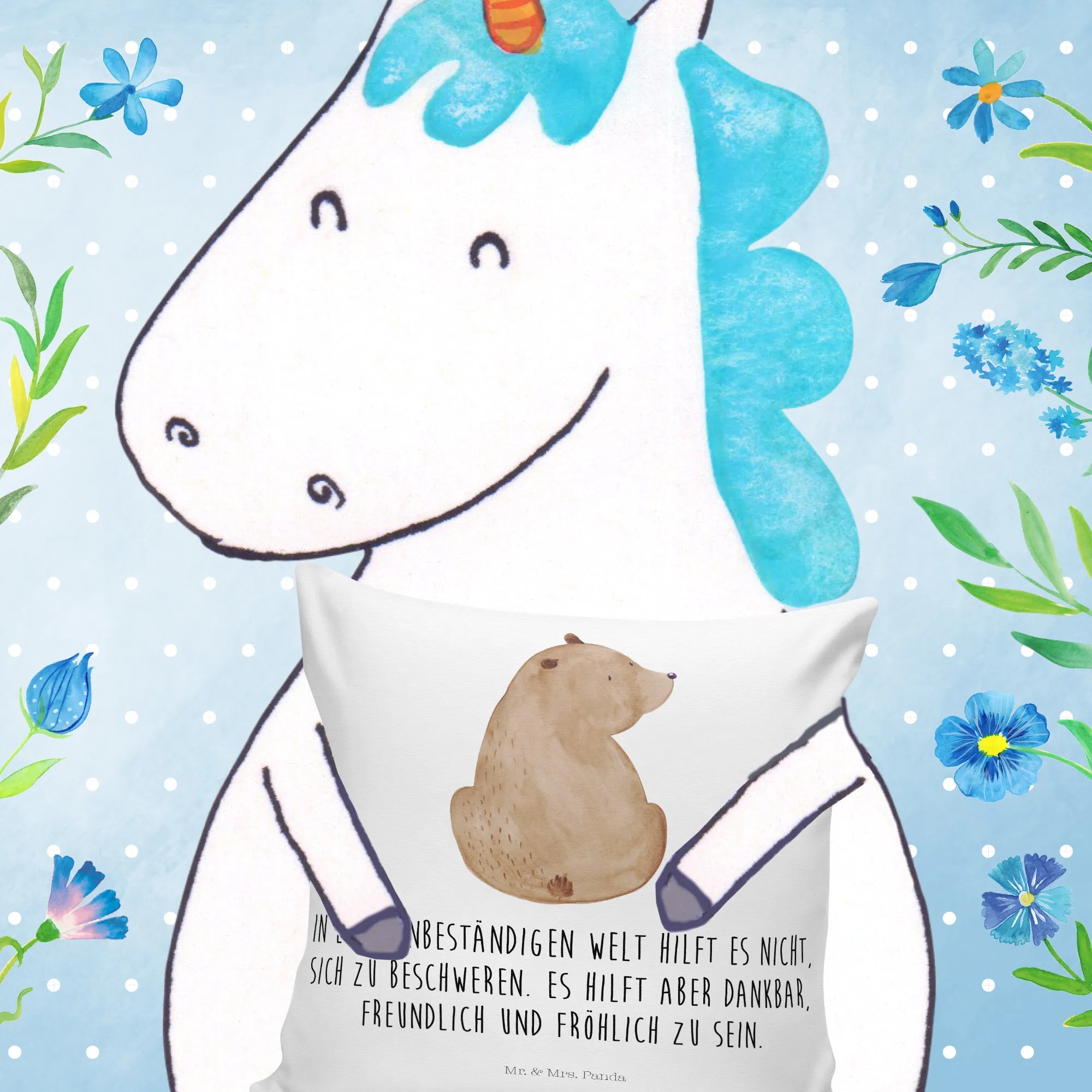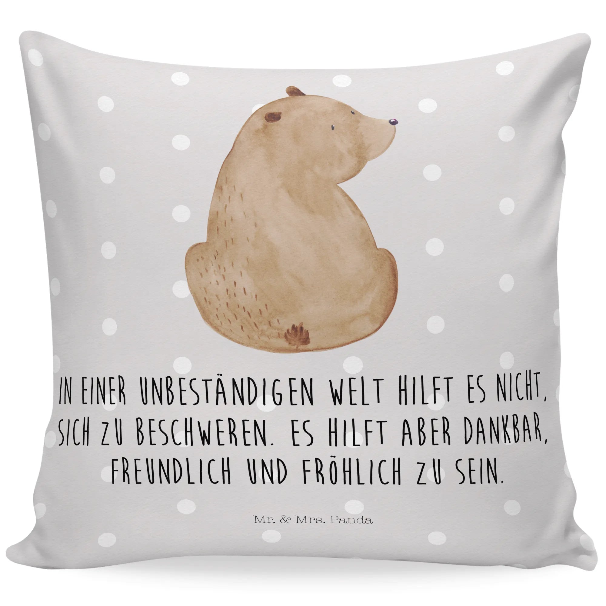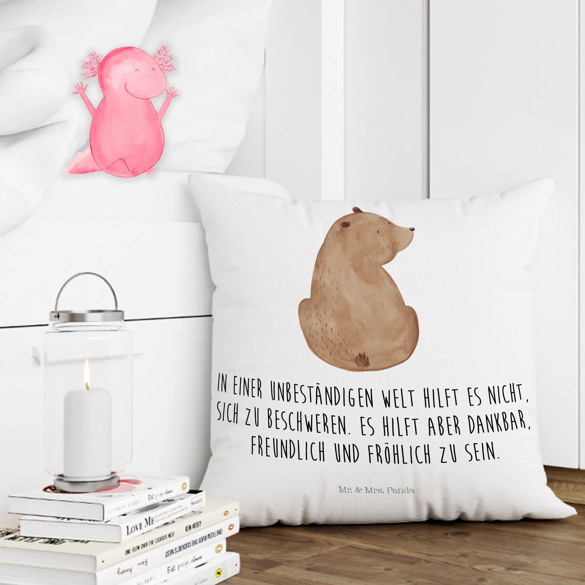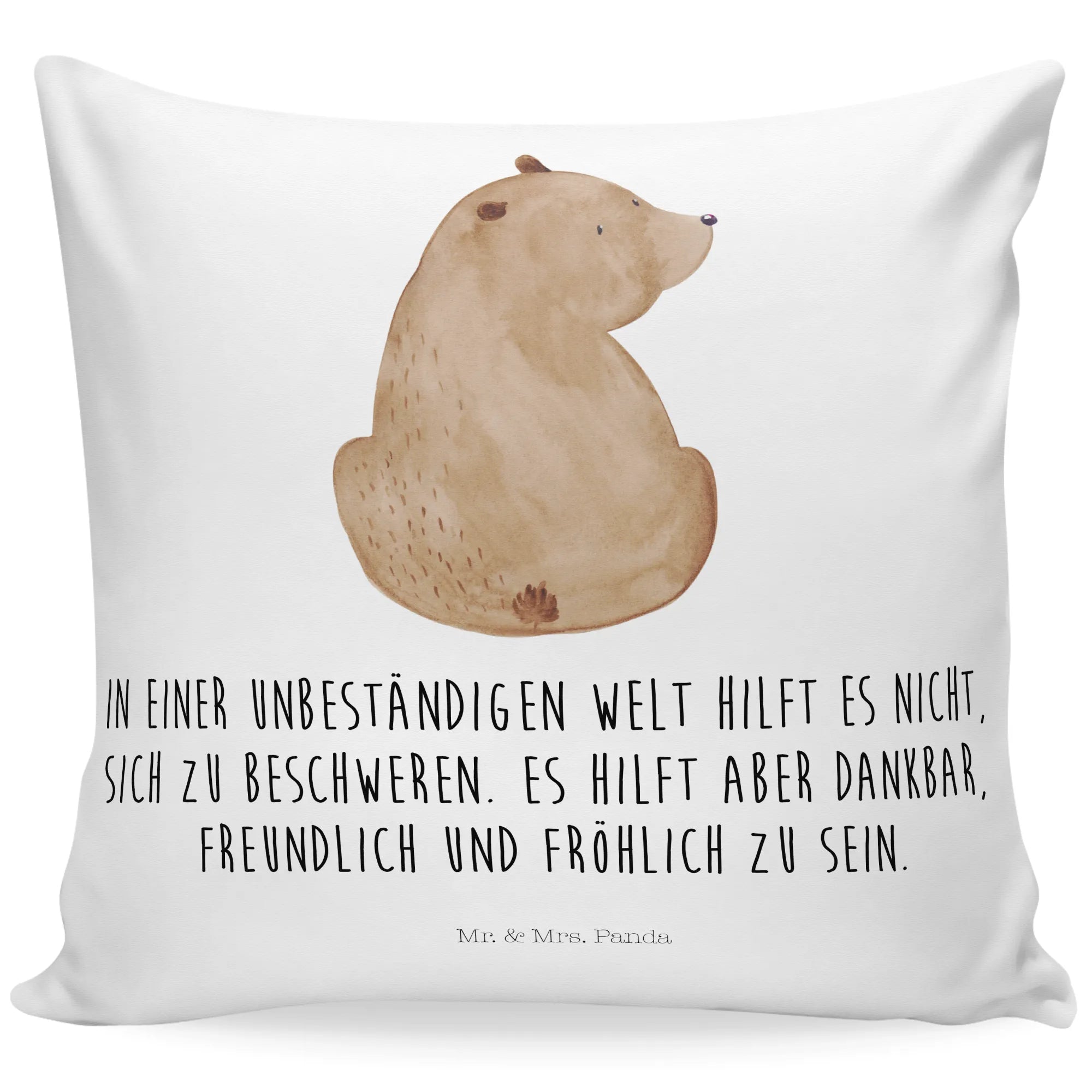 Das 40x40 Kissen mit dem süßen Motiv Bär Schulterblick von Mr. & Mrs. Panda ist das perfekte Geschenk für all jene, die Bären lieben und einen Hauch von Gemütlichkeit in ihr Zuhause bringen möchten. Mit diesem zauberhaften Kissen holst du dir nicht nur ein wunderschönes Deko-Kissen nach Hause, sondern auch eine Portion Lebensfreude und Motivation! Der niedliche Bär schaut charmant über seine Schulter und vermittelt die Botschaft: 'In einer unbeständigen Welt hilft es nicht, sich zu beschweren. Es hilft aber dankbar, freundlich und fröhlich zu sein.'