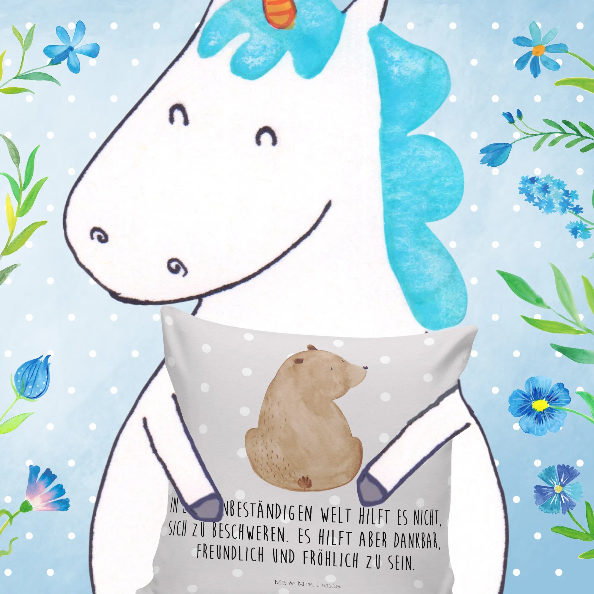 Bereite Freunden oder Familienmitgliedern eine Freude, oder gönn dir selbst dieses kuschelige Highlight! In einer Welt, die manchmal unbeständig ist, sorgt dieser Bär dafür, dass du dankbar, freundlich und fröhlich bleibst. Die liebevollen Illustrationen von Mrs. Panda sind von Hand gezeichnet und verleihen dem Kissen einen einzigartigen Charme.