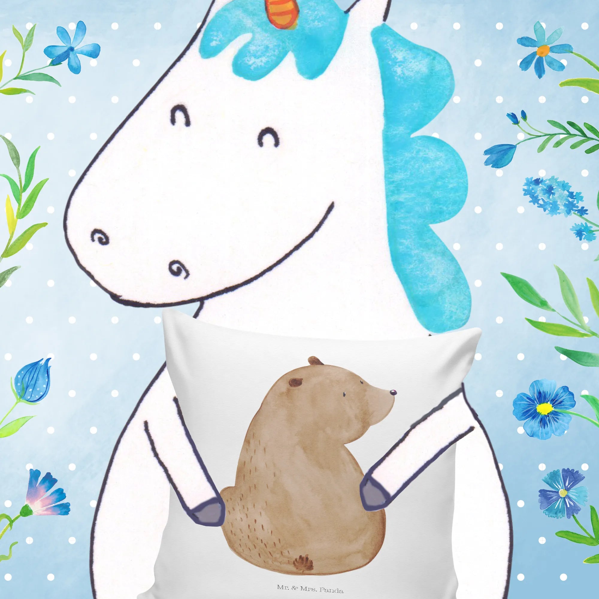 Das Kissen eignet sich hervorragend sowohl als Sofakissen als auch als Zierkissen auf dem Bett oder im Sessel. Du möchtest einem lieben Menschen eine Freude machen? Dieses Kissen ist das ideale Geschenk für Geburtstage, Weihnachten oder einfach so, um jemanden zu überraschen! Die Bärenliebhaber werden sich über diese süße Deko mit dem positiven Spruch freuen und sie wird jedem Raum einen gemütlichen Charme verleihen.