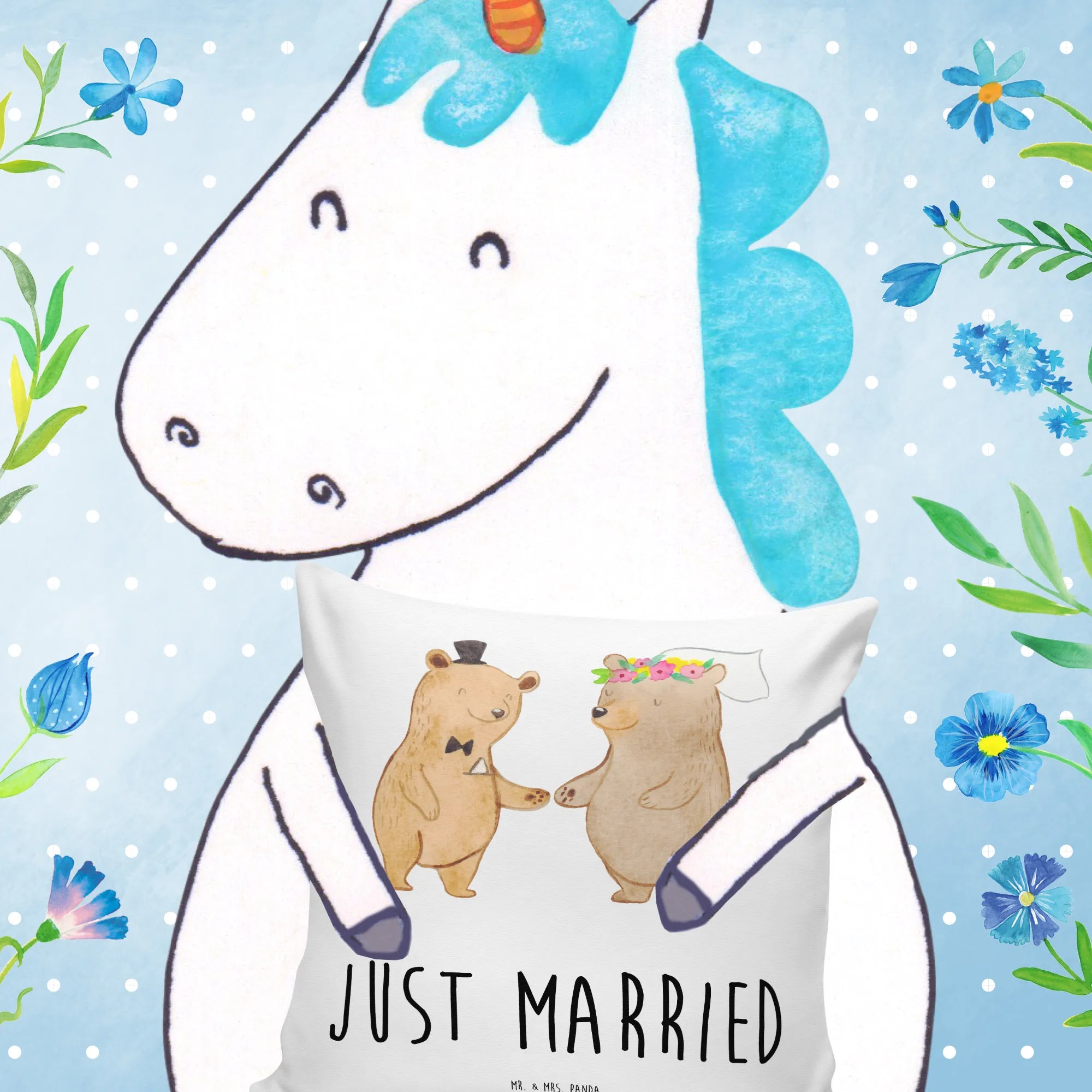 Verleihe Deinem Zuhause einen Hauch von Romantik und liebevoller Erinnerung mit dem Kissen aus der Hochzeit Kollektion von Mr. & Mrs. Panda. Egal ob als Dekokissen auf dem Sofa oder als Zierkissen im Schlafzimmer, dieses Kissen erzählt die Geschichte zweier Bären, die in Liebe verbunden sind und wird zum besonderen Hingucker in jeder Wohnung.