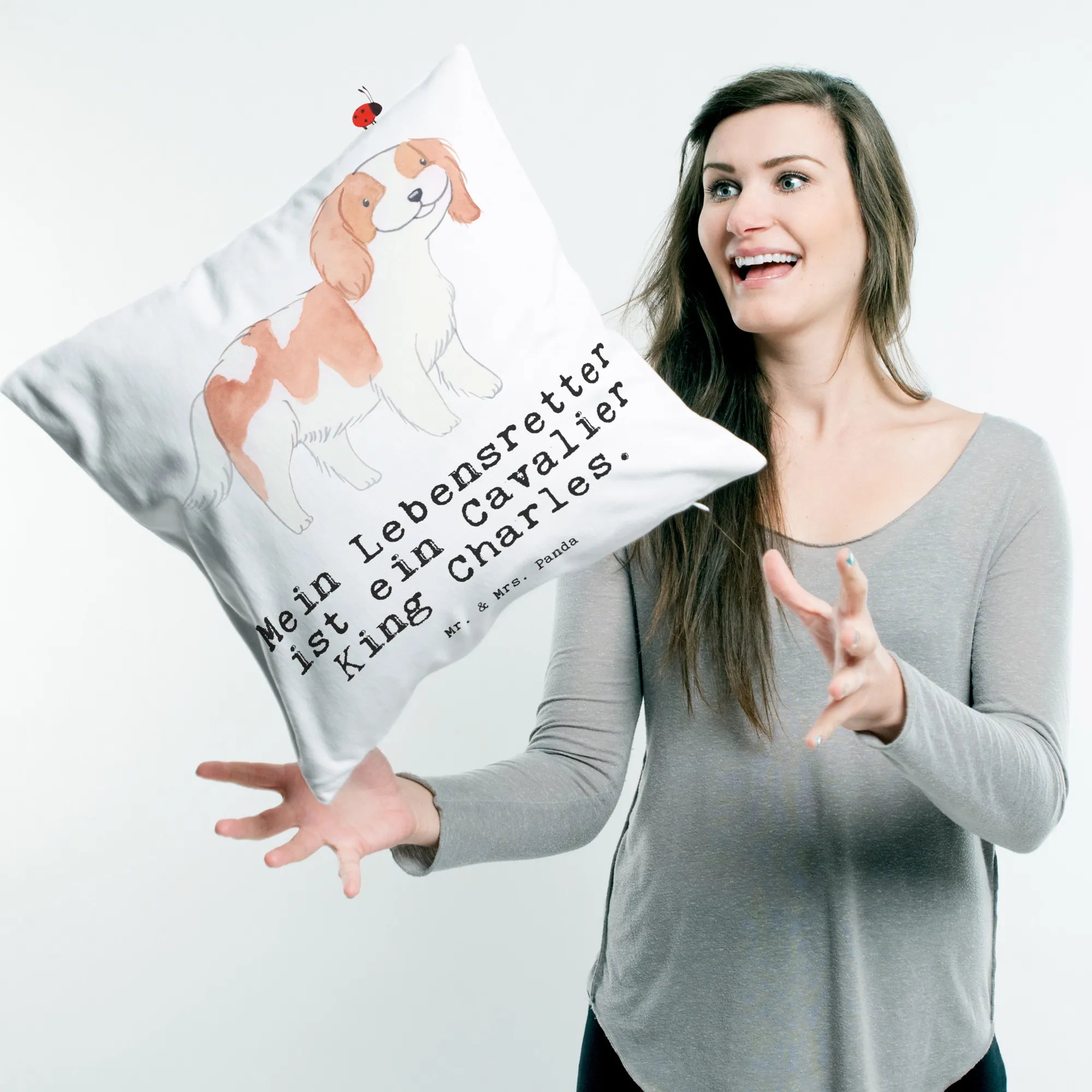 Die Hunderasse Kollektion von Mr. & Mrs. Panda ist für all die Hundeliebhaber konzipiert, die nicht genug von ihren Vierbeinern bekommen können. Jedes Kissen ist nicht nur ein Dekorationsobjekt, sondern auch ein Ausdruck deiner Liebe zu diesen wunderbaren Tieren. Der Cavalier King Charles Spaniel ist bekannt für seine freundliche und liebevolle Natur, und genau das spiegelt sich in diesem Kissen wider.