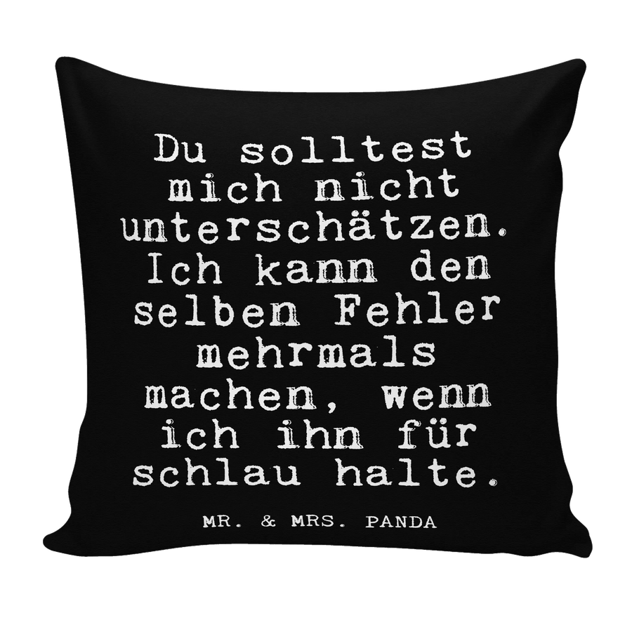 Das perfekte Kissen für jeden, der es liebt, gemütlich zu wohnen und sich selbst oder seinen liebsten Freunden ein besonderes Geschenk zu machen. Das 40x40 Kissen von Mr. & Mrs. Panda besticht durch das originelle und humorvolle Motto "Du solltest mich nicht unterschätzen. Ich kann den selben Fehler mehrmals machen, wenn ich ihn für schlau halte." Dieses Zitat bringt nicht nur ein Lächeln ins Gesicht, sondern sorgt auch für Gesprächsstoff auf deinem Sofa.