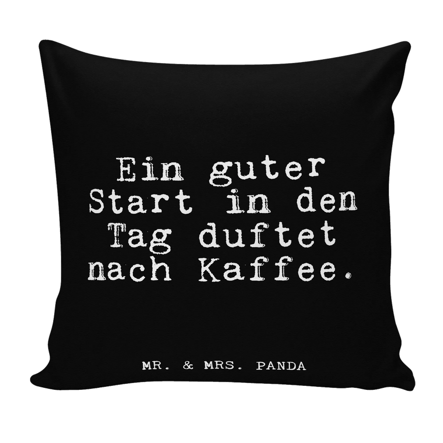 Das traumhafte 40x40 Kissen "Ein guter Start in den Tag duftet nach Kaffee" von Mr. & Mrs. Panda ist das perfekte Geschenk für alle Kaffeeliebhaber!