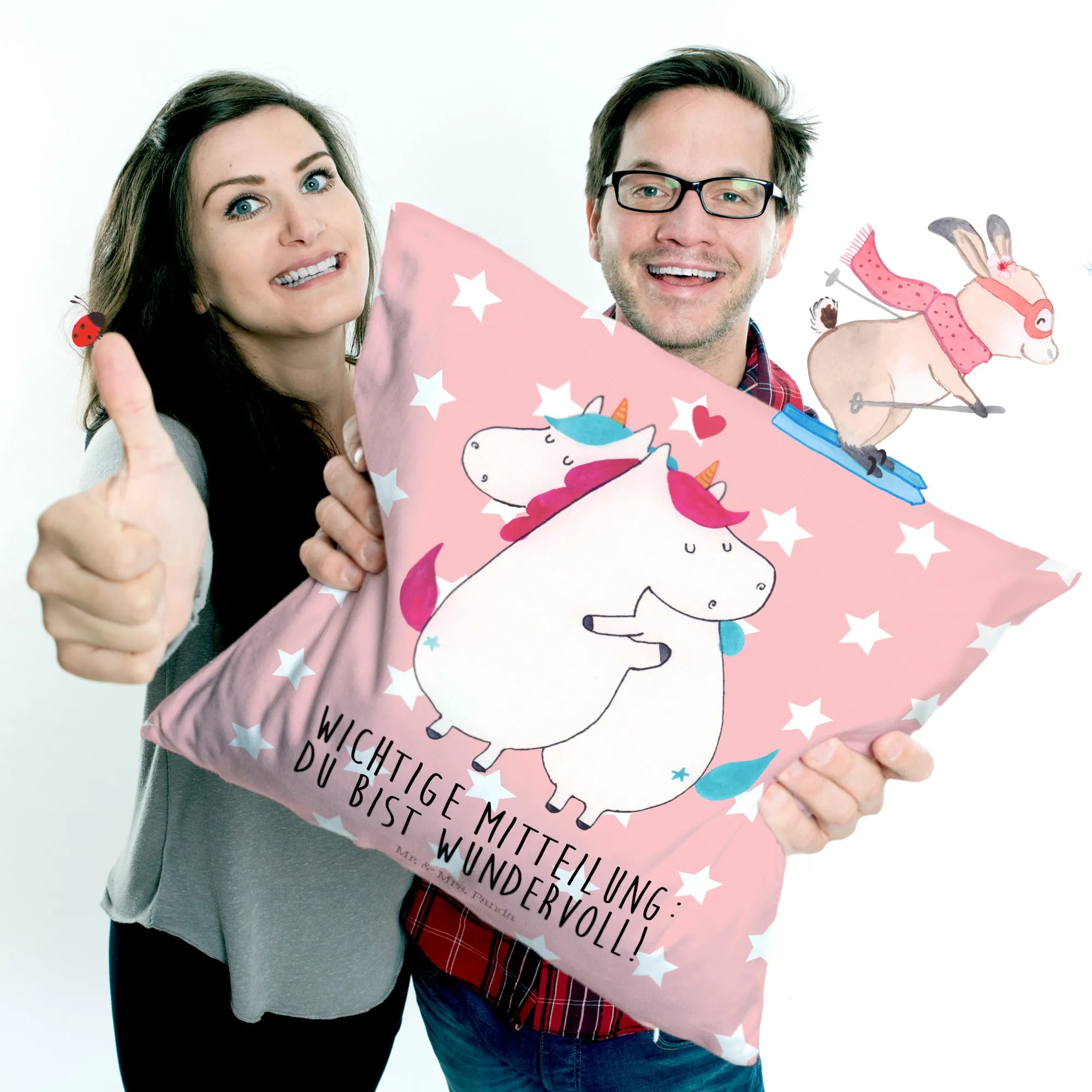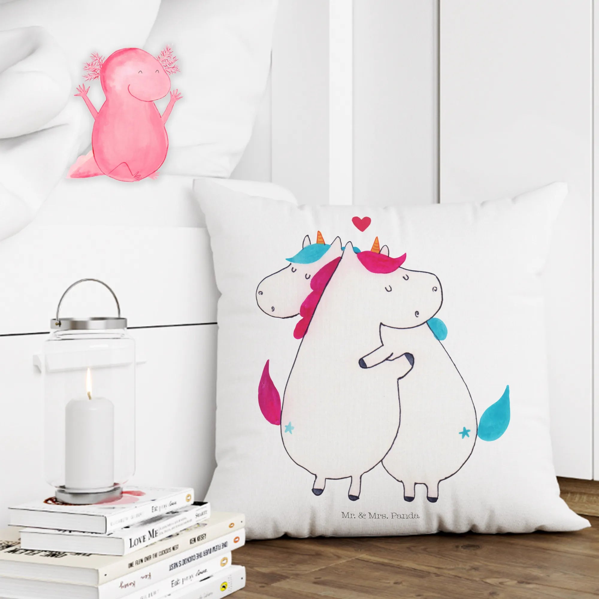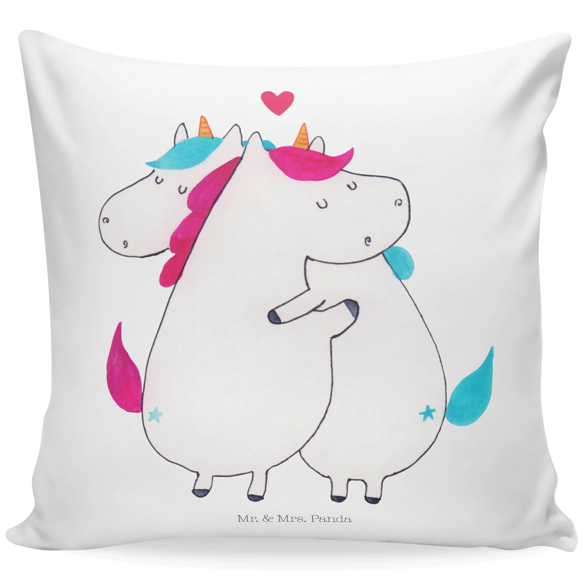 Dieses Kissen von Mr. & Mrs. Panda ist nicht nur unglaublich kuschelig, sondern auch ein echter Hingucker für jedes Sofa oder Bettzimmer. Die weiche Mikrofaser sorgt für ein angenehmes Gefühl und lädt zum Kuscheln ein. Das bezaubernde Design von zwei niedlichen Einhörnern, die sich umarmen, versprüht eine positive Botschaft, die dein Herz erwärmen wird.