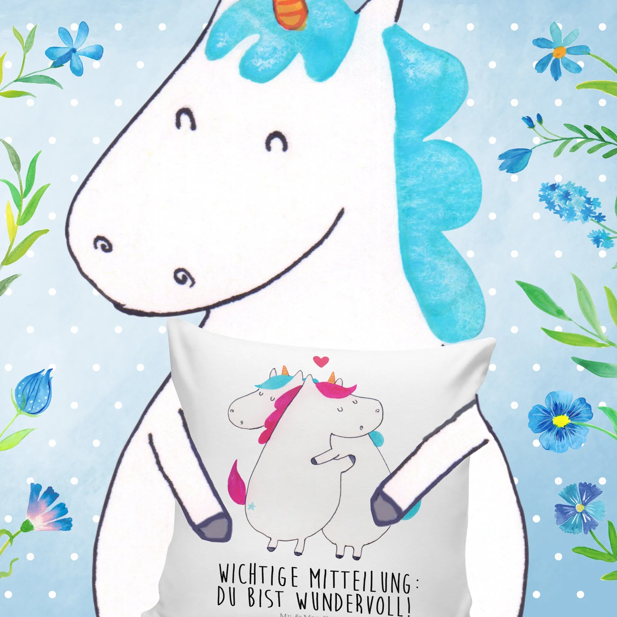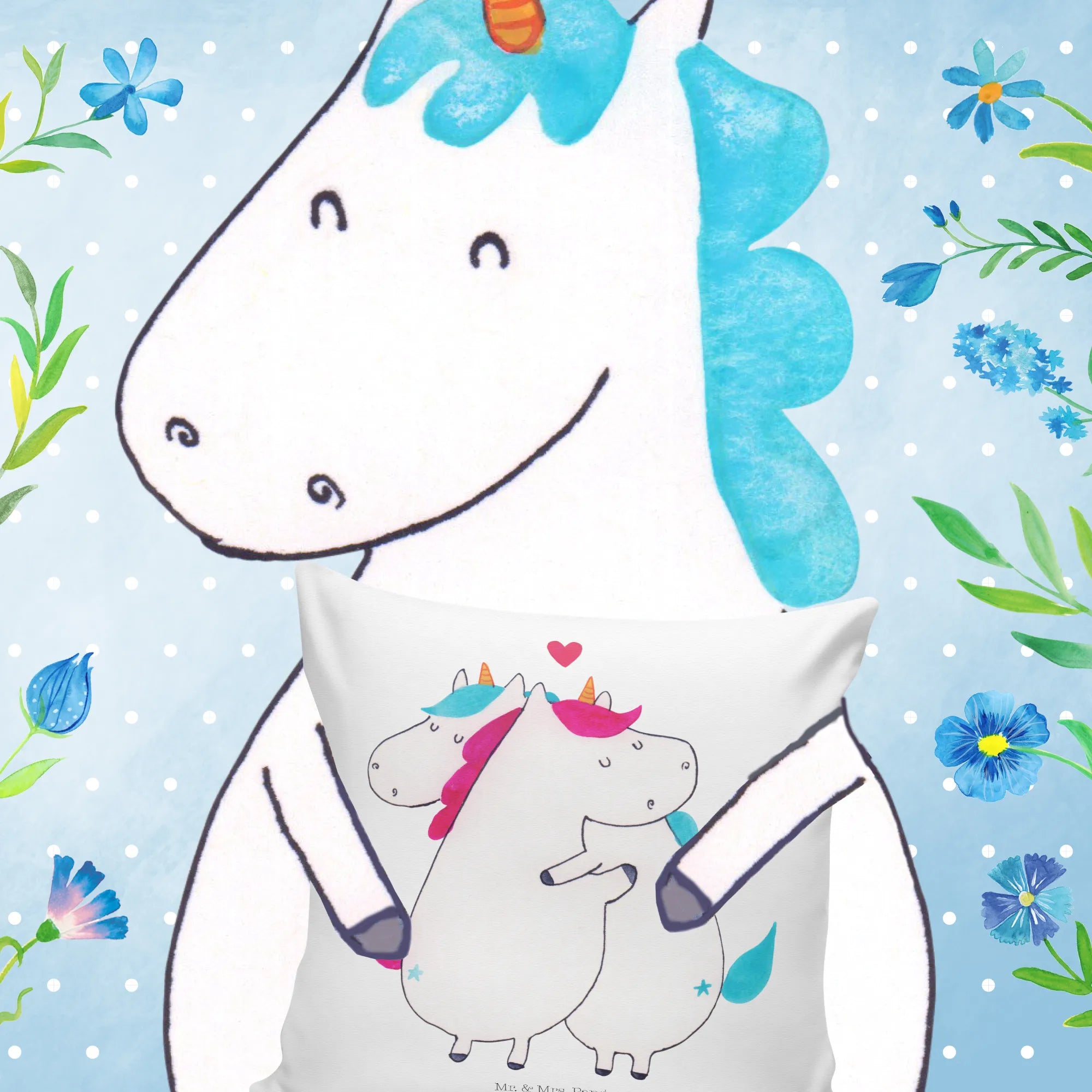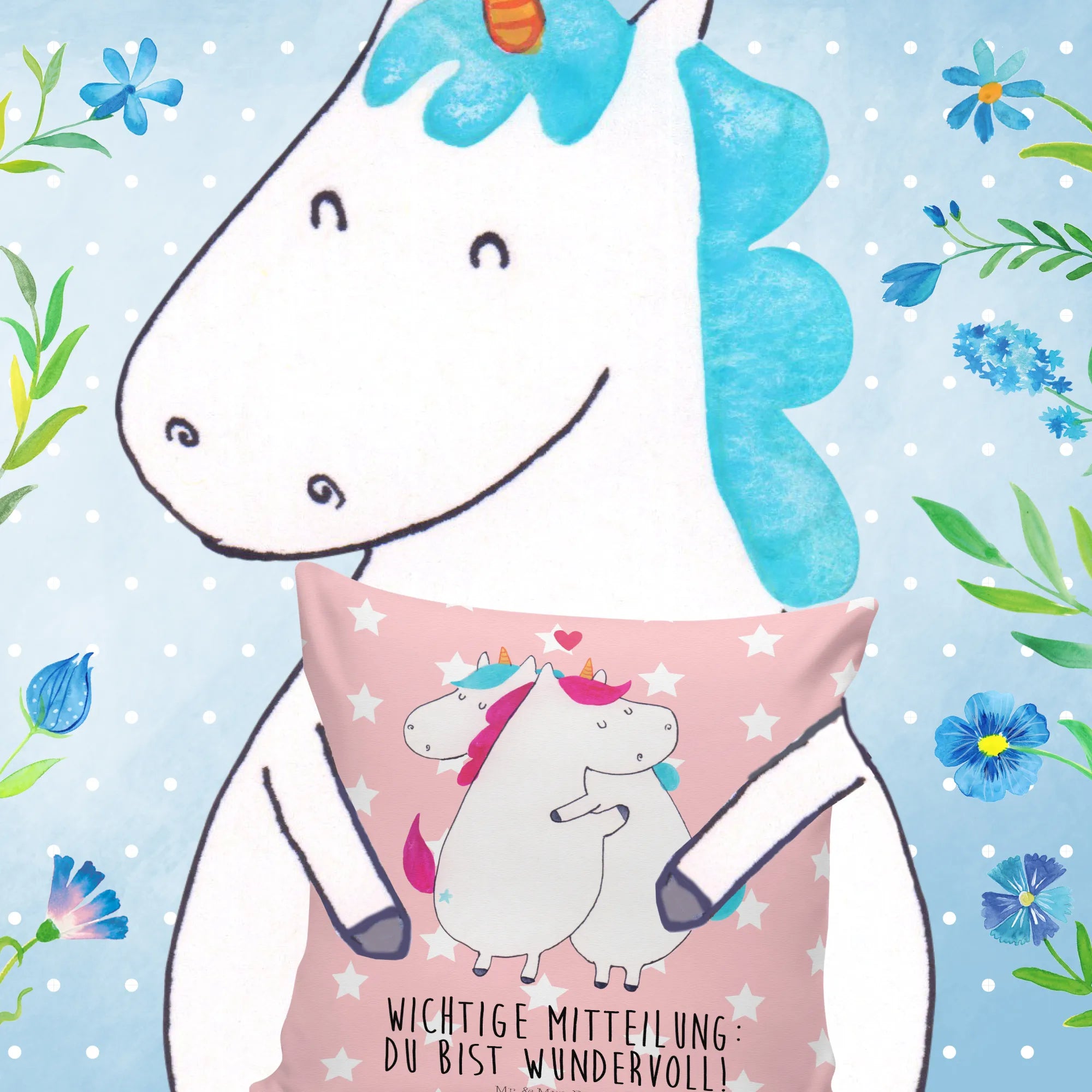 Dieses Kissen von Mr. & Mrs. Panda ist nicht nur unglaublich kuschelig, sondern auch ein echter Hingucker für jedes Sofa oder Bettzimmer. Die weiche Mikrofaser sorgt für ein angenehmes Gefühl und lädt zum Kuscheln ein. Das bezaubernde Design von zwei niedlichen Einhörnern, die sich umarmen, versprüht eine positive Botschaft, die dein Herz erwärmen wird.