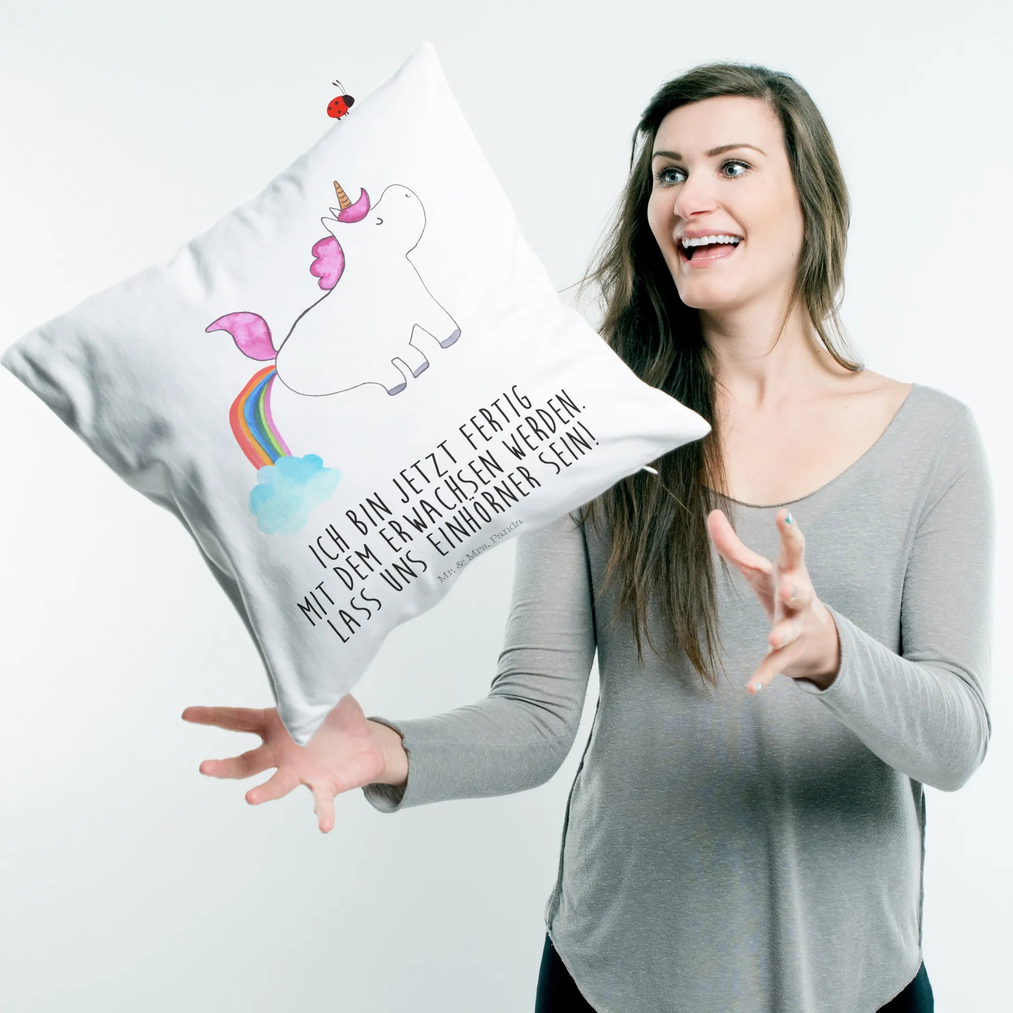 Suchst du nach dem perfekten Geschenk für eine Freundin oder vielleicht für dich selbst, die Einhörner und alles, was damit zu tun hat, liebt? Dann ist das 40x40 Kissen "Einhorn Pupsend" aus unserer Einhorn-Kollektion das ideale Wohnaccessoire! Dieses traumhaft schöne Kissen begeistert nicht nur mit seinem knuffigen Design, sondern auch mit einem tollen Spruch: "Ich bin jetzt fertig mit dem Erwachsenwerden. Lass uns Einhörner sein!" Es ist der perfekte humorvolle Begleiter für alle, die das Erwachsensein manchmal etwas anstrengend finden und dabei eine große Portion Spaß und Fantasie in ihr Leben bringen möchten.