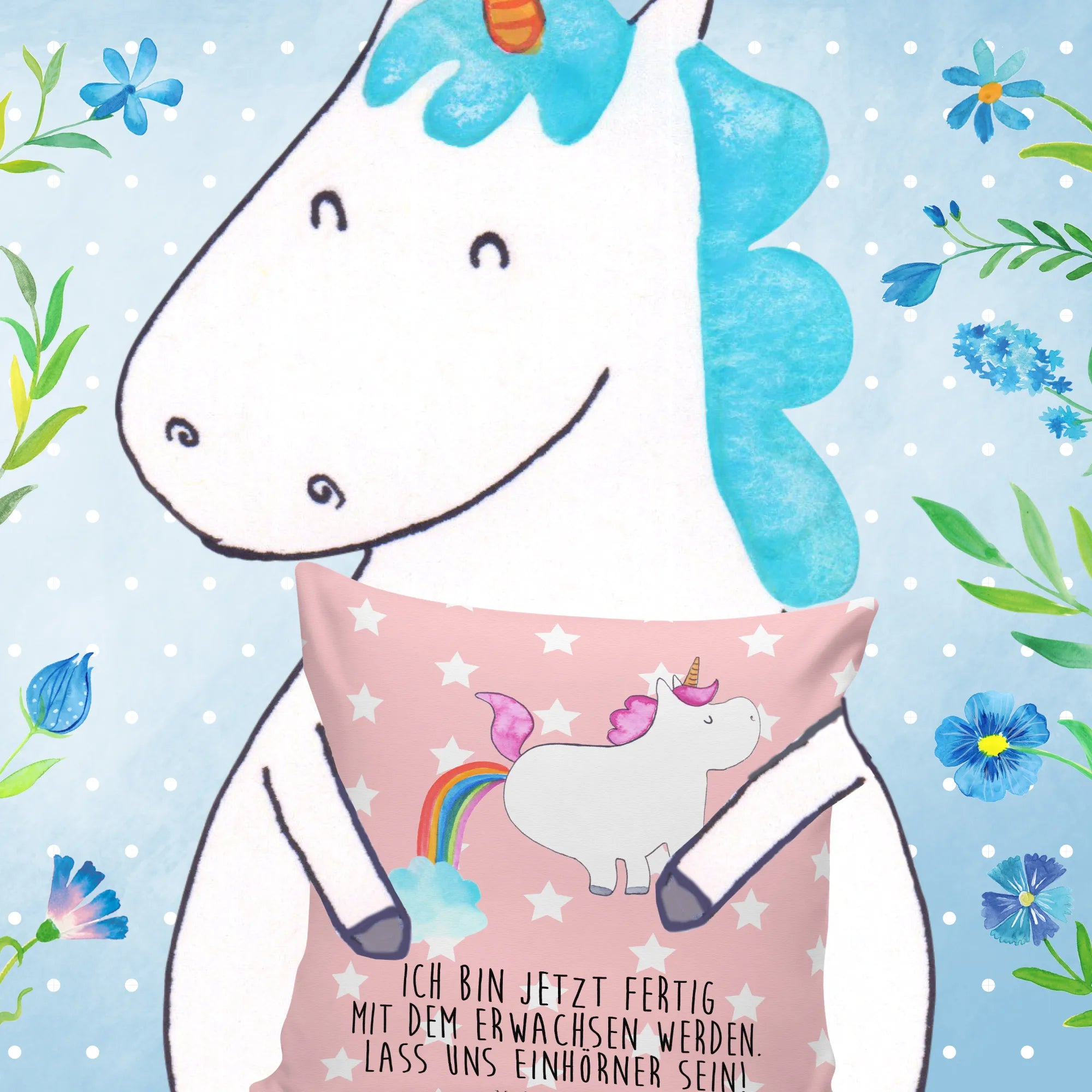 Hergestellt aus superflauschiger Mikrofaser, bietet das Kissen nicht nur eine tolle Optik, sondern auch maximalen Komfort. Ob als Dekokissen auf der Couch, als gemütliches Kopfkissen für das Schlafzimmer oder einfach als lustiges Sofakissen – es fügt sich in jede Einrichtung perfekt ein. Die entzückenden Einhorn-Motive sind von Mrs. Panda liebevoll handgezeichnet und fangen die zauberhafte Welt der Einhörner ein.