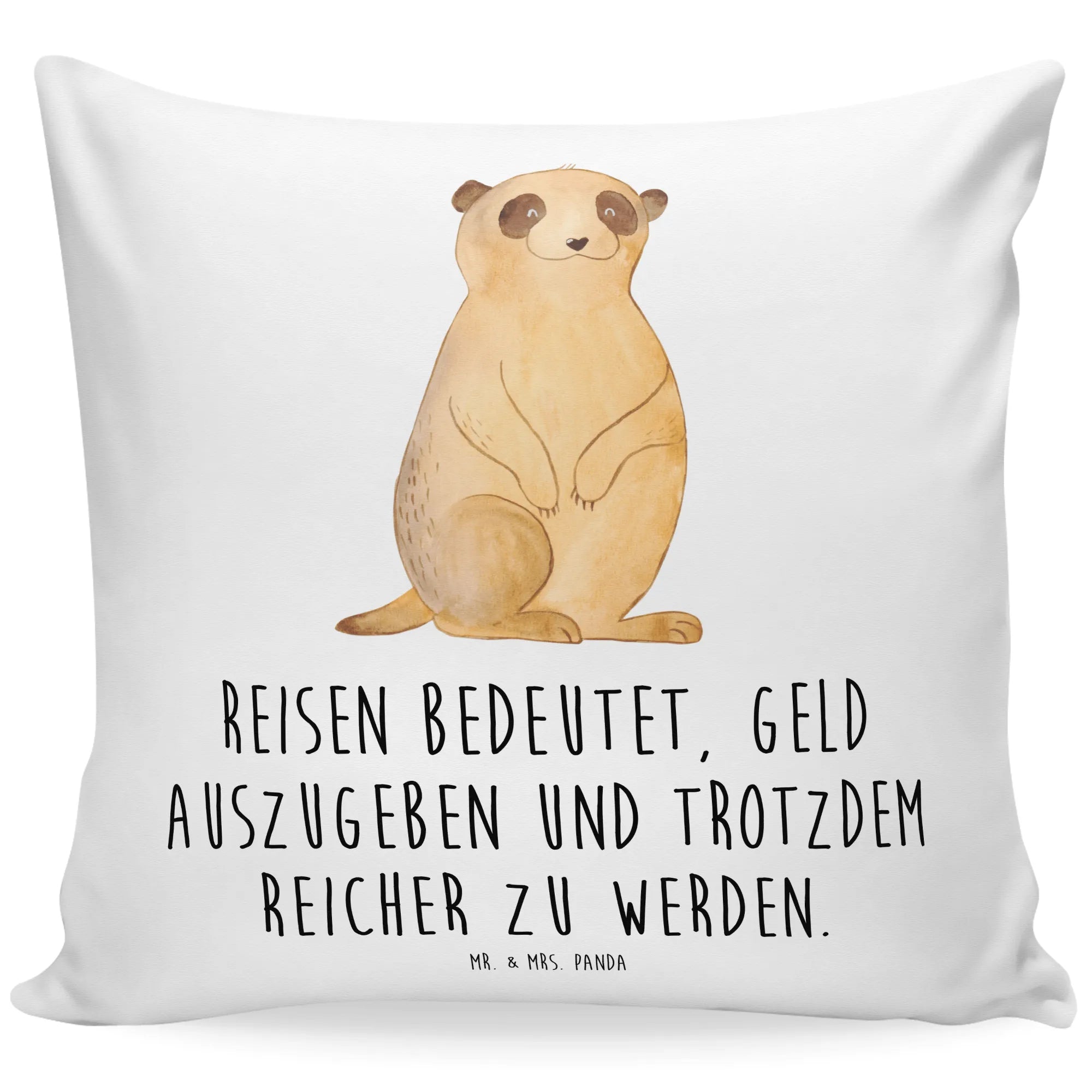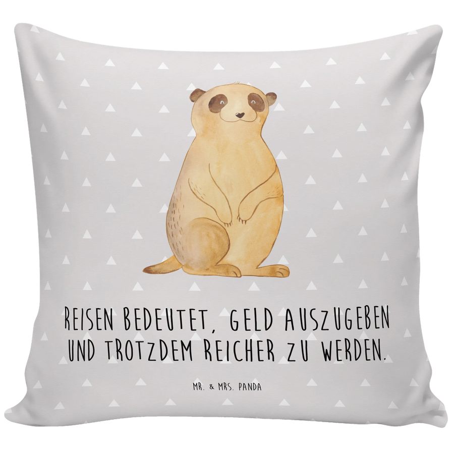 Das Erdmännchen, bekannt für seine Neugier und den unnachahmlichen Charme, ist der Inbegriff von unbeschwerter Lebensfreude. Jedes Mal, wenn du das Kissen siehst, wirst du an schöne Erinnerungen von Reisen und Abenteuern erinnert, und das nicht zuletzt dank des Spruchs: "Reisen bedeutet, Geld auszugeben und trotzdem reicher zu werden."