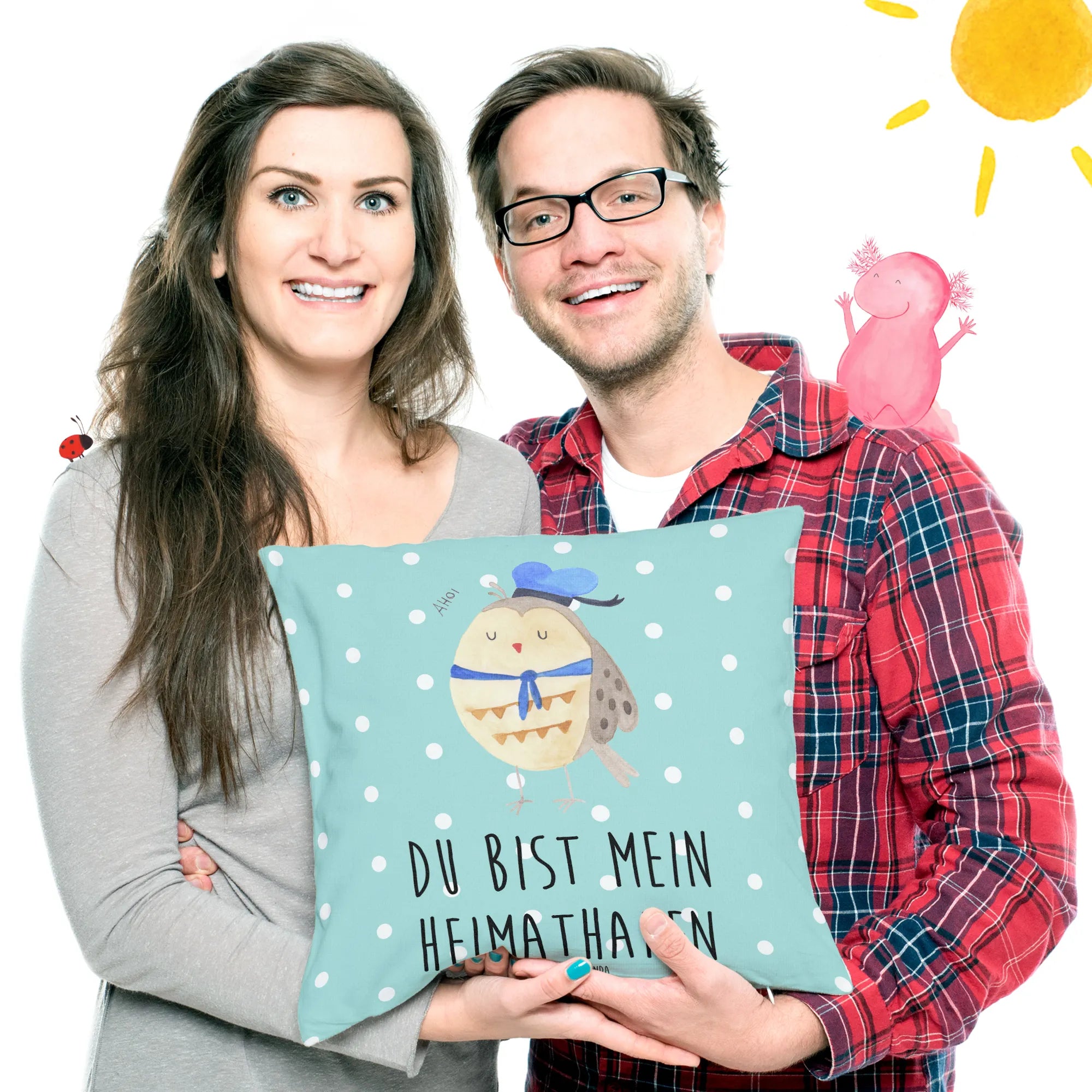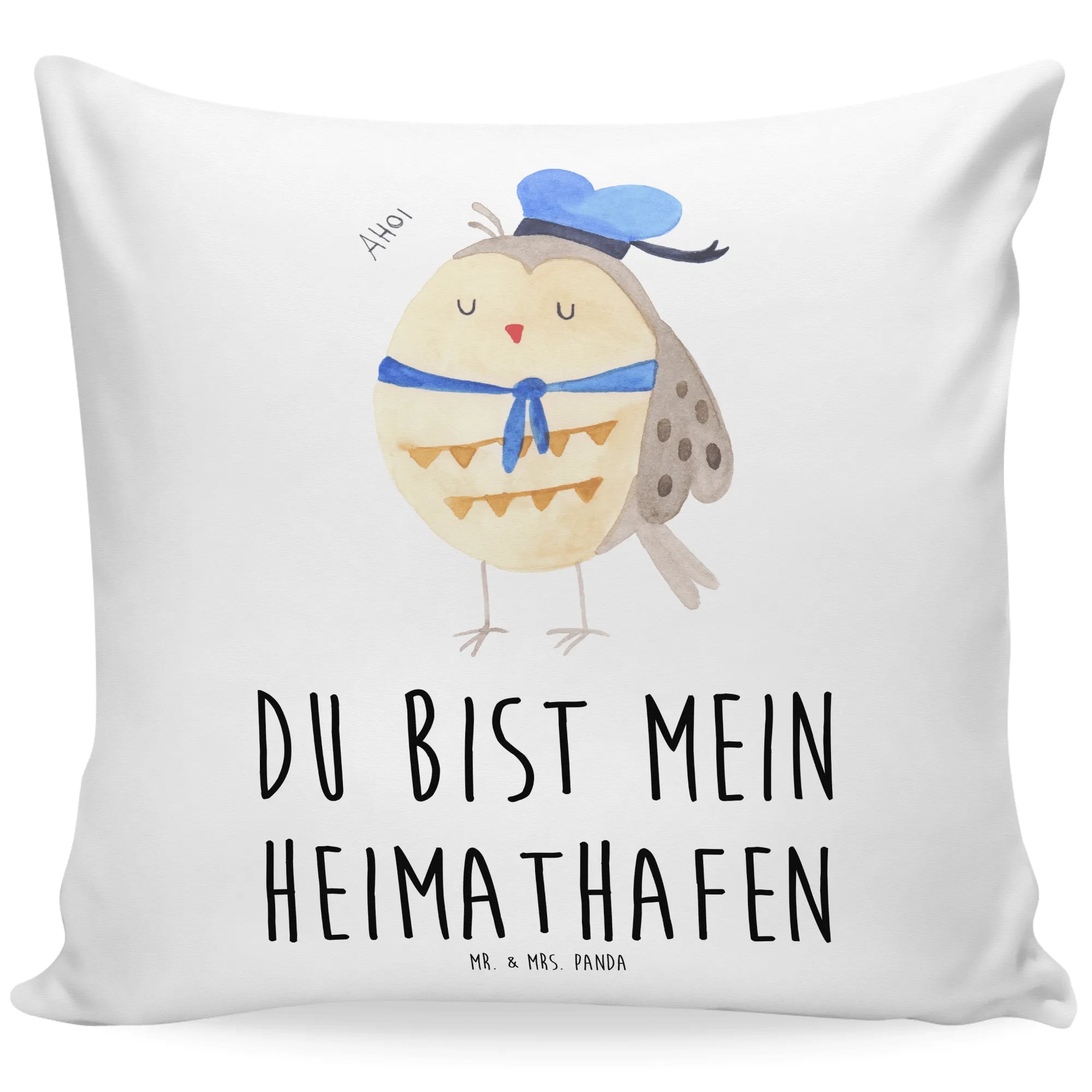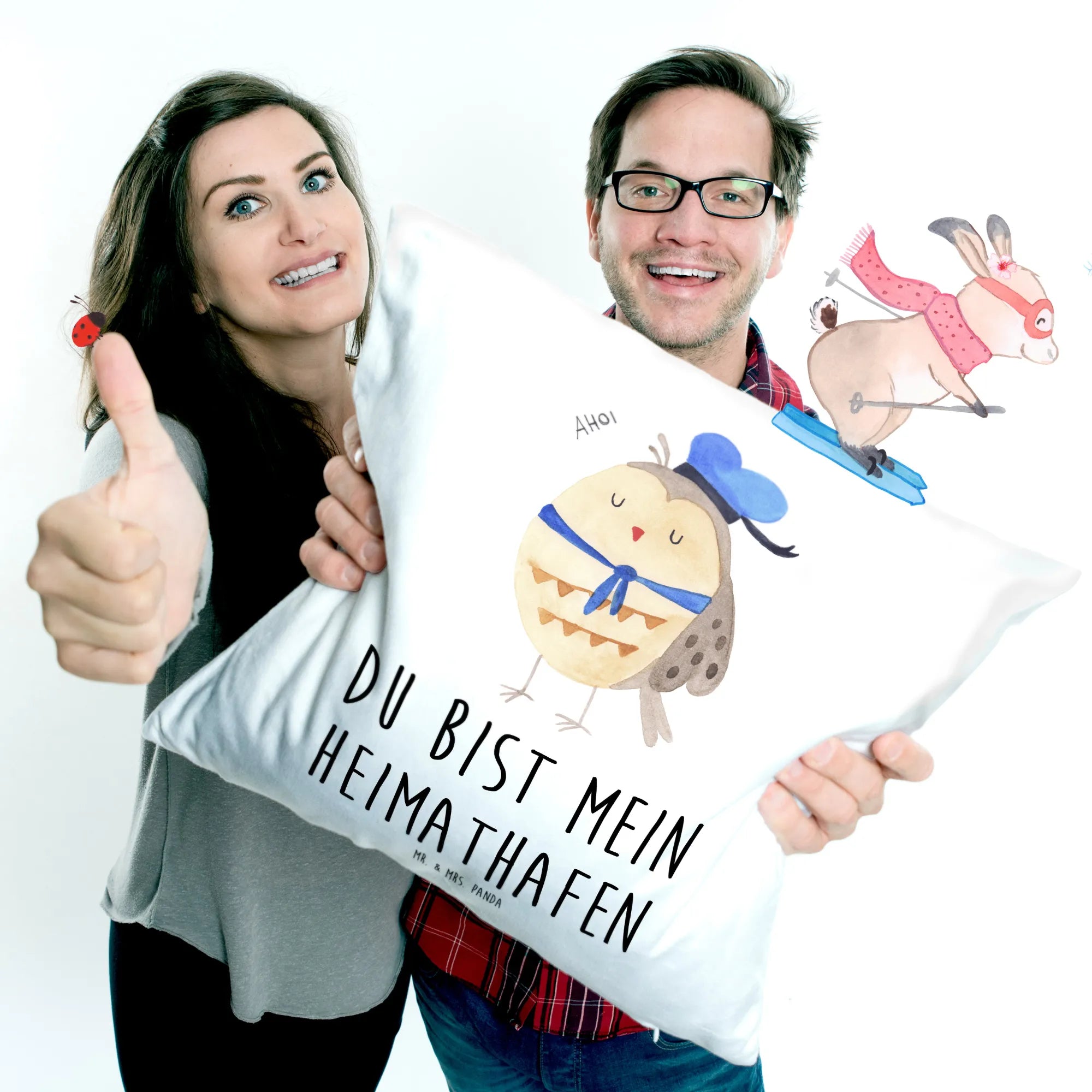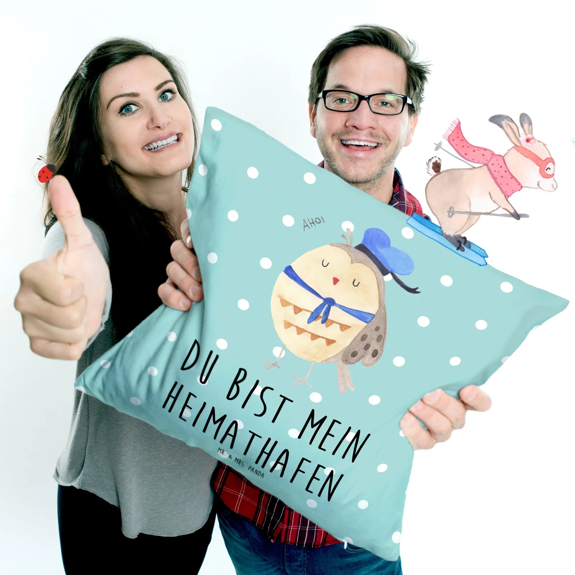 Entdecke das zauberhafte 40x40 Kissen Eule Matrosen aus der Eulen Kollektion von Mr. & Mrs. Panda! Mit ihrem unvergesslichen Design und dem Spruch "Du bist mein Heimathafen" ist dieses Kissen nicht nur ein echter Hingucker, sondern auch der ideale Begleiter für jeden Tag. Die niedliche Eule im Matrosenhut bringt nicht nur Freude, sondern auch eine Portion Heimatgefühl in dein Zuhause.