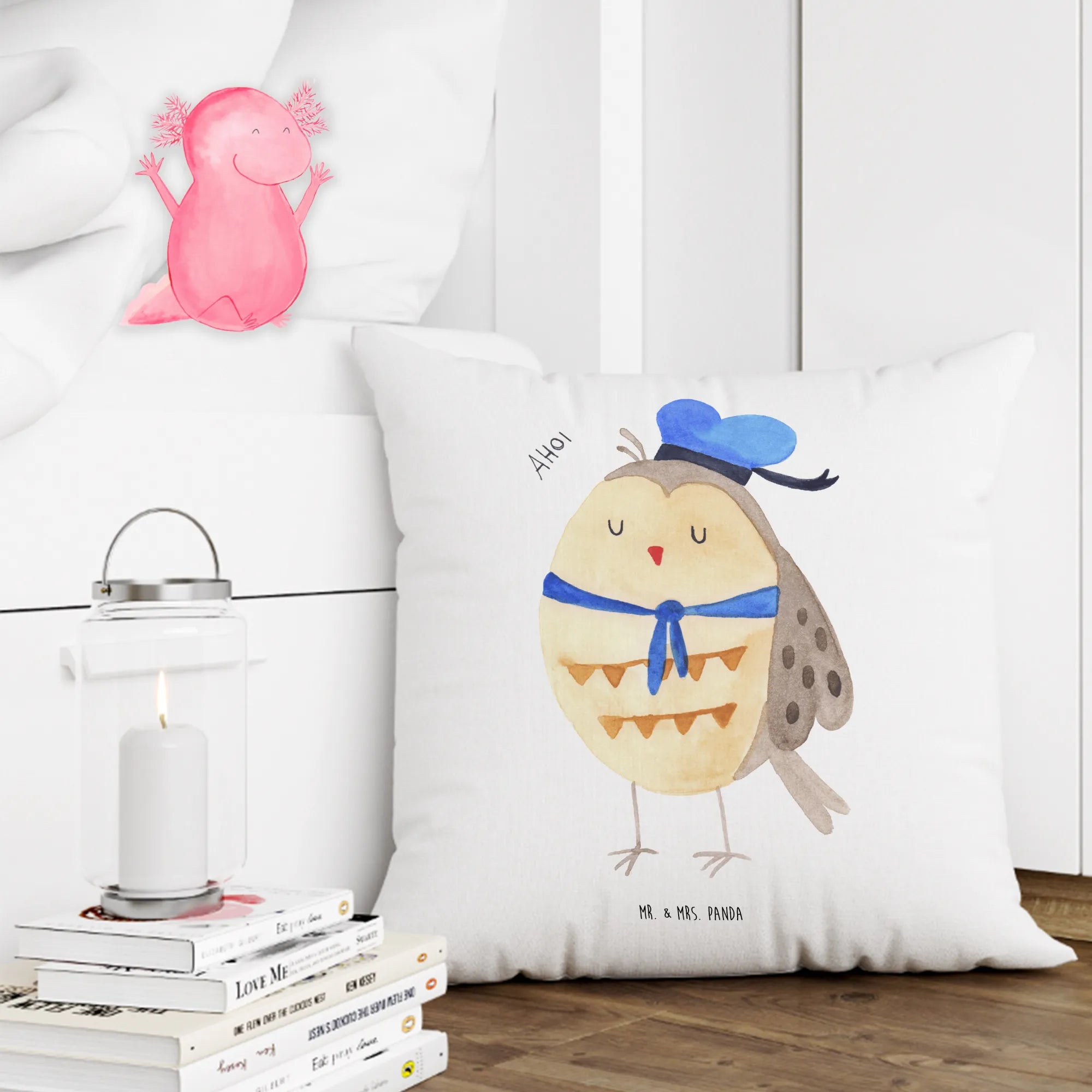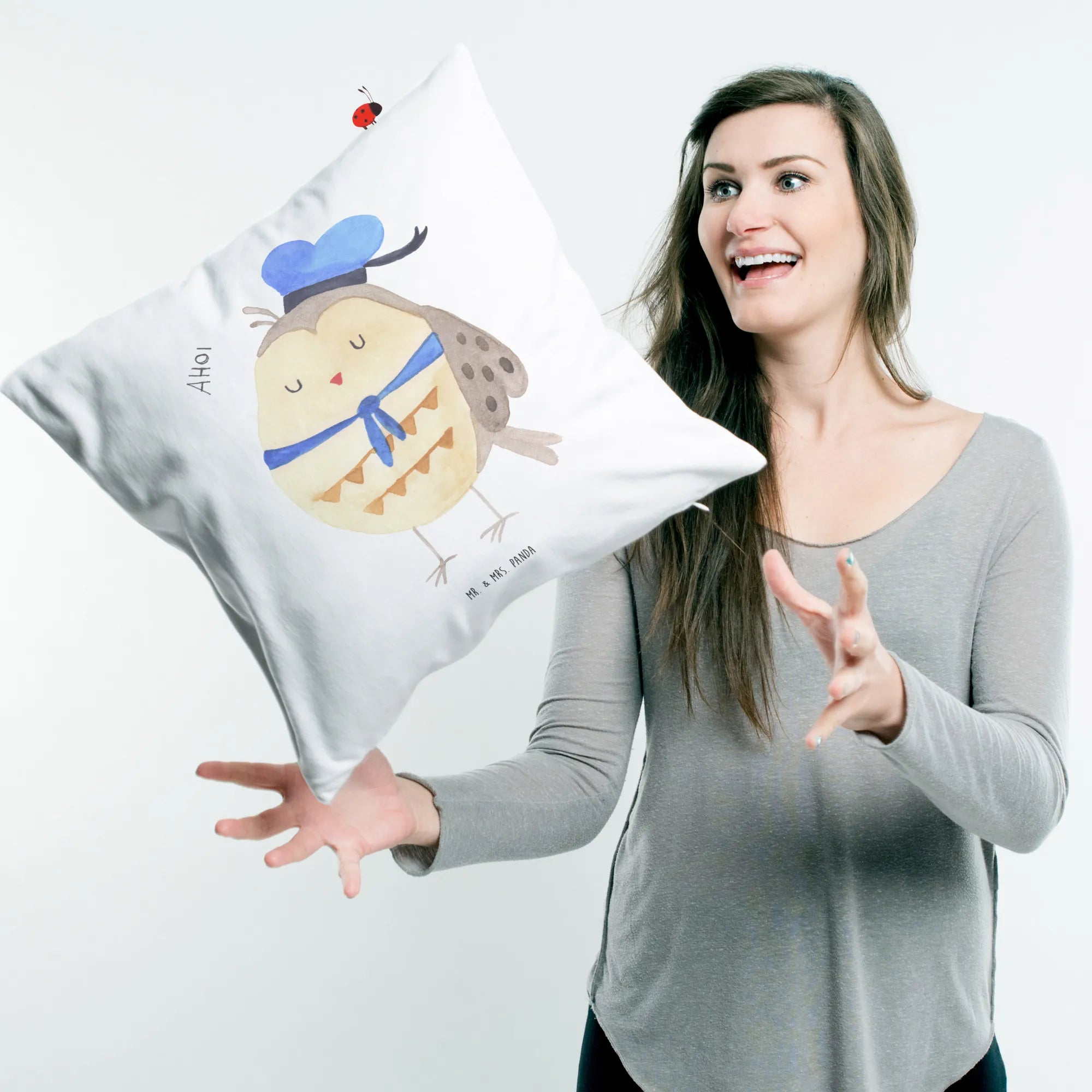 40x40 Kissen Eule Matrose - mit Spruch - Weiß