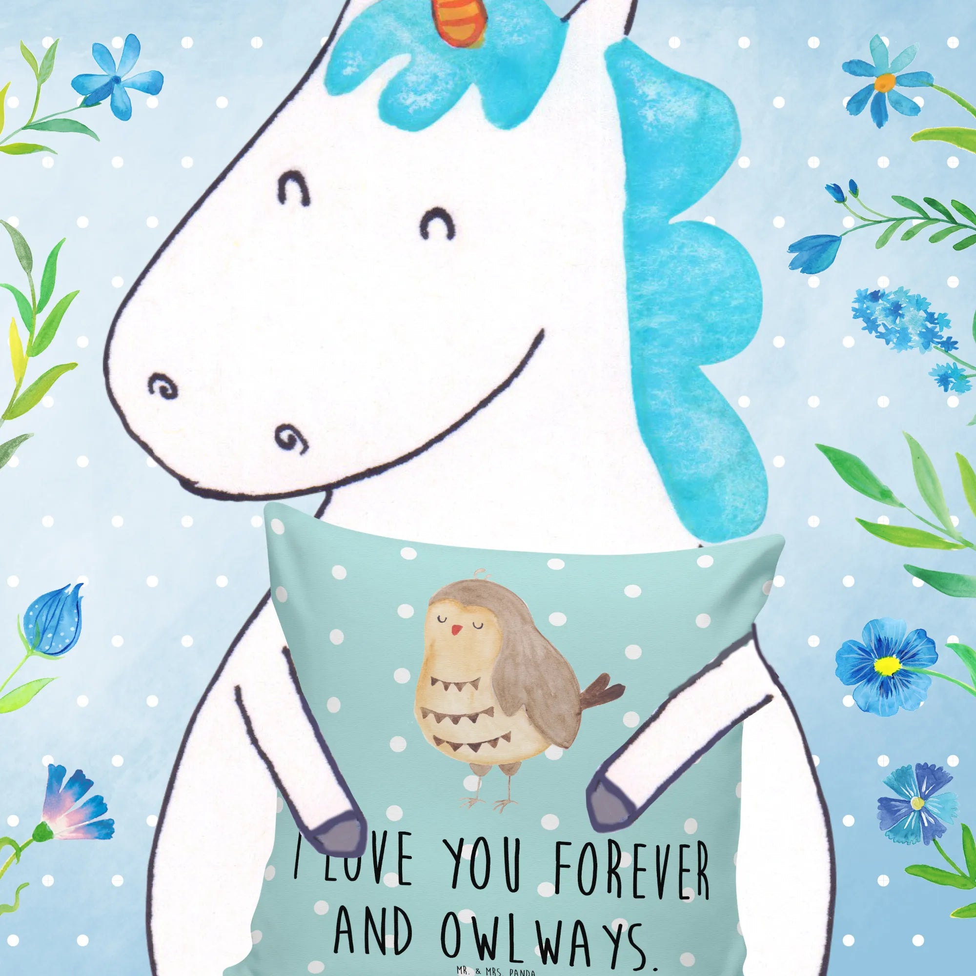 Kuschel Kissen Eule Zufrieden - mit Spruch - Türkis Pastell