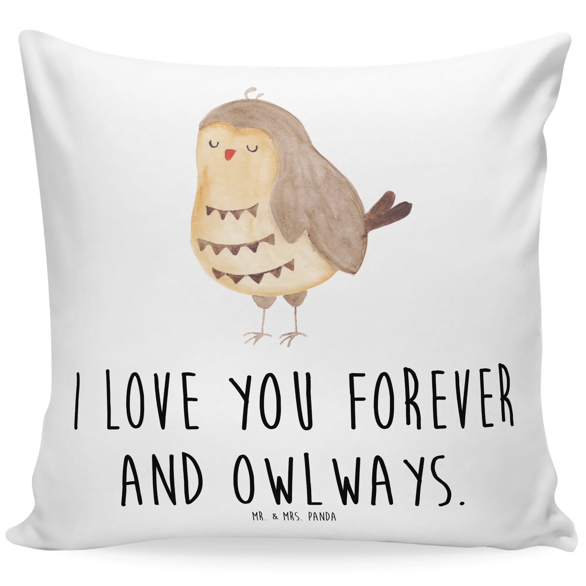 Entdecke das kuschelige 40x40 Kissen "Eule Zufrieden" von Mr. & Mrs. Panda – die perfekte Wahl für alle Eulen-Liebhaber und Dekofans!