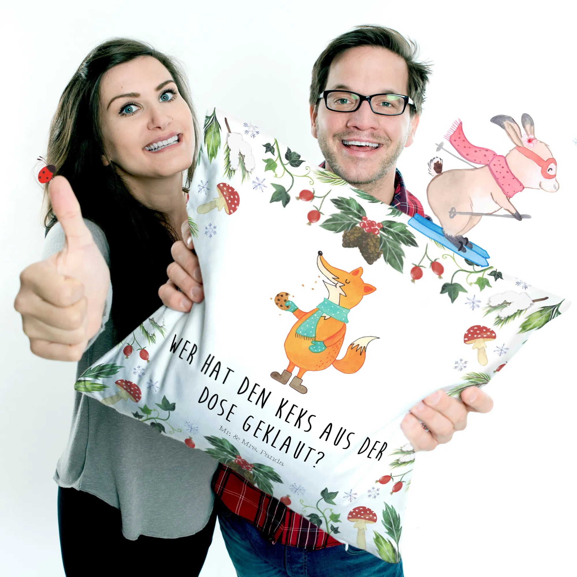 Ideal geeignet ist das Kissen für verschiedene Anlässe: sei es als Weihnachtsgeschenk, zum Advent, Nikolaus oder einfach als liebevolle Aufmerksamkeit für einen besonderen Menschen in deinem Leben. Die Winterkollektion von Mr. & Mrs. Panda bringt dich in Festtagsstimmung und sorgt dafür, dass du gerne Zeit zu Hause verbringst.