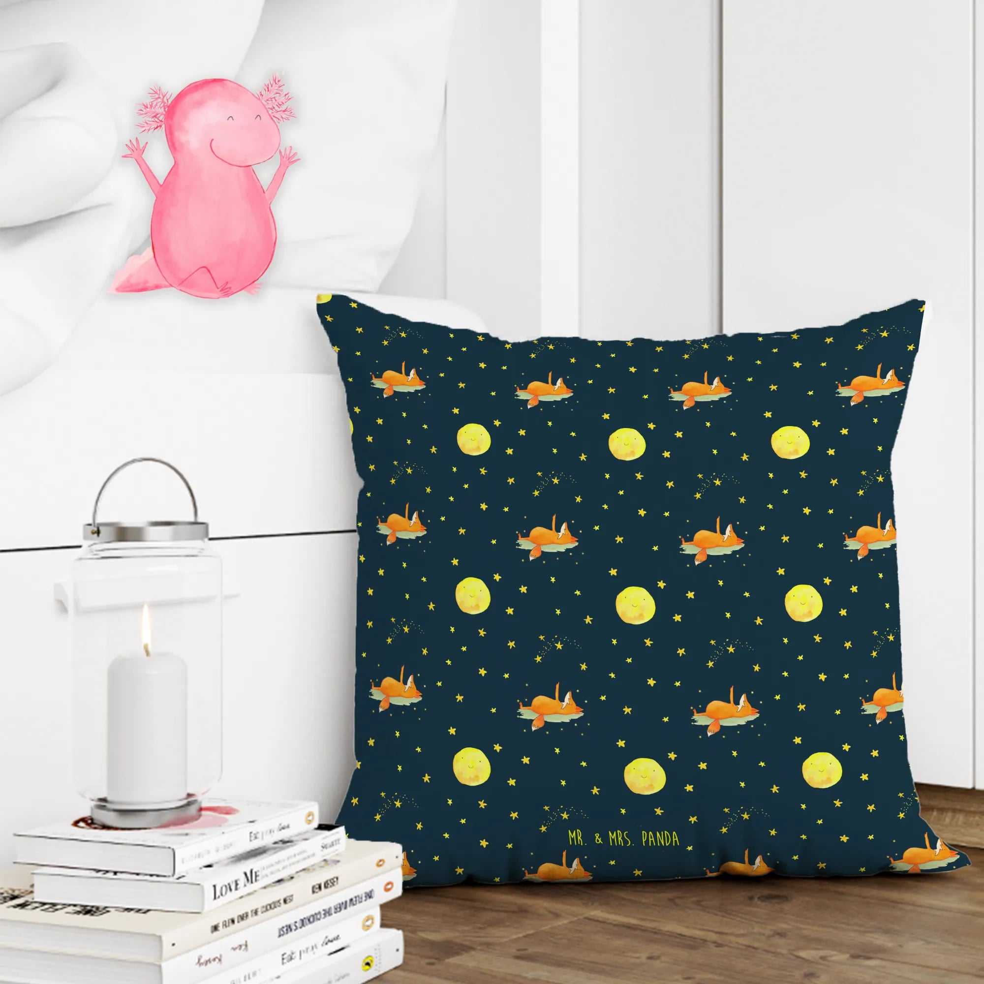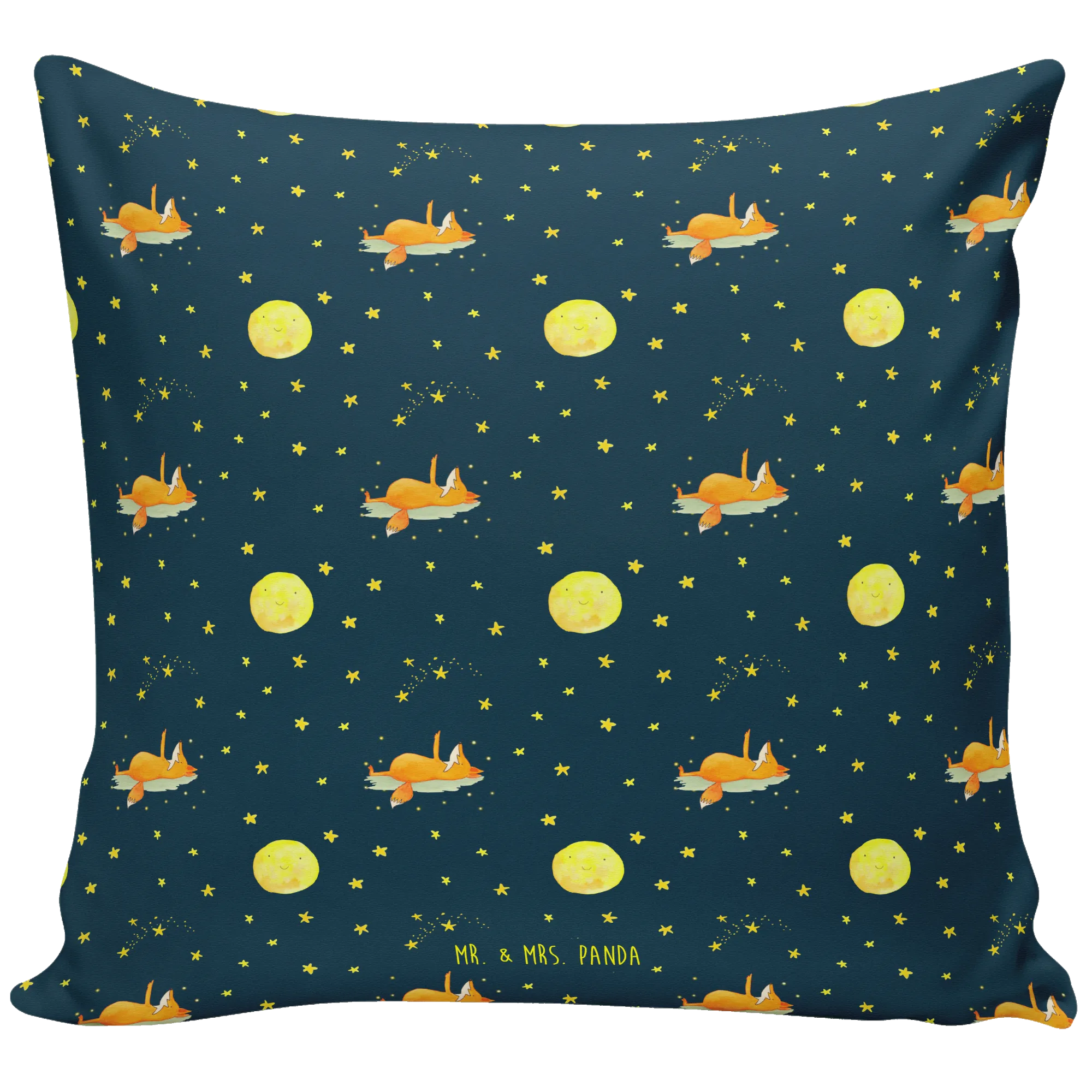 Entdecke das charmante 40x40 Kissen „Fuchs Sterne“ von Mr. & Mrs. Panda – der perfekte Begleiter für alle Sternengucker und Träumer!