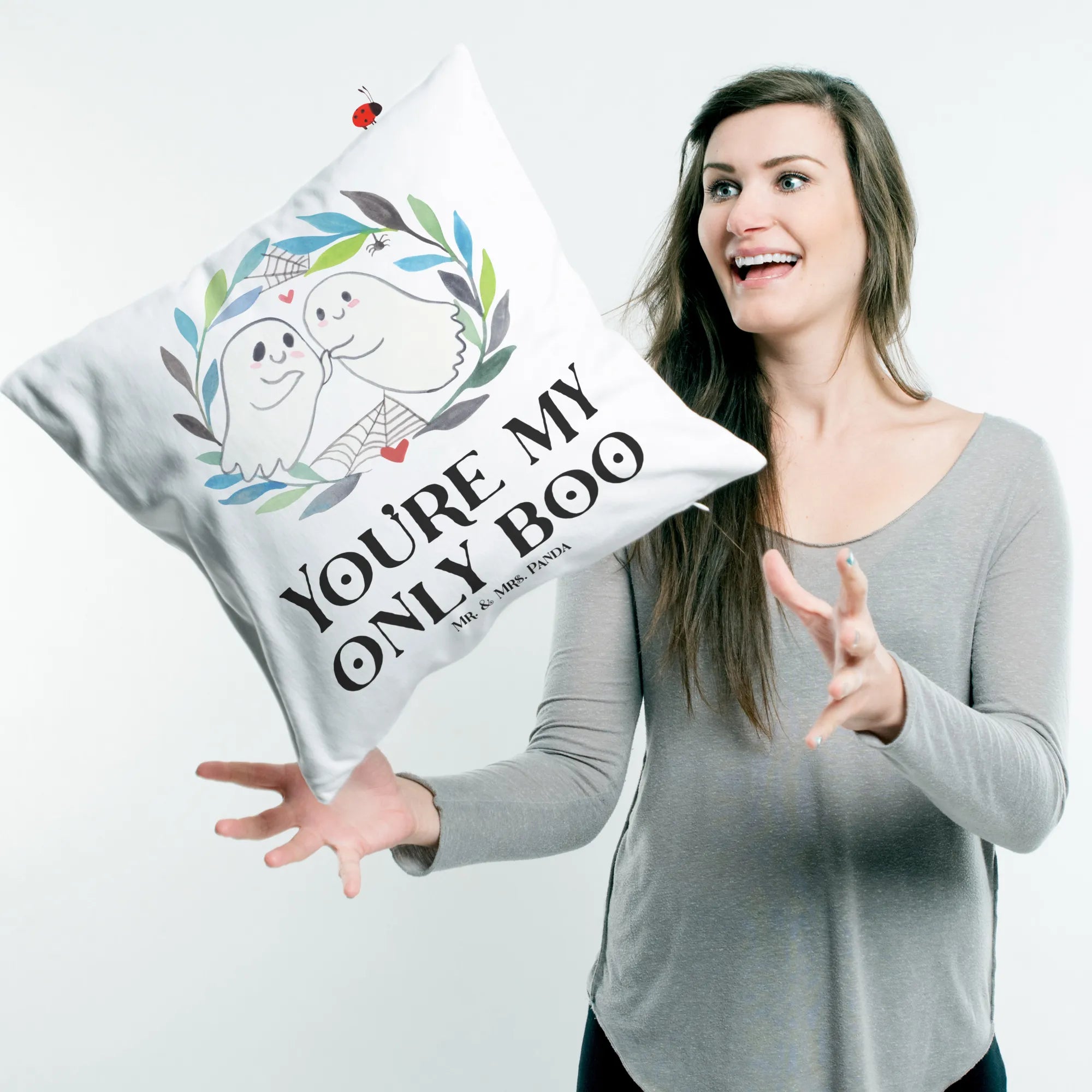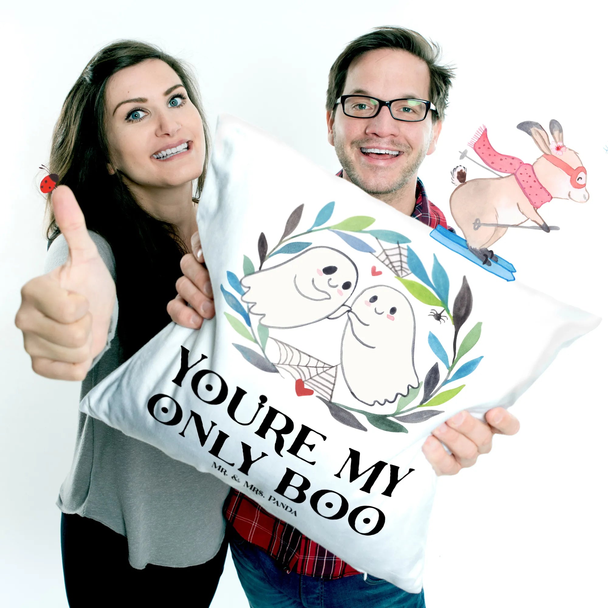 Die Halloween Saison ist die perfekte Zeit, um sich in der gemütlichen Wohnung einzurichten. Ob als schaurig-schöne Dekoration für Halloween-Partys oder als originelles Geschenk für die Liebsten – mit diesem Kissen zauberst du jedem ein Lächeln ins Gesicht. Es ist ideal für Paare, die ihre Liebe feiern, oder für Freunde, die diesen besonderen Anlass gemeinsam genießen möchten. Verpasse nicht die Gelegenheit, deinem Zuhause einen ganz besonderen Touch zu verleihen oder anderen eine Freude zu machen. Das Kissen "Gespenster Liebe" ist ein echter Blickfang und ein absolutes Must-Have der Halloween-Kollektion von Mr. & Mrs. Panda! 🌟