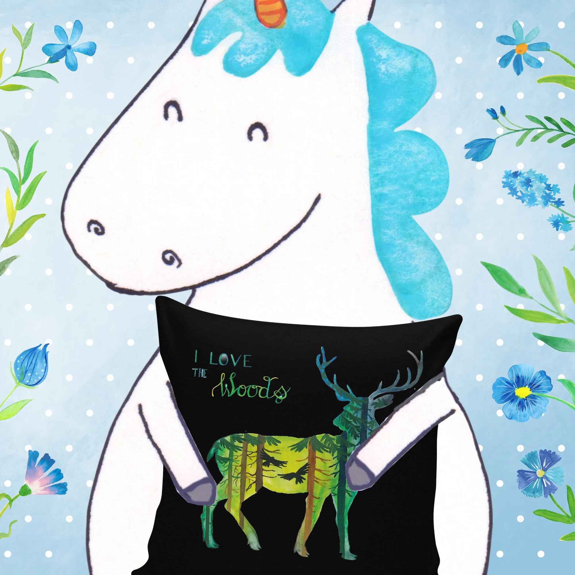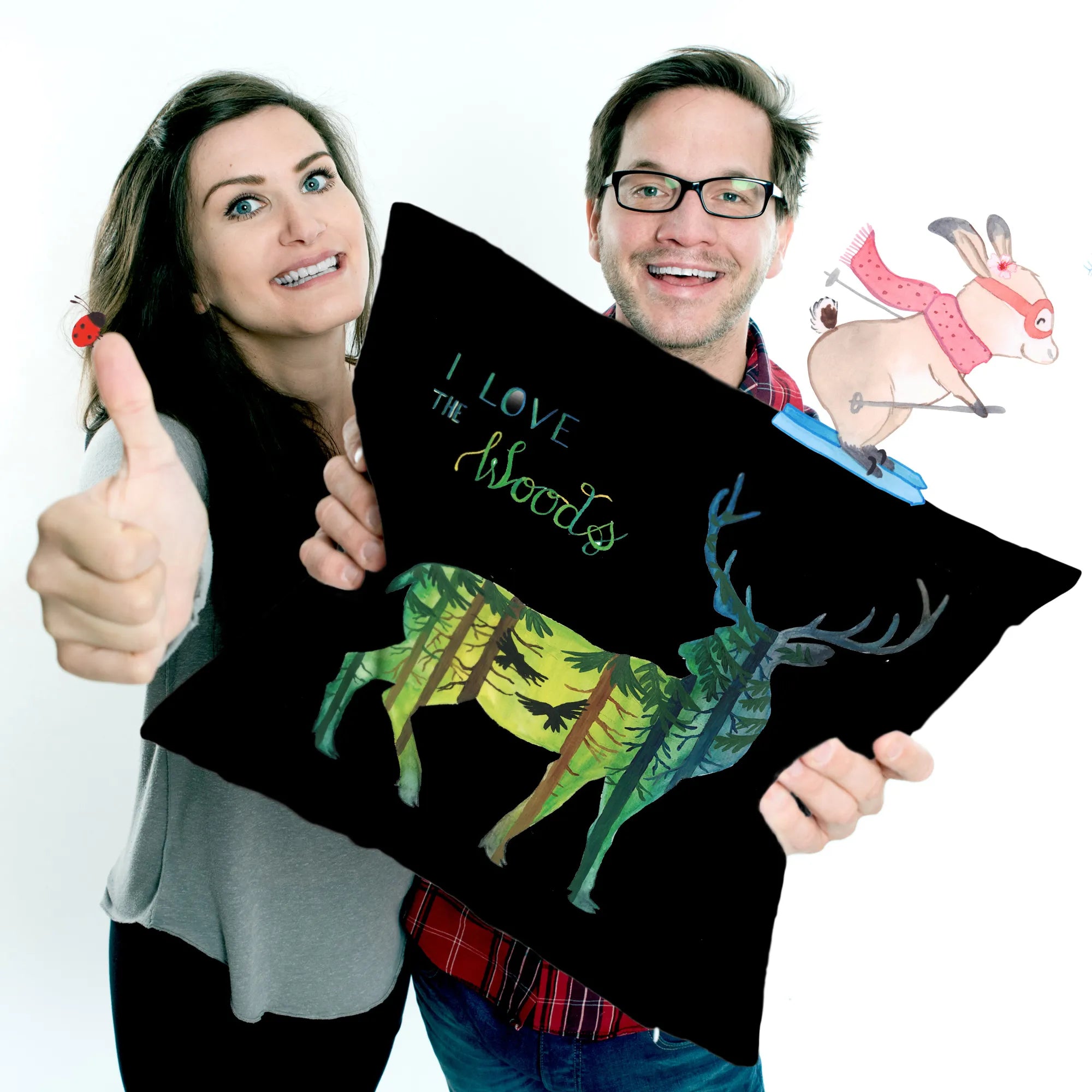 Das 40x40 Kissen "Hirsch I love the woods" von Mr. & Mrs. Panda ist nicht nur ein wunderschöner Blickfang für Deine Wohnung, sondern auch das perfekte Geschenk für Naturliebhaber und Abenteuerlustige. Mit seinem liebevollen Motiv aus der Collection Wild & Free bringt es den Zauber des Waldes direkt zu Dir nach Hause. Es zeigt einen majestätischen Hirsch, der von einer traumhaften Waldszene umgeben ist. Jedes Detail wurde von Hand gezeichnet und verkörpert die Schönheit der Natur. Dieses beeindruckende Dekokissen ist mit dem Text "I LOVE THE woods" verziert, der gleichsam eine positive Botschaft über die Liebe zur Natur vermittelt.