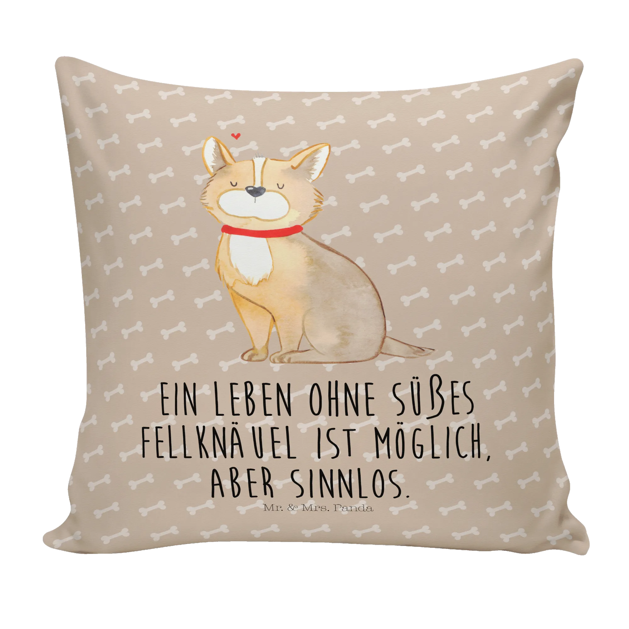 Auf der Suche nach dem perfekten Hundegeschenk? Unser 40x40 Kissen »Hundeglück« aus der Hunde Kollektion von Mr. & Mrs. Panda ist genau das Richtige für dich! Der niedliche, bunte Hund mit rotem Halsband und der frechen Aufschrift „Ein Leben ohne süßes Fellknäuel ist möglich, aber sinnlos.“ zaubert jedem Hundeliebhaber ein Lächeln ins Gesicht. 😊