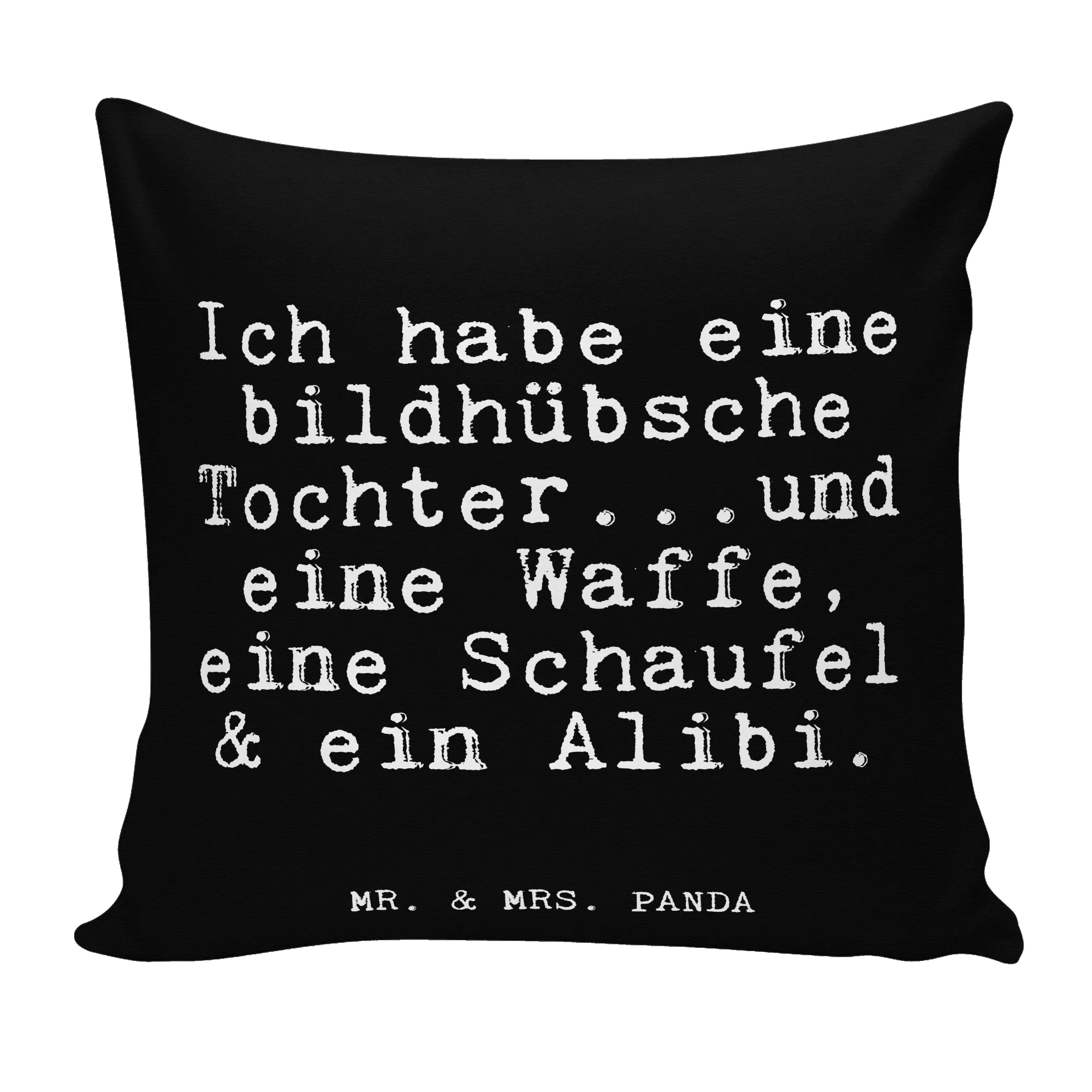 Das 40x40 Kissen mit dem Motto 'Ich habe eine bildhübsche Tochter...und eine Waffe, eine Schaufel & ein Alibi.' von Mr. & Mrs. Panda ist das perfekte Geschenk für alle Papas, die stolz auf ihre Töchter sind! Ob zum Vatertag, Geburtstag oder einfach nur als Überraschung zwischendurch, dieses Kissen bringt nicht nur ein Lächeln ins Gesicht, sondern wird auch zum echten Hingucker in jedem Zuhause.