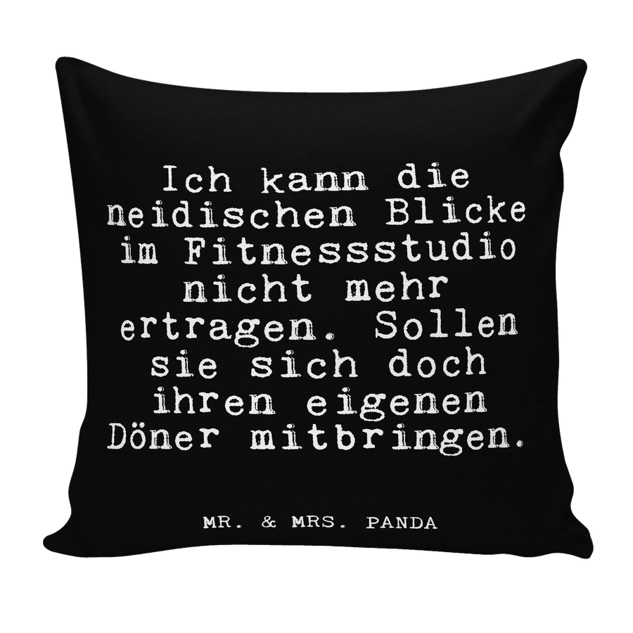 Das perfekte Kissen für Fitness-Liebhaber! Die Kissenhülle von Mr. & Mrs. Panda im Format 40x40 cm ist nicht nur ein dekorativer Hingucker, sondern auch ein Ausdruck von Humor und Lebensfreude. Mit dem witzigen Slogan "Ich kann die neidischen Blicke im Fitnessstudio nicht mehr ertragen. Sollen sie sich doch ihren eigenen Döner mitbringen." wird jeder, der es sieht, zum Schmunzeln gebracht. Egal, ob du es auf deinem Sofa, im Schlafzimmer oder im Fitnessstudio verwendest, es sorgt für gute Laune und ist ein tolles Gesprächsthema!