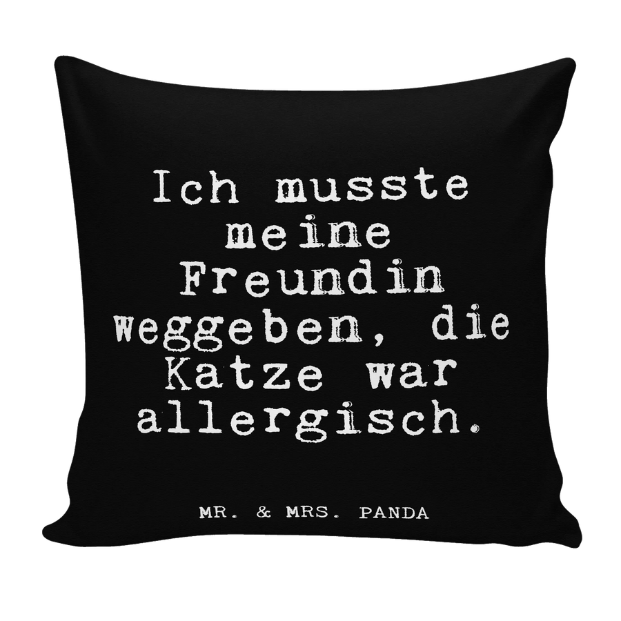 Das perfekte Geschenk für Katzenliebhaber! Die Kissenhülle von Mr. & Mrs. Panda mit dem witzigen Spruch "Ich musste meine Freundin weggeben, die Katze war allergisch" ist nicht nur ein echter Hingucker, sondern auch ein Zeichen für humorvolle Tierliebhaber. Dieses Kissen 40x40 ist aus superflauschiger Mikrofaser gefertigt und bietet eine wunderbare, weiche Füllung, die zum Kuscheln einlädt.
