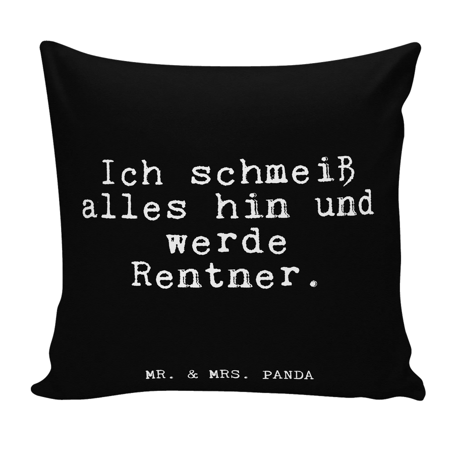 Also schenk deinen Liebsten oder dir selbst ein Stück Gemütlichkeit und Lebensfreude mit unserem wundervollen Kissen. Ob als neues Dekokissen auf der Couch oder als lustiges Motivkissen für den Sessel, mit dem Slogan 'Ich schmeiß alles hin und werde Rentner.' in der Spruchreif Kollektion von Mr. & Mrs. Panda sorgst du garantiert für gute Laune und entspannte Momente.