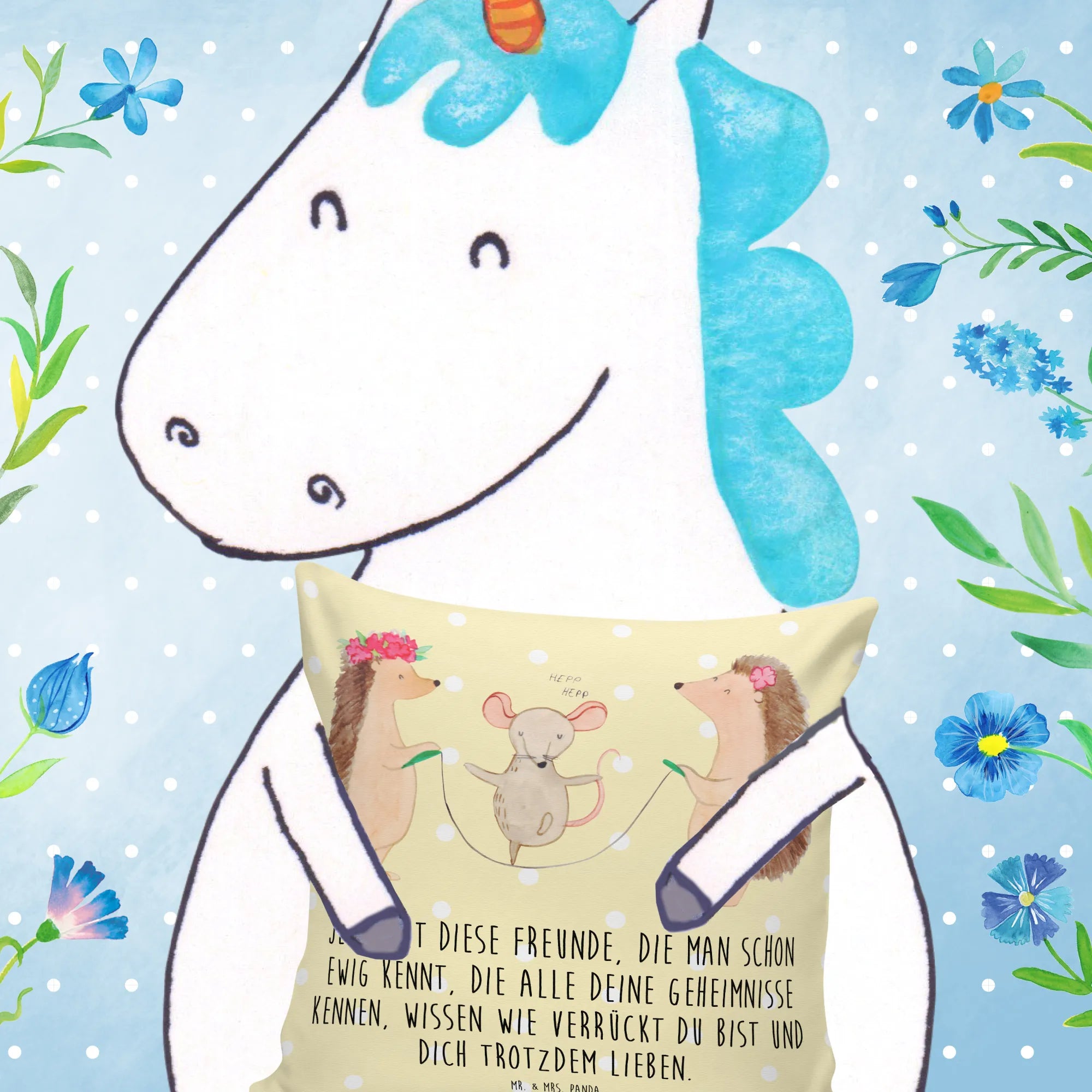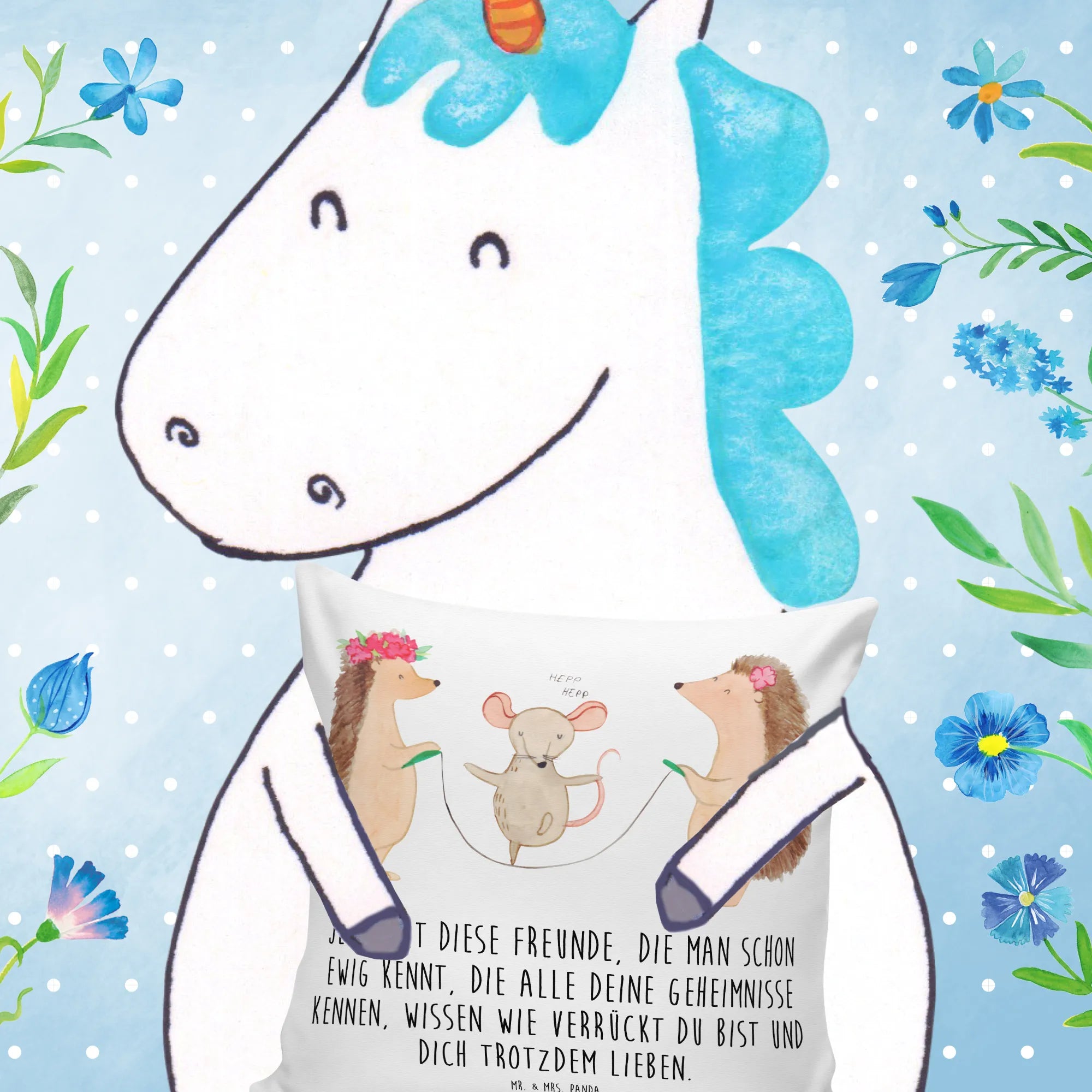 Dieses wunderschön kuschelige Kissen ist nicht nur ein Blickfang, sondern auch der perfekte Begleiter für entspannte Stunden auf der Couch oder im Kinderzimmer. Die beiden putzigen Igel und die fröhliche Maus, die Seilspringen, zaubern jedem ein Lächeln ins Gesicht und verbreiten positive Stimmung überall dort, wo sie platziert werden.