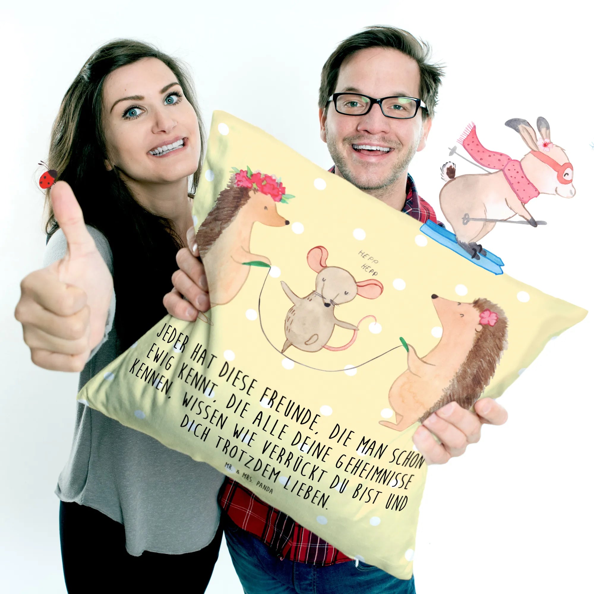Verwandle dein Zuhause in einen Ort voller Glücksmomente mit diesem besonderen Dekokissen von Mr. & Mrs. Panda.