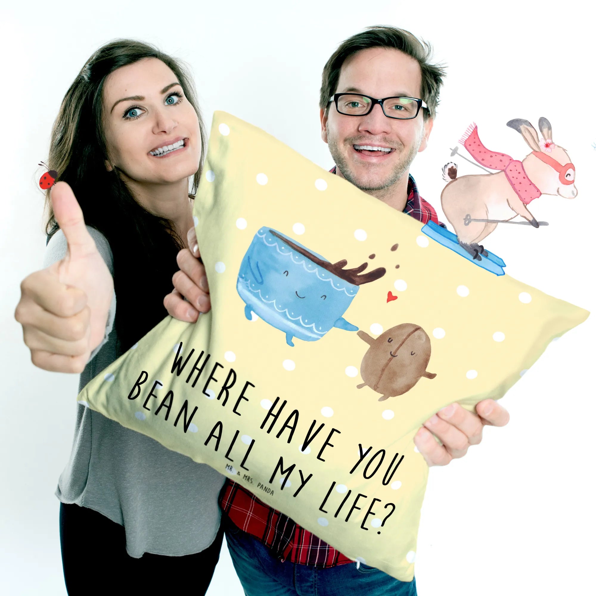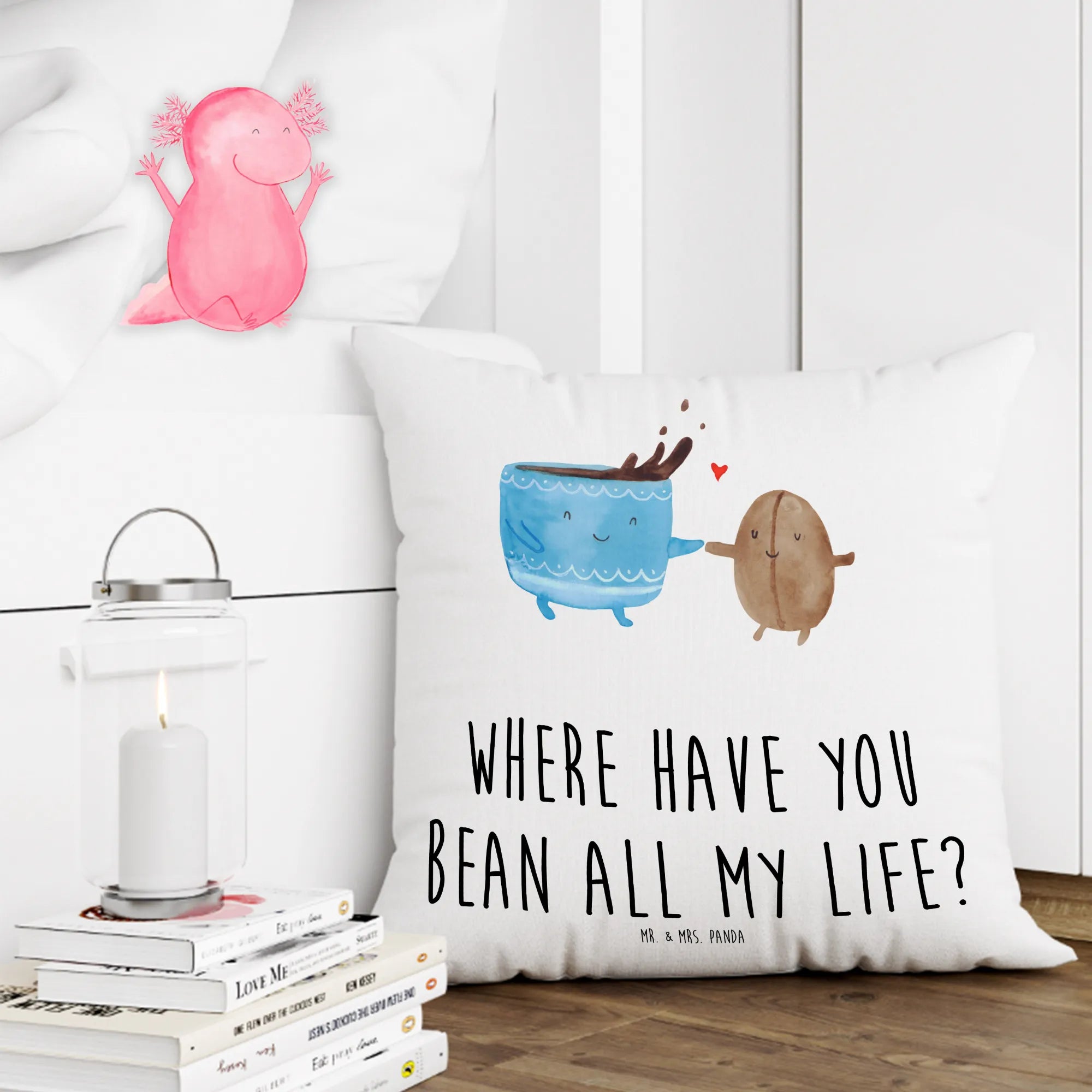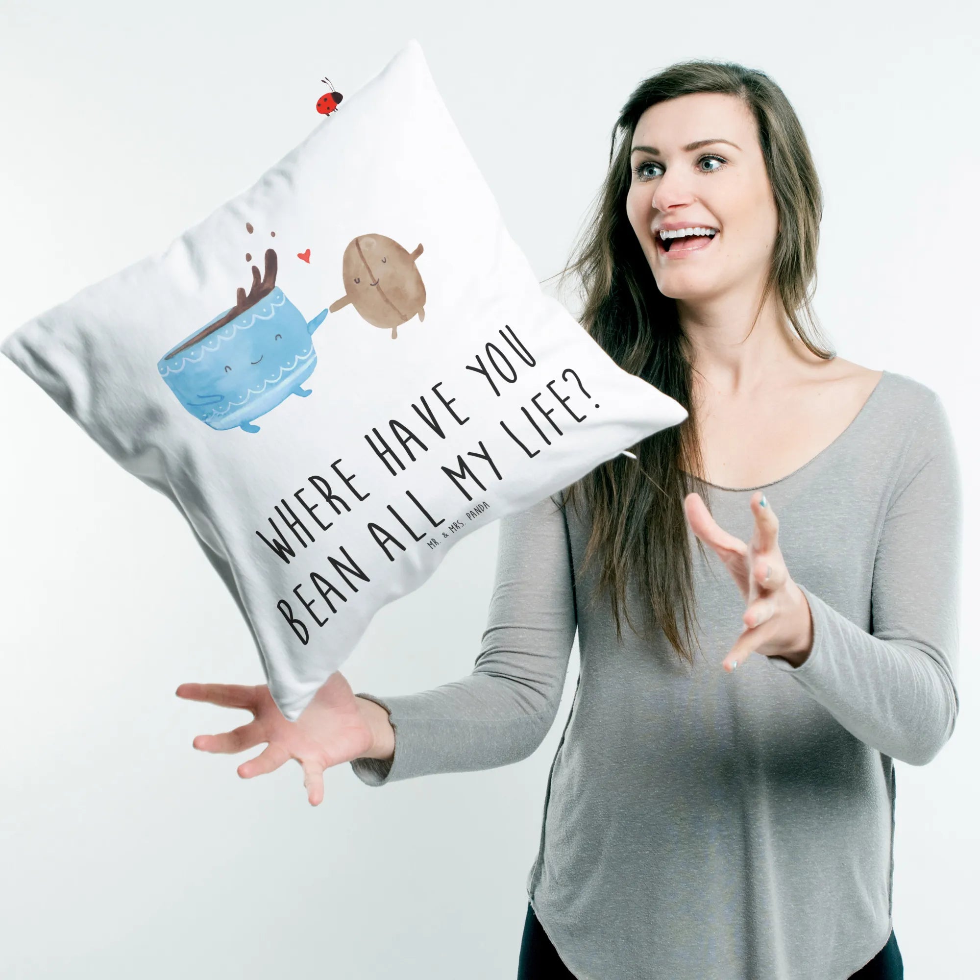 Entdecke das perfekte Kissen für alle Kaffeeliebhaber! Unsere 40x40 Kissenhülle von Mr. & Mrs. Panda ist nicht nur ein wunderbares Deko-Element für dein Sofa oder Bett, sondern auch ein kuscheliger Begleiter, der dir täglich Freude bereitet. Die Kissenhülle zeigt ein bezauberndes Motiv der glücklichen Kaffeetasse, die stolz eine kleine Kaffeebohne in der Hand hält. Die strahlenden Augen der Kaffeetasse bringen sofort gute Laune in jeden Raum. Dieser lustige Spruch "Where have you bean all my life?" sorgt für ein Lächeln und versüßt jeden Tag aufs Neue.