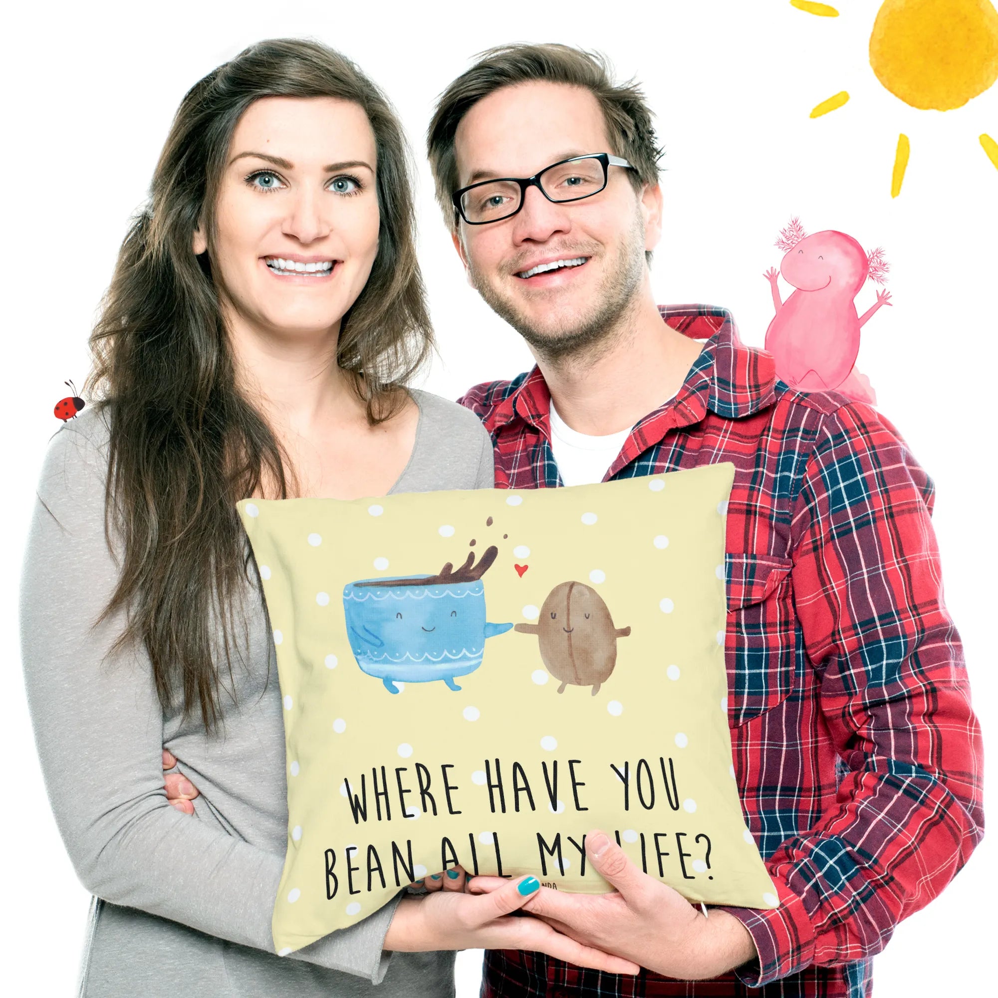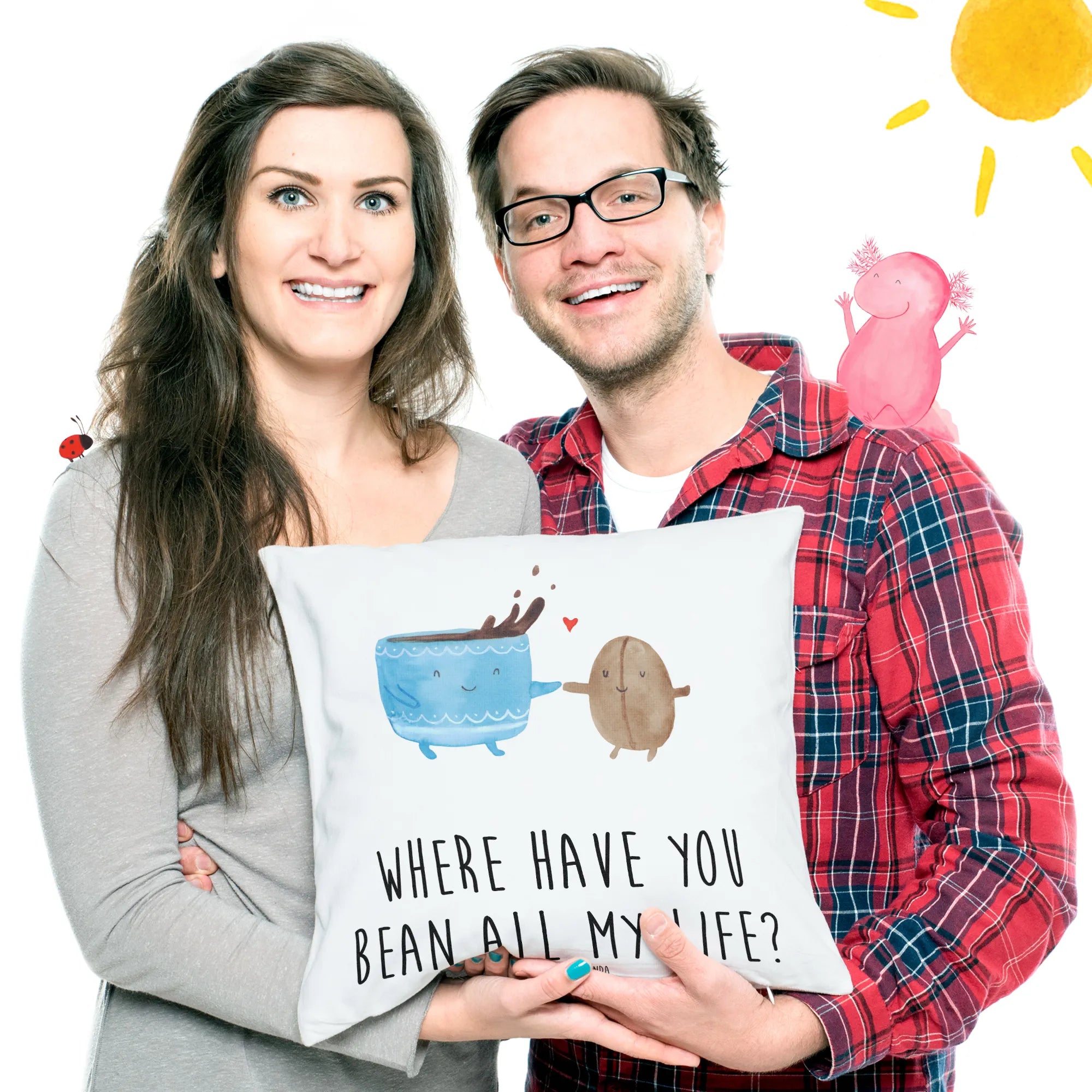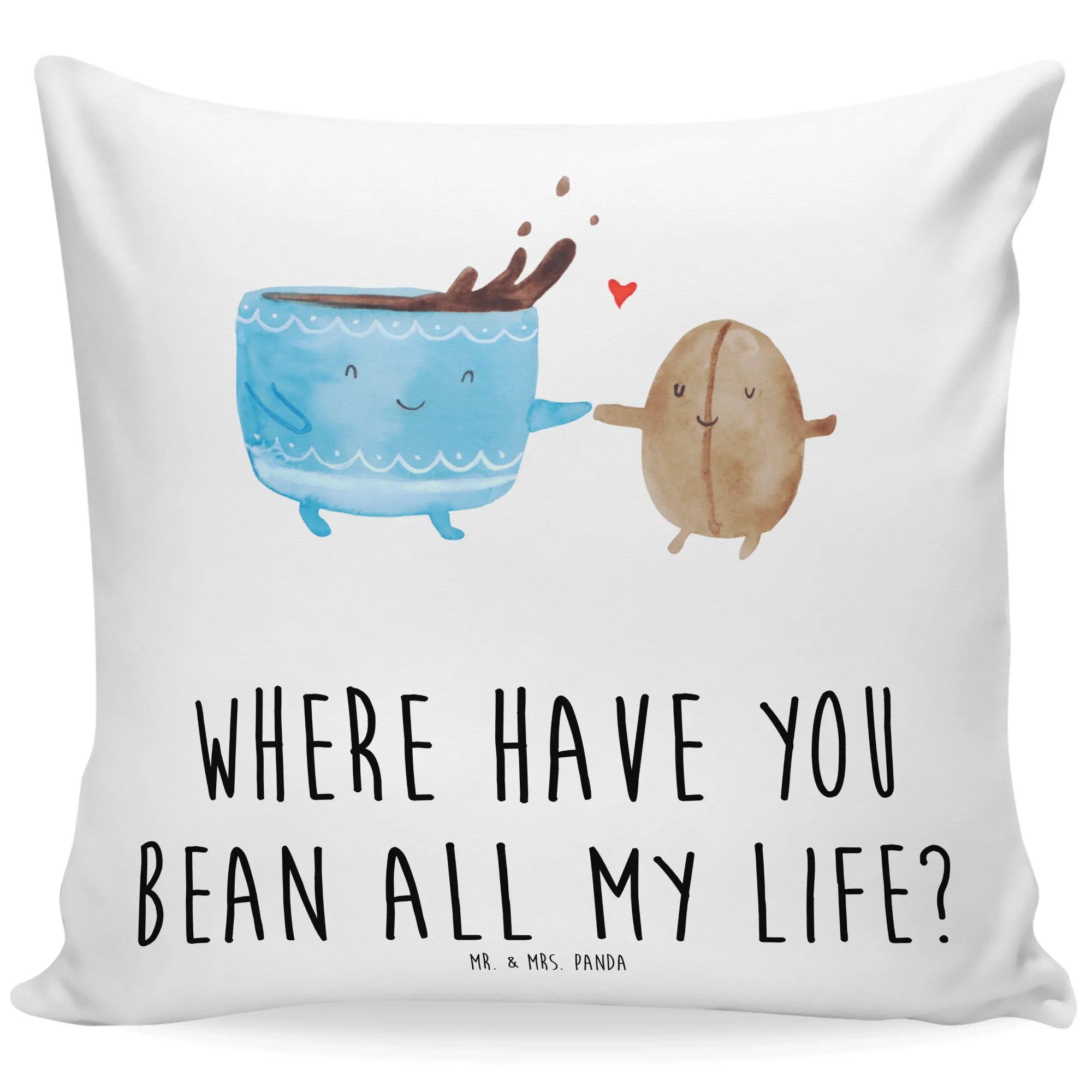 Entdecke das perfekte Kissen für alle Kaffeeliebhaber! Unsere 40x40 Kissenhülle von Mr. & Mrs. Panda ist nicht nur ein wunderbares Deko-Element für dein Sofa oder Bett, sondern auch ein kuscheliger Begleiter, der dir täglich Freude bereitet. Die Kissenhülle zeigt ein bezauberndes Motiv der glücklichen Kaffeetasse, die stolz eine kleine Kaffeebohne in der Hand hält. Die strahlenden Augen der Kaffeetasse bringen sofort gute Laune in jeden Raum. Dieser lustige Spruch "Where have you bean all my life?" sorgt für ein Lächeln und versüßt jeden Tag aufs Neue.