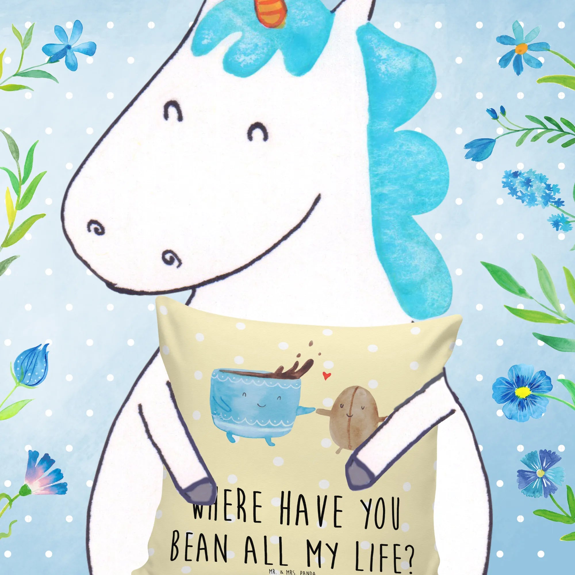 Das Kissen ist nicht personalisierbar, es trägt jedoch den Slogan 'Where have you bean all my life?', der ein Lächeln zaubert und es somit perfekt als Geschenk für Freunde, Familie oder auch für dich selbst macht! Die Small World Kollektion von Mr. & Mrs. Panda ist bunt und vielfältig und enthält neben den Kaffeemotiven auch viele andere fröhliche Tiermotive, die in jedem Raum ein wenig magische Freude verbreiten.