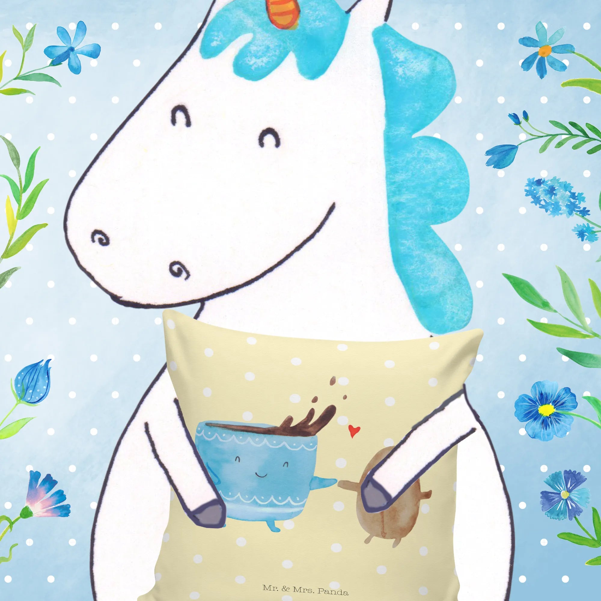 Die Kissenhülle ist perfekt, um deinem Wohnraum eine persönliche Note zu verleihen. Egal, ob im Wohnzimmer auf der Couch oder im Schlafzimmer auf dem Bett, sie zieht alle Blicke auf sich und sorgt für ein behagliches Ambiente. Sie ist auch ein tolles Geschenk für Freunde und Familie, die Kaffee genauso lieben wie du. Denn wer kann bei einem solch niedlichen Motive und einem witzigen Spruch schon widerstehen?