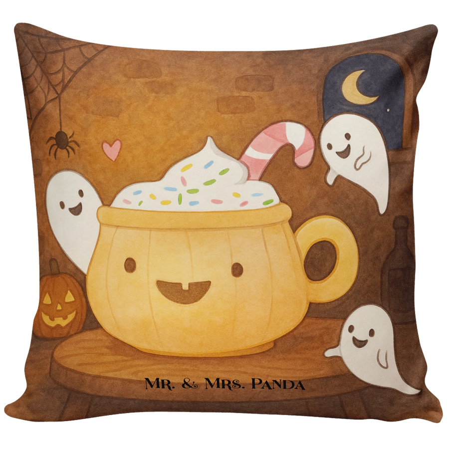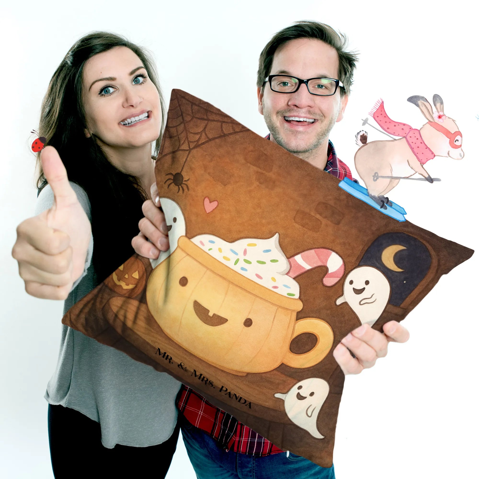 Unser 40x40 Kissen "Kaffee Gespenst" aus der Halloween Kollektion von Mr. & Mrs. Panda bringt herbstlichen Charme und niedliche Schabernack-Laune in dein Wohnzimmer. Zwei kleine Gespenster umschwärmen eine Kürbis-Kaffeetasse mit Sahnehäubchen – ein Motiv, das sofort gute Laune macht und perfekt als Halloween Deko funktioniert. 🎃👻