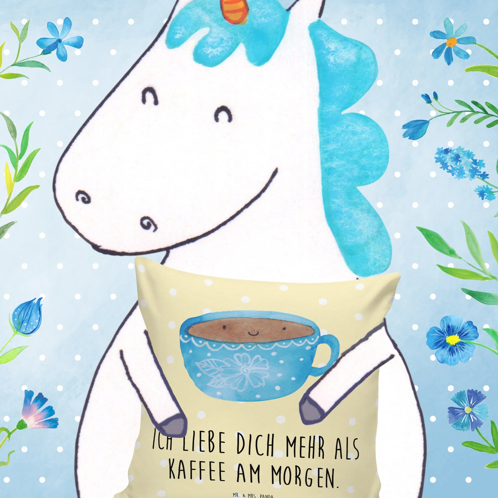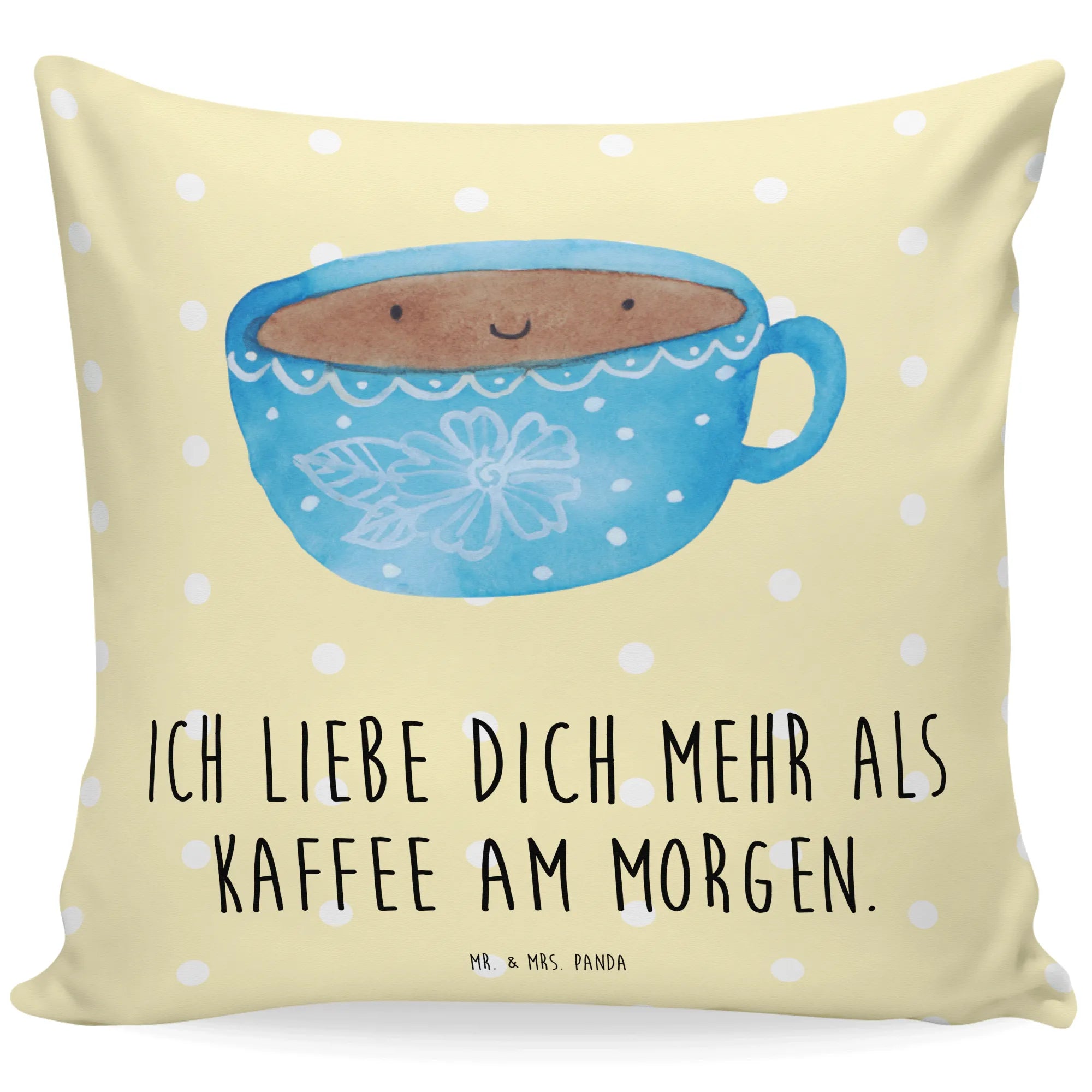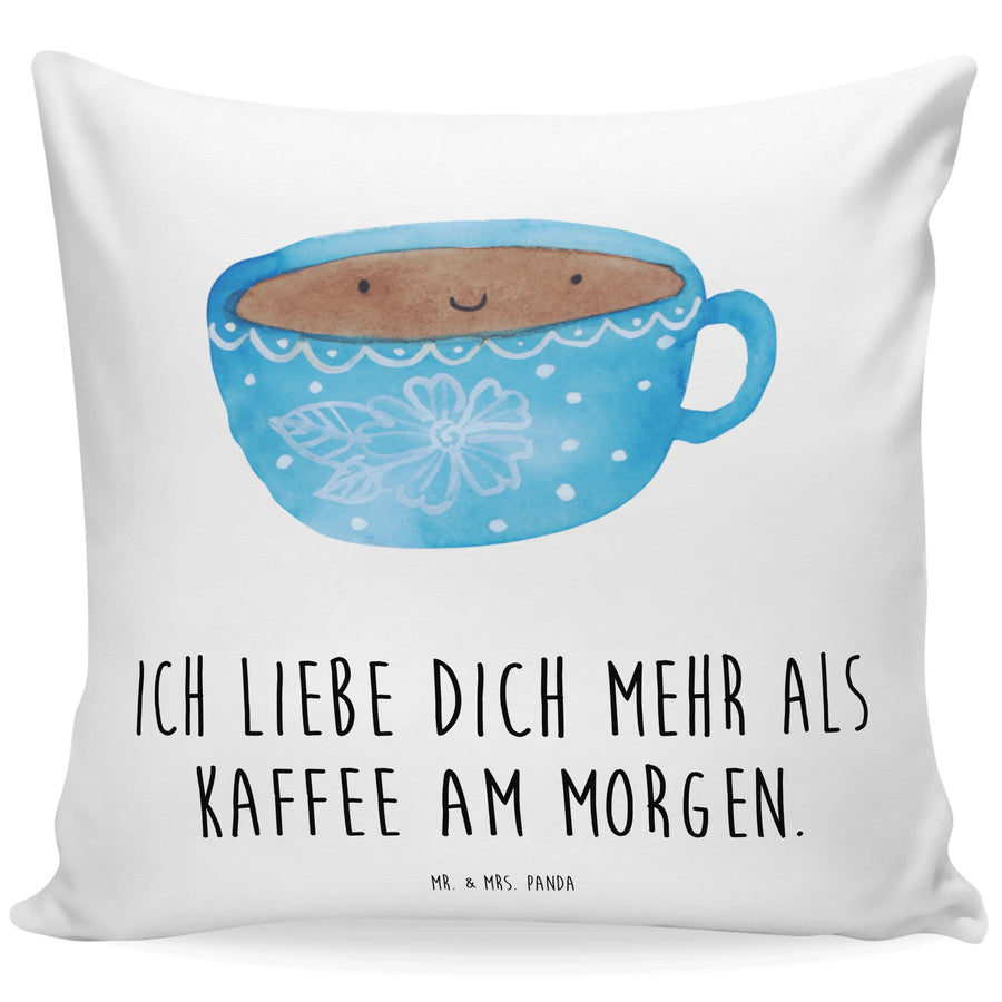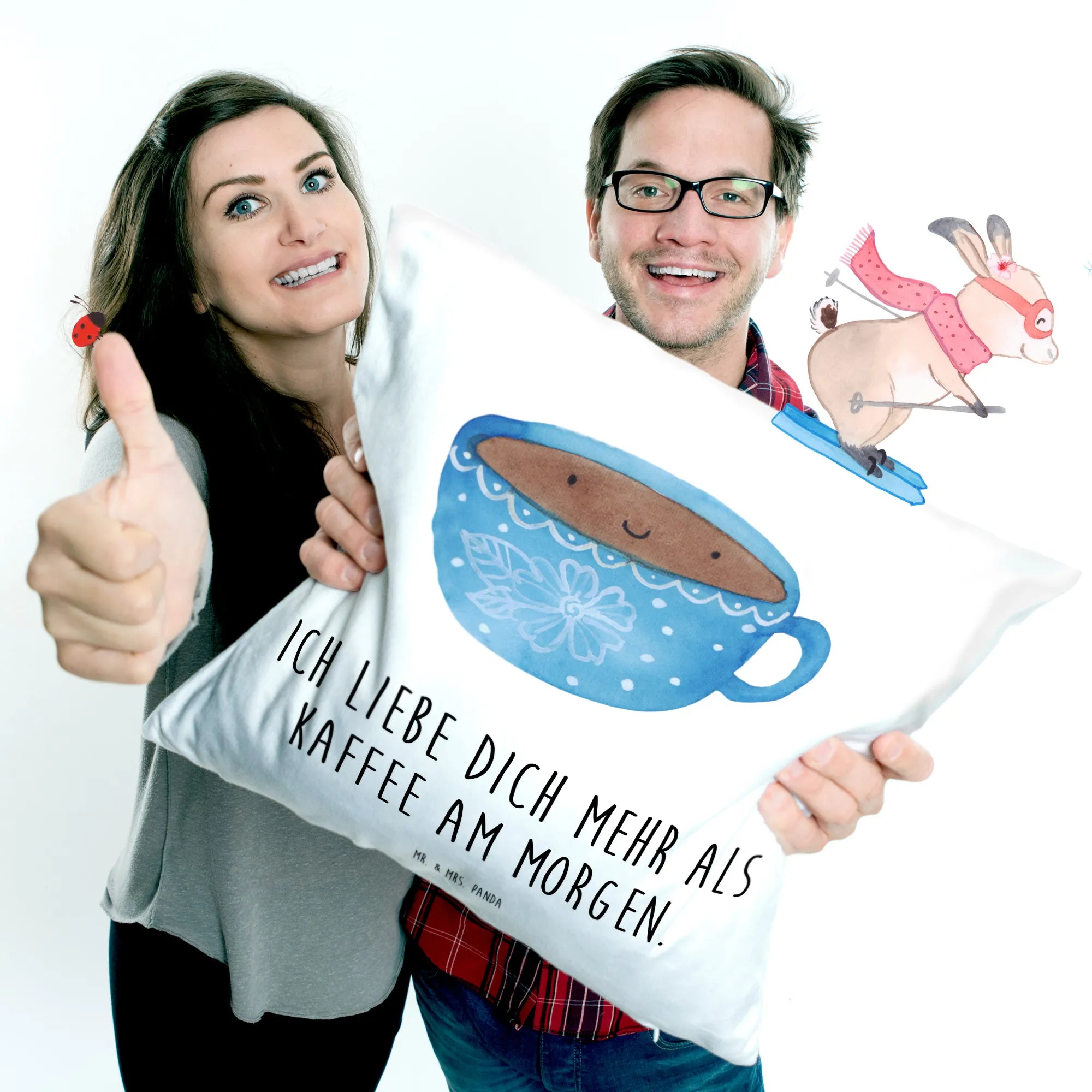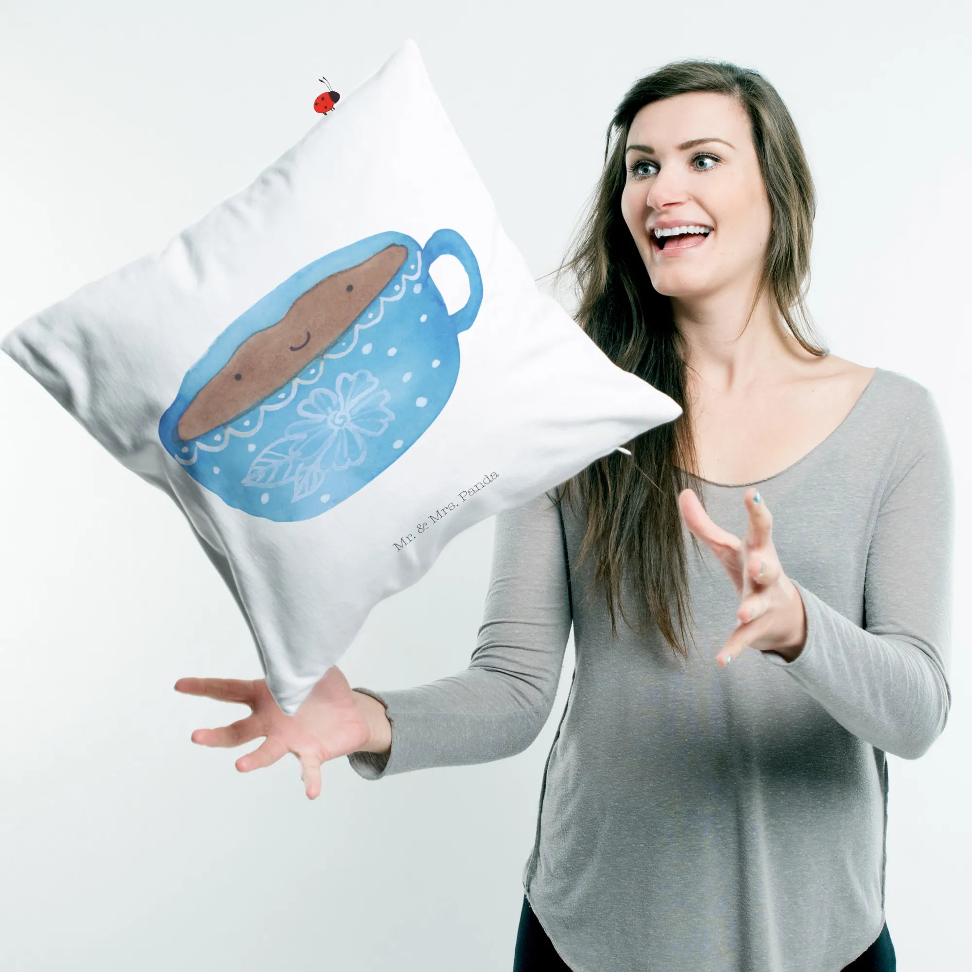 Das perfekte Geschenk für Freunde, Verwandte oder Kollegen - die Kissenhülle mit dem süßen Kaffee-Motiv aus der Small World Kollektion von Mr. & Mrs. Panda! Diese bezaubernde Kissenhülle in der Größe 40x40 cm ist nicht nur ein tolles Dekokissen, sondern bringt auch einen Hauch guter Laune in jedes Wohnzimmer oder Schlafzimmer.