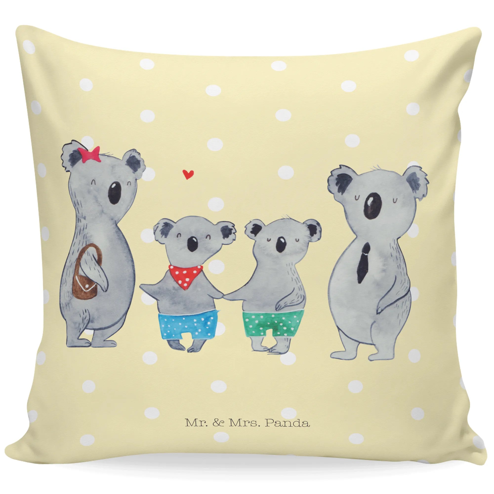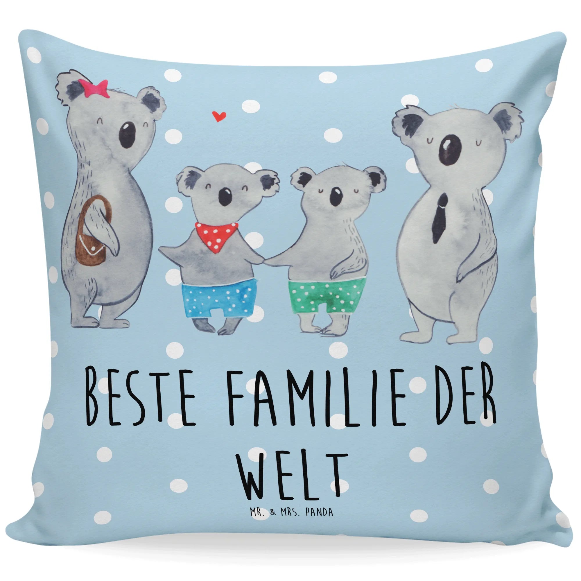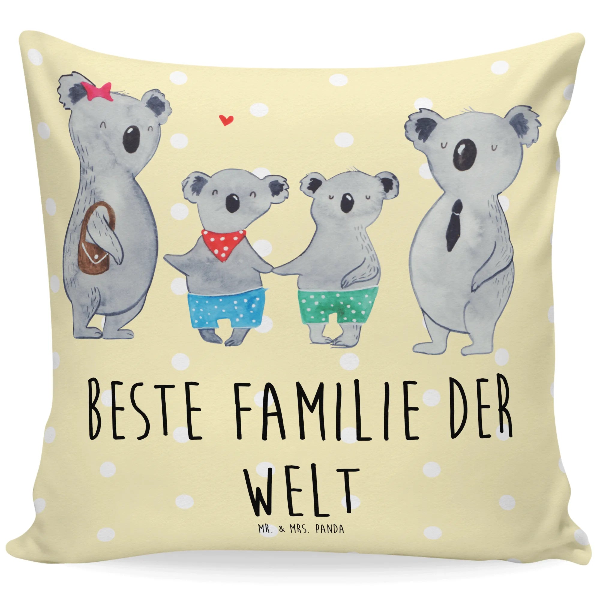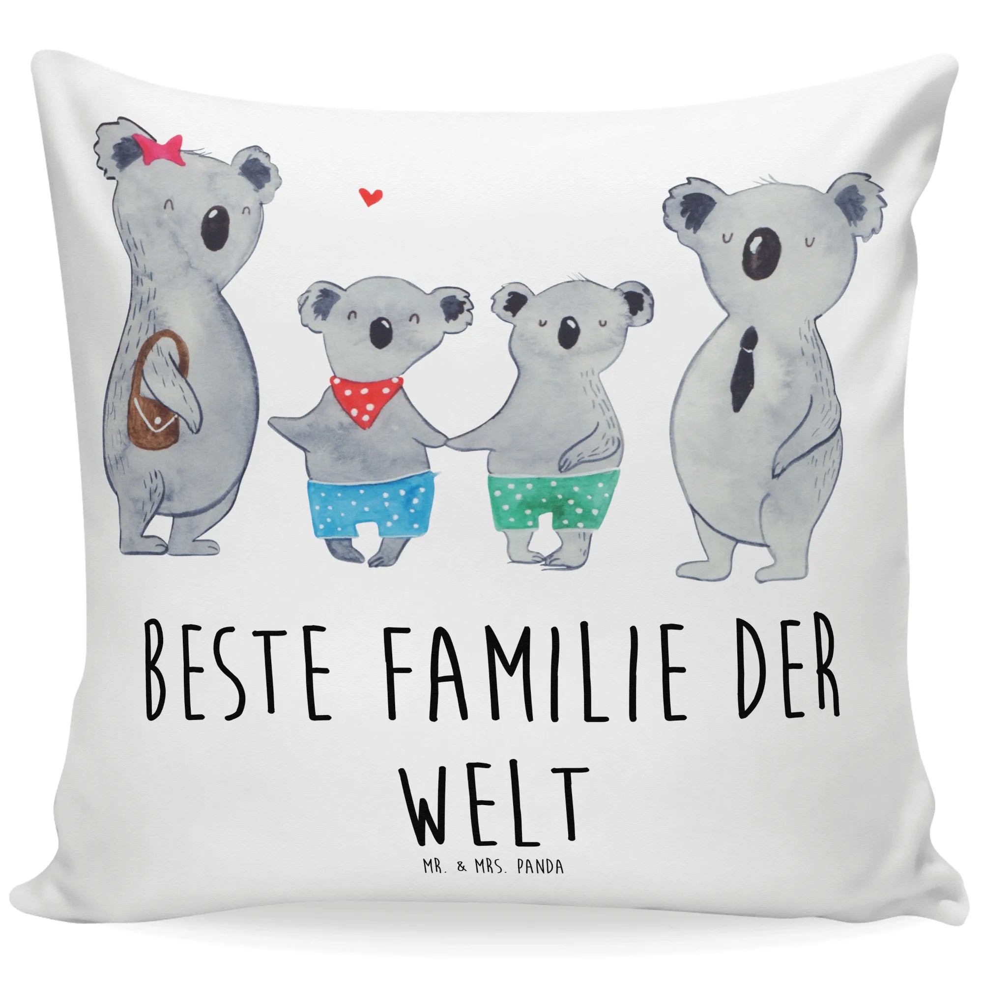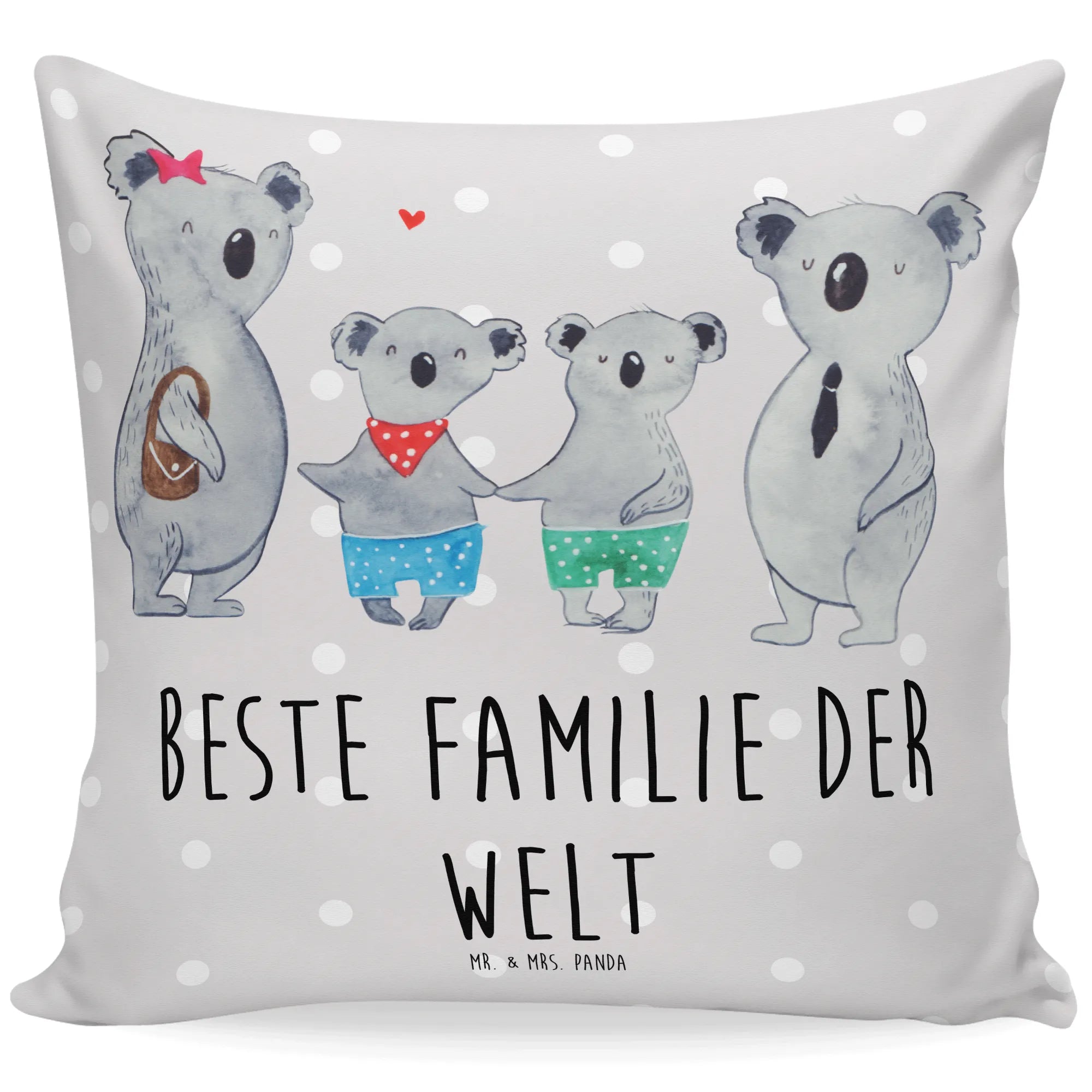 Das 40x40 Kissen mit dem liebevollen Motiv der Koala Familie von Mr. & Mrs. Panda ist das perfekte Geschenk für deine Liebsten! Die Kissenhülle ist aus superfluschiger Mikrofaser gefertigt und die entnehmbare Füllung sorgt für einen gemütlichen Komfort, ideal für eine entspannte Zeit auf dem Sofa. Mit seinem fröhlichen Design mit vier Koalas, das die beste Familie der Welt zelebriert, bringt es Freude in jedes Zuhause.