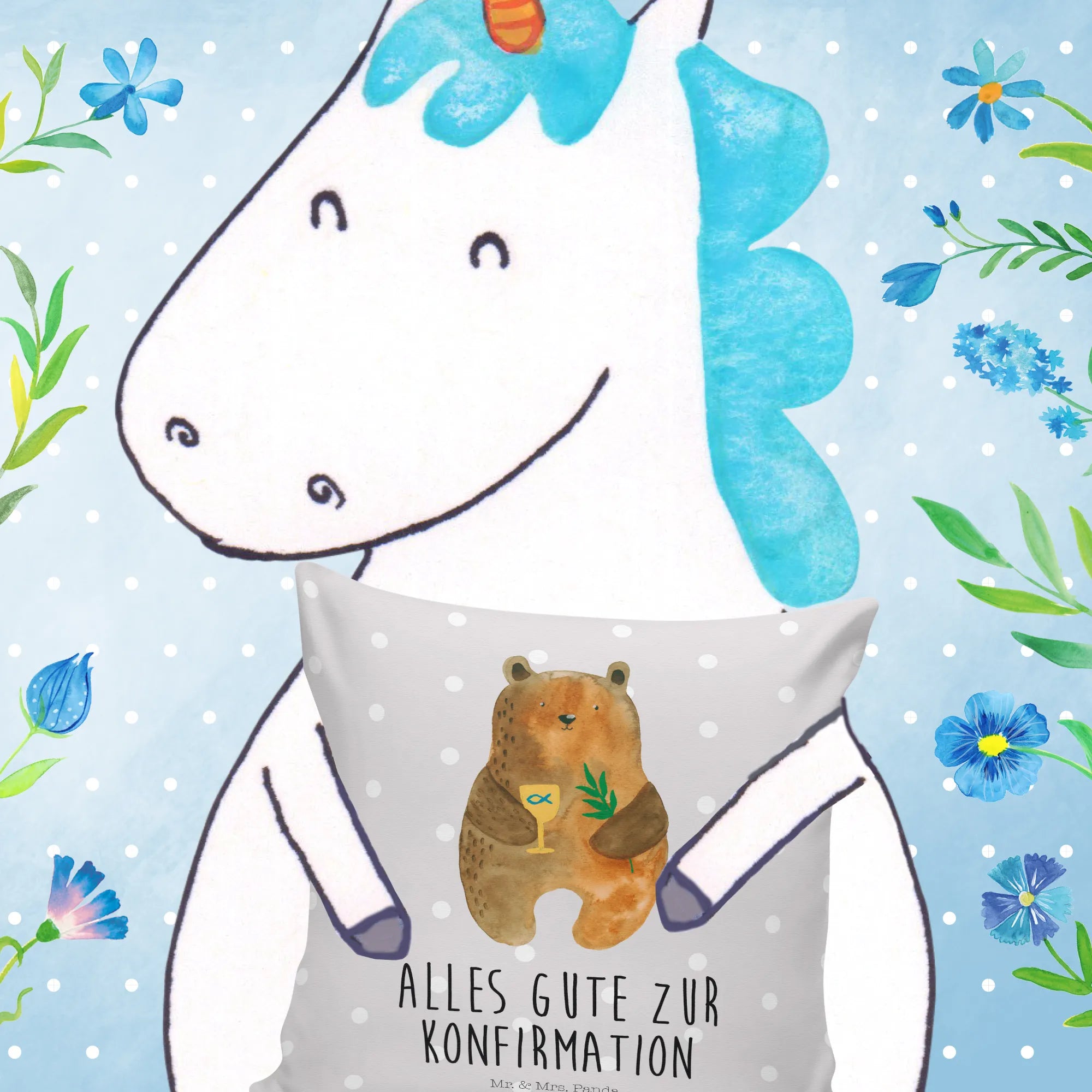 Das Kissen Konfirmation-Bär von Mr. & Mrs. Panda ist das perfekte Geschenk für jede Konfirmation.