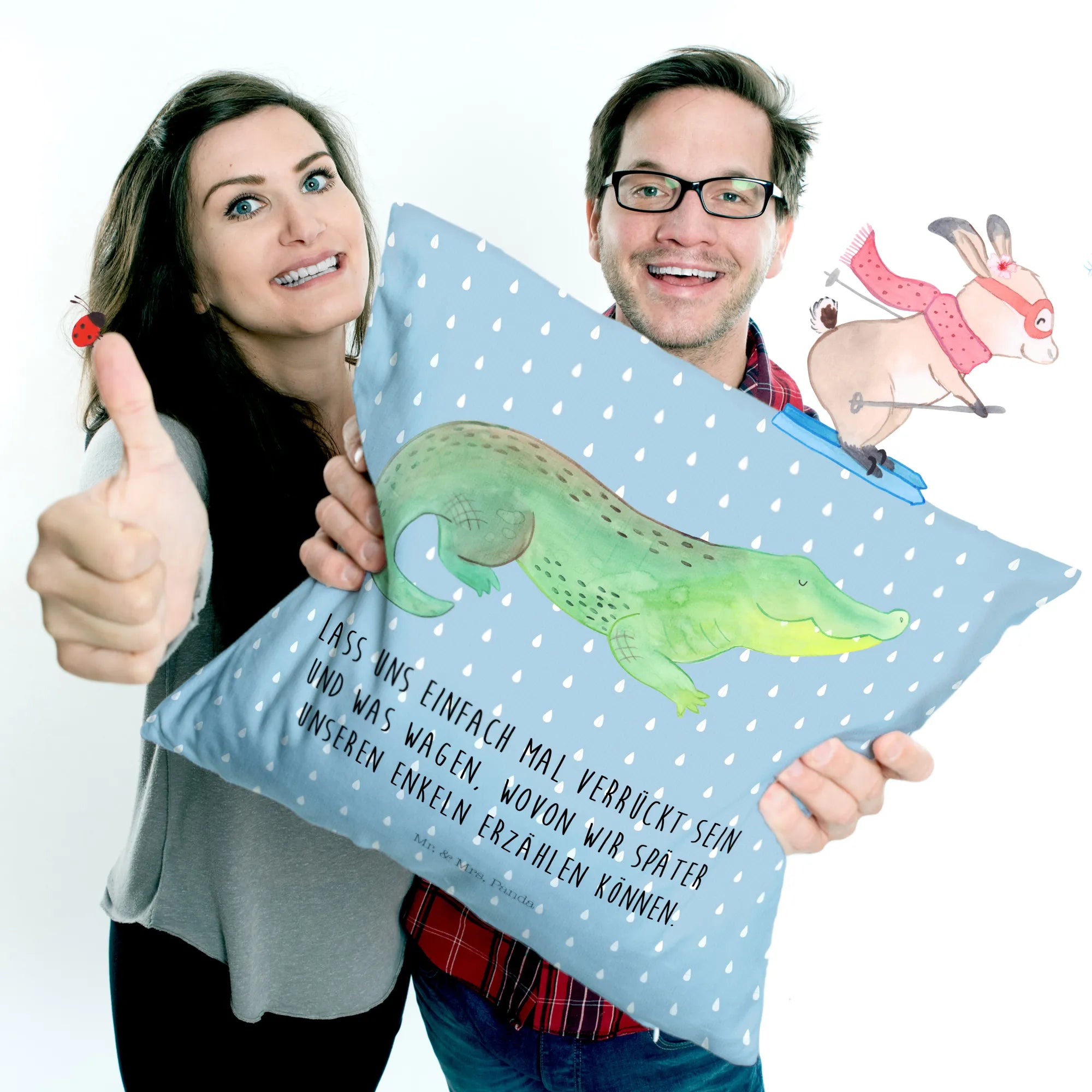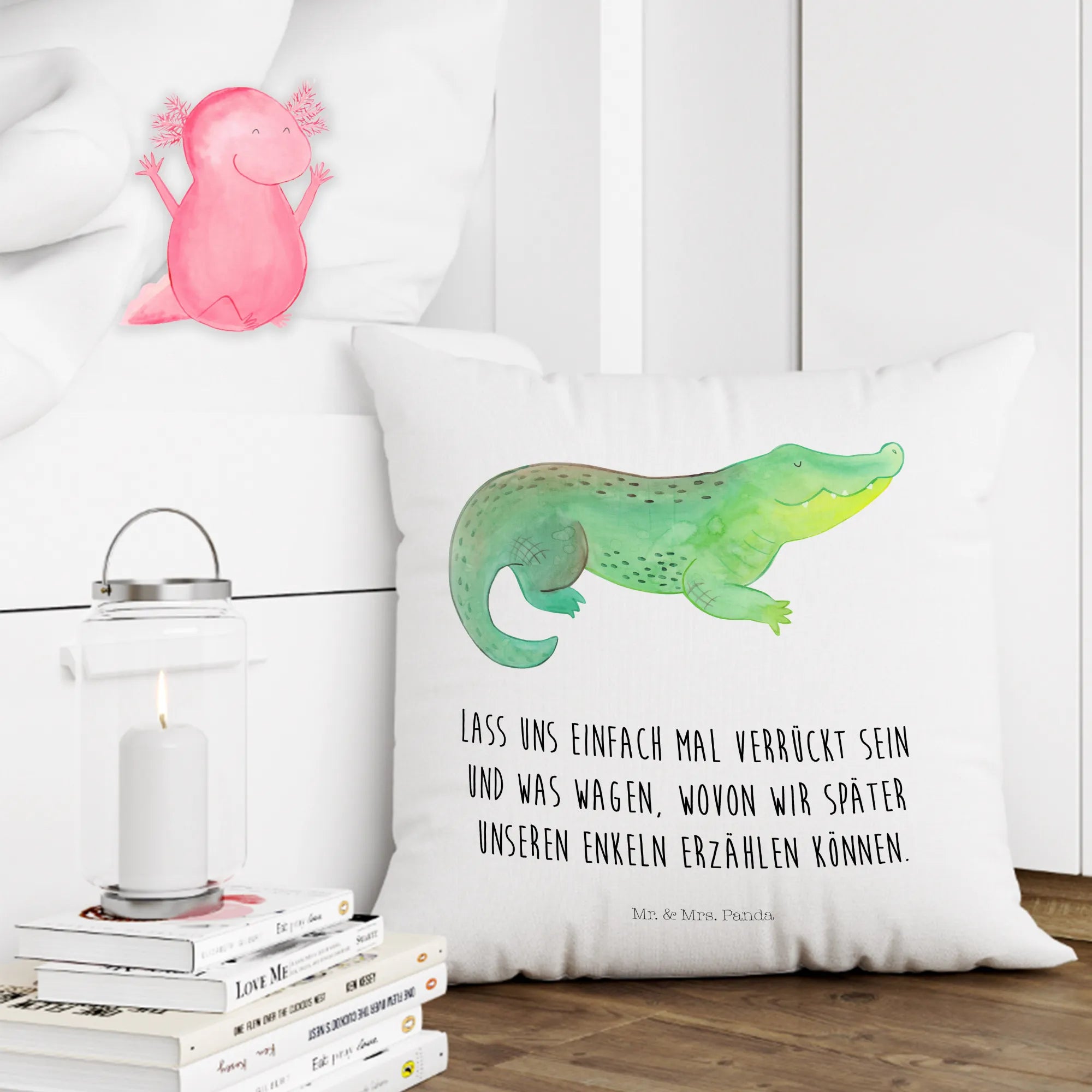 Entspanne dich und lasse die Sorgen des Alltags hinter dir mit unserem wundervollen 40x40 Kissen von Mr. & Mrs. Panda! Dieses einzigartige Kissen mit dem bezaubernden Krokodil-Motiv bringt die richtige Portion Abenteuerlust in dein Zuhause.