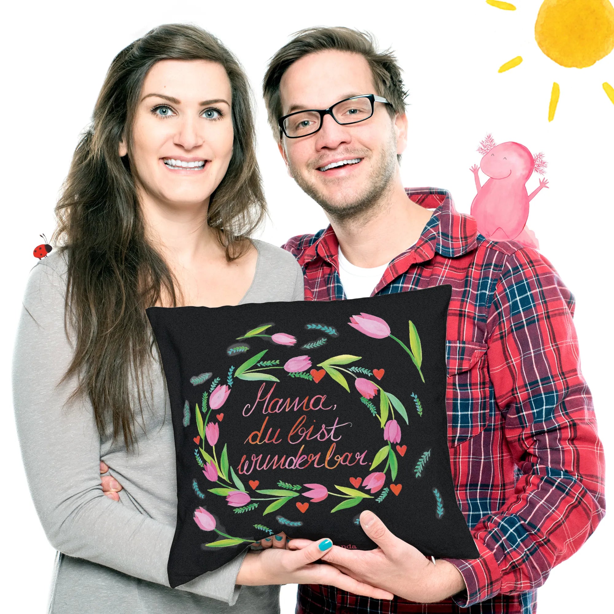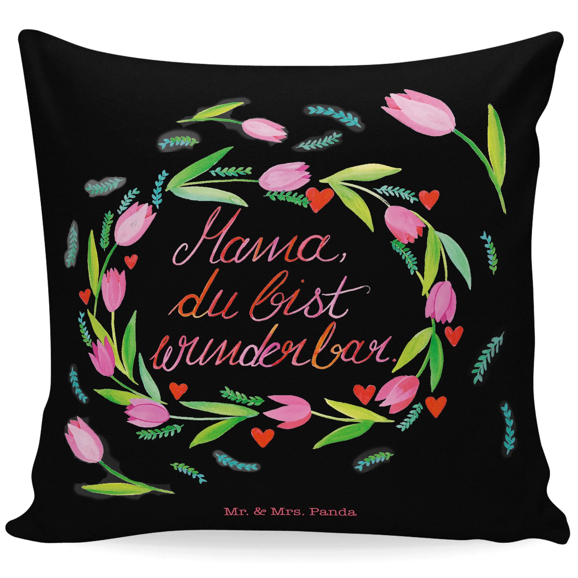Ein wunderbares Geschenk für alle Mamas! Unsere Kissenhülle "Mama Tulpen" aus der besonderen Wild & Free Kollektion von Mr. & Mrs. Panda ist nicht nur ein echter Blickfang, sondern auch eine liebevolle Botschaft an deine Mutter. Mit dem schönen Spruch "Mama, du bist wunderbar" bringst du ein Lächeln auf ihr Gesicht und zeigst ihr, wie viel sie dir bedeutet.