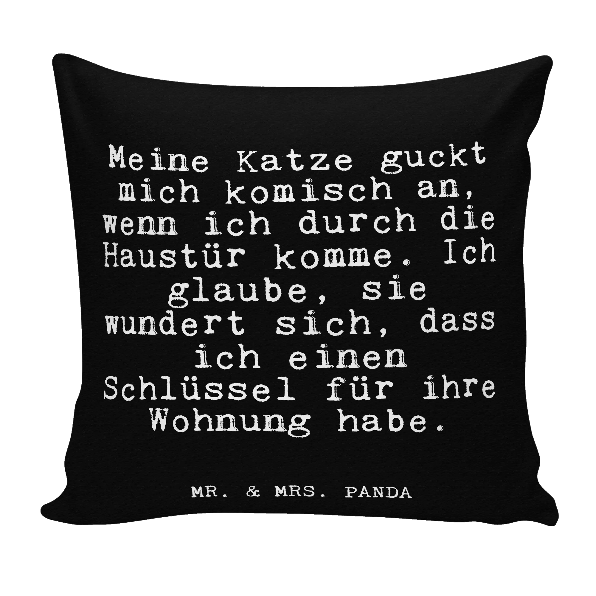 Du bist auf der Suche nach dem perfekten Geschenk für einen Katzenliebhaber oder möchtest deinem eigenen Zuhause einen besonders charmanten Touch verleihen? Dann ist das 40x40 Kissen mit dem liebevollen Spruch 'Meine Katze guckt mich komisch an, wenn ich durch die Haustür komme. Ich glaube, sie wundert sich, dass ich einen Schlüssel für ihre Wohnung habe.' genau das richtige für dich!