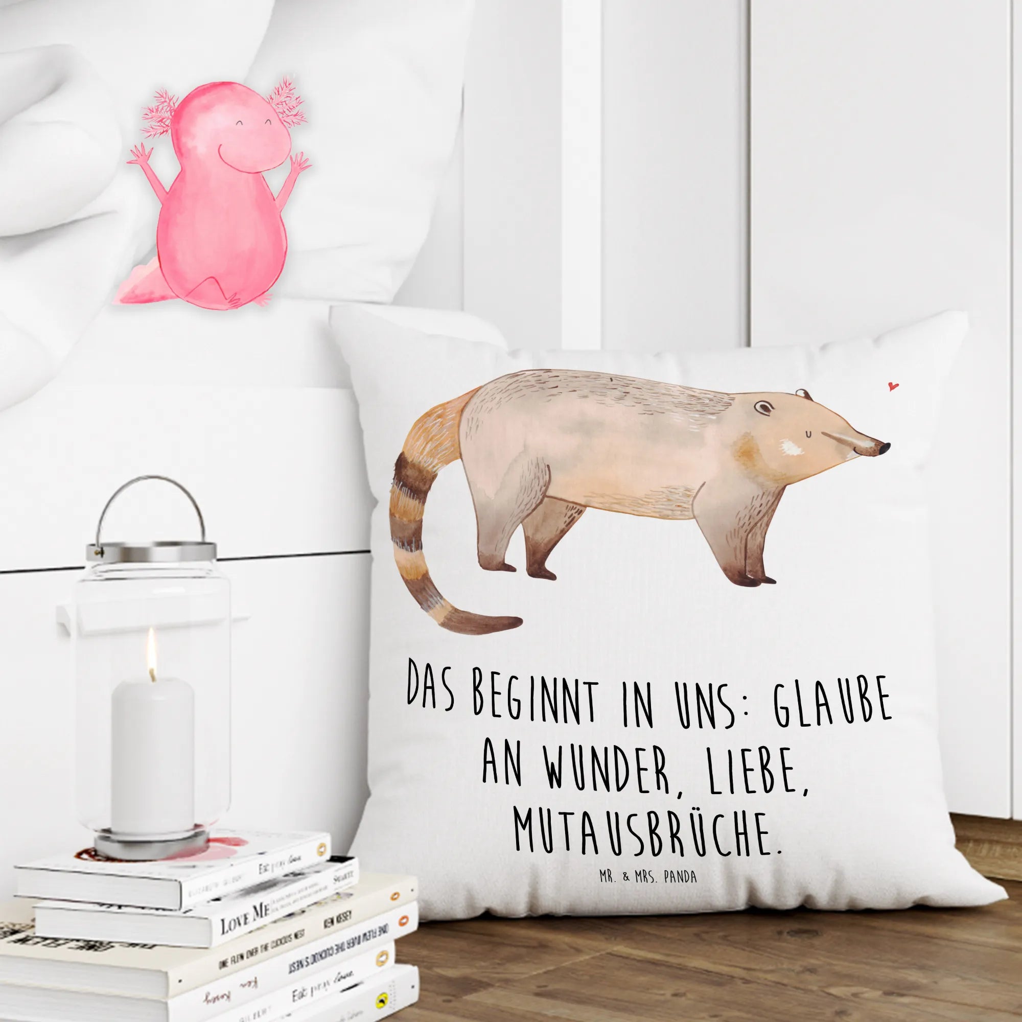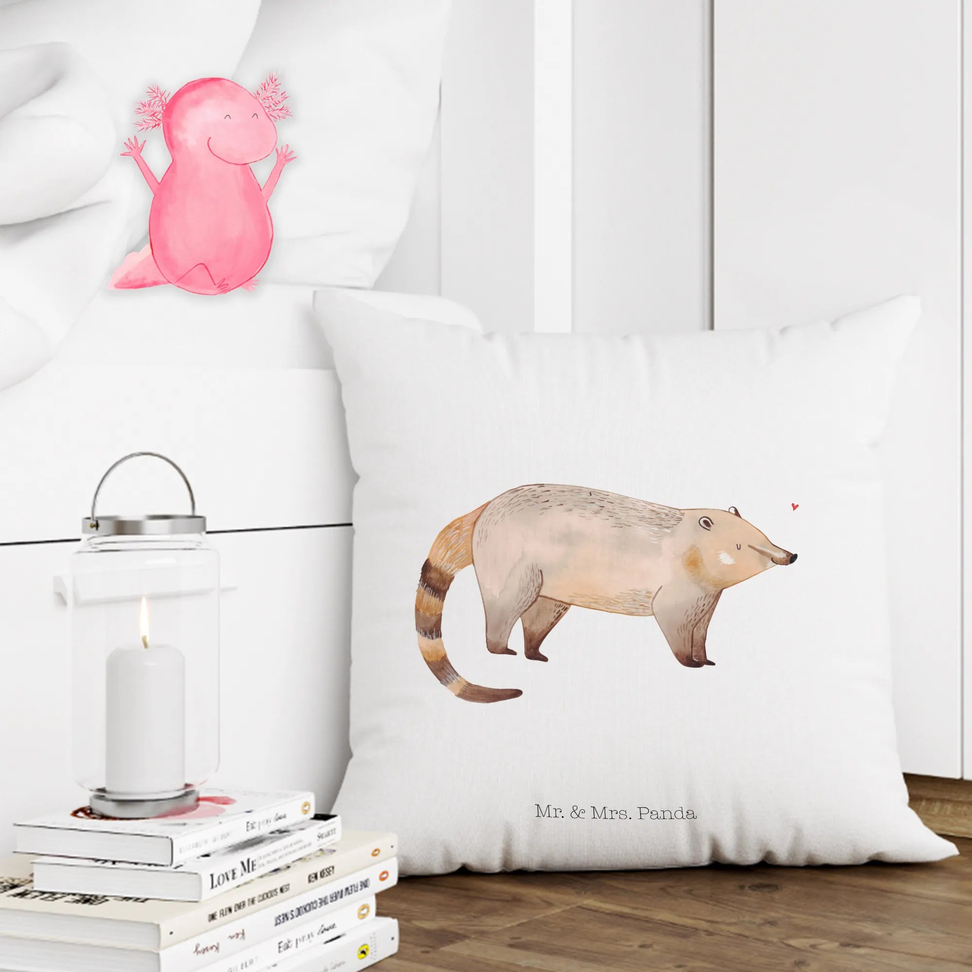 Die 40x40 cm große Kissenhülle aus superfluffiger Mikrofaser sorgt nicht nur für einen tollen Blickfang, sondern auch für den ultimativen Kuschelkomfort. Jeder Nasenbär ist einzigartig und bringt Gute Laune ins Haus! Egal, ob du das Kissen als Dekoration für dein Sofa oder als Kuschelkissen im Schlafzimmer verwendest - es fügt sich überall harmonisch ein.