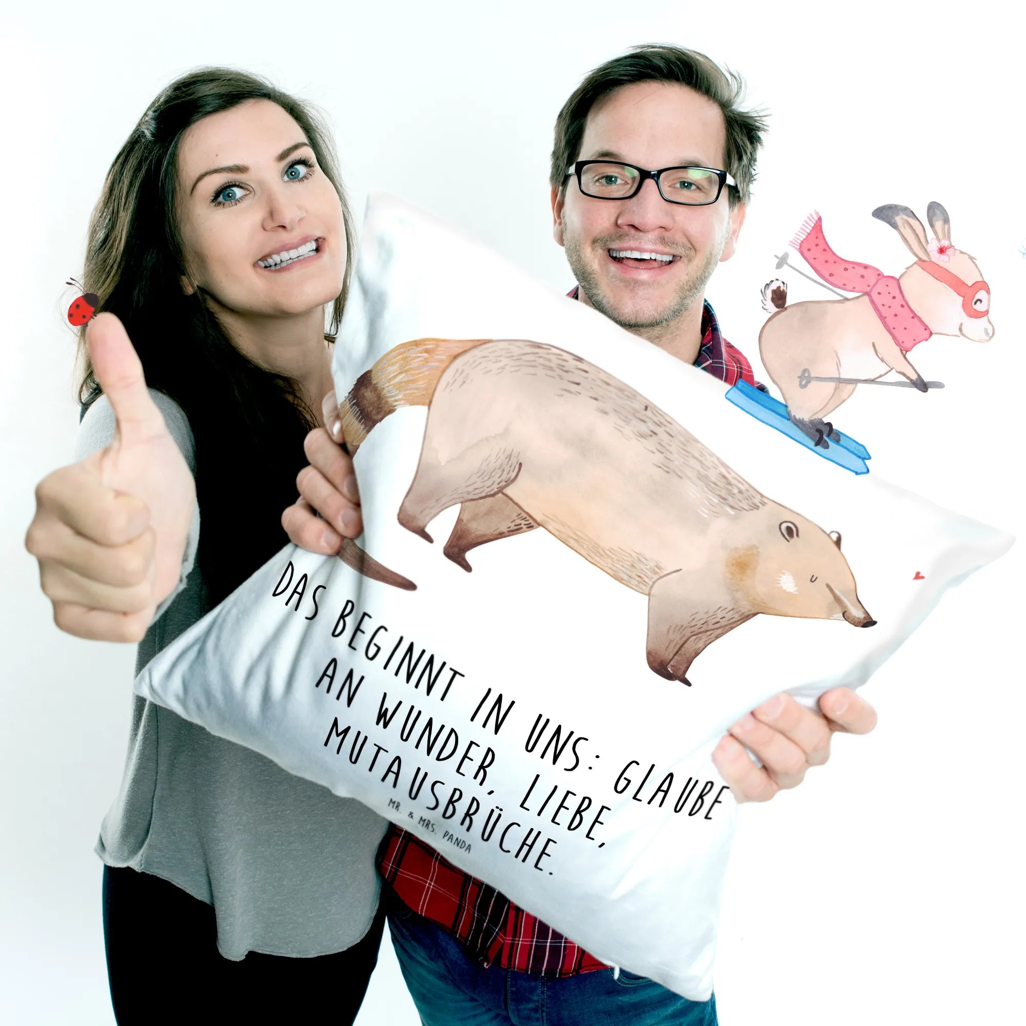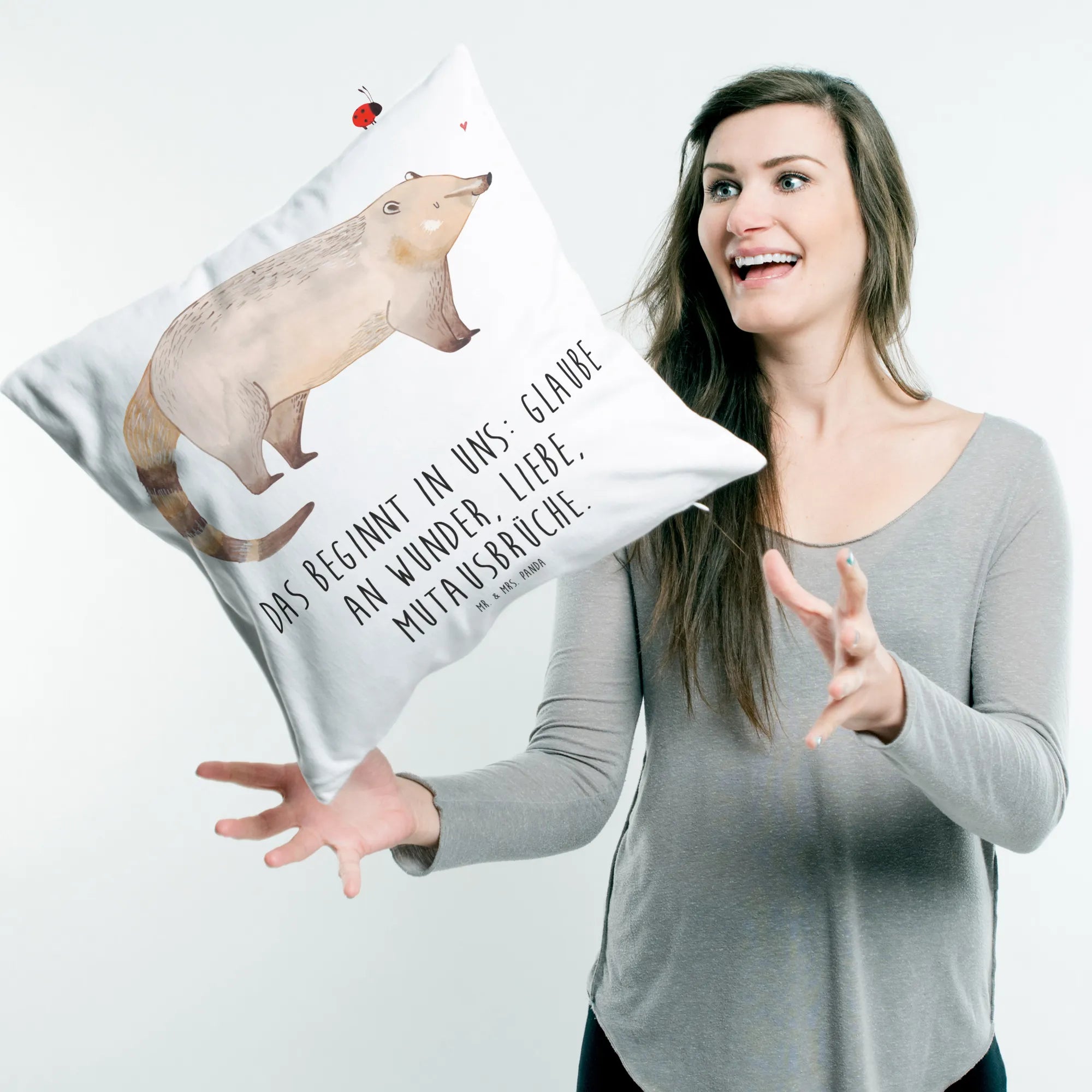 Glaube an Wunder, Liebe und die Freude am Leben – mit diesem Kissen ist das ganz einfach! Also greif zu und mach dir oder jemandem, den du liebst, eine Freude mit diesem hübschen Nasenbär-Kissen!