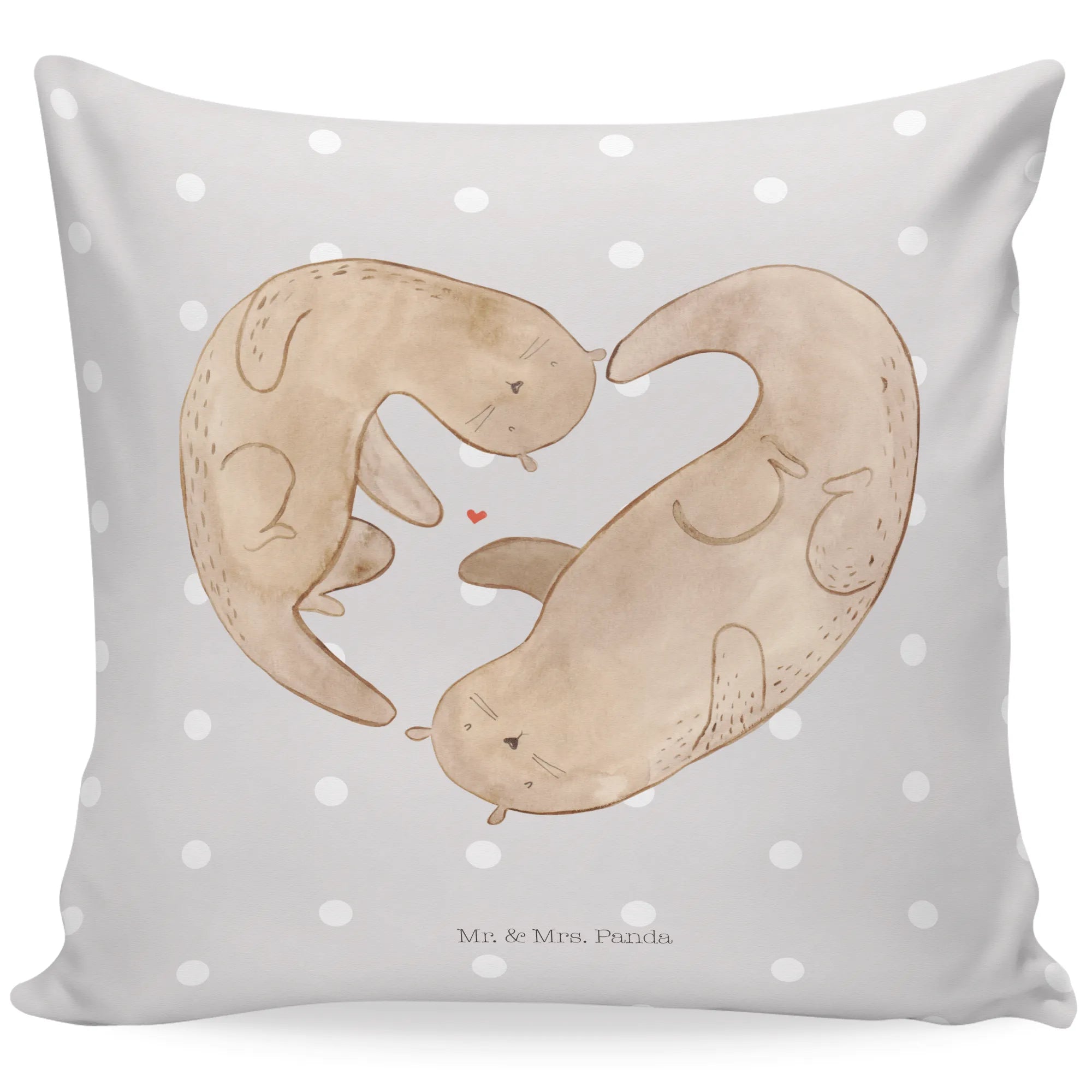 Entdecke das zauberhafte 40x40 Kissen mit dem entzückenden Otter Herz Motiv von Mr. & Mrs. Panda, das nicht nur dein Zuhause verschönert, sondern auch das perfekte Geschenk für all deine Liebsten ist.