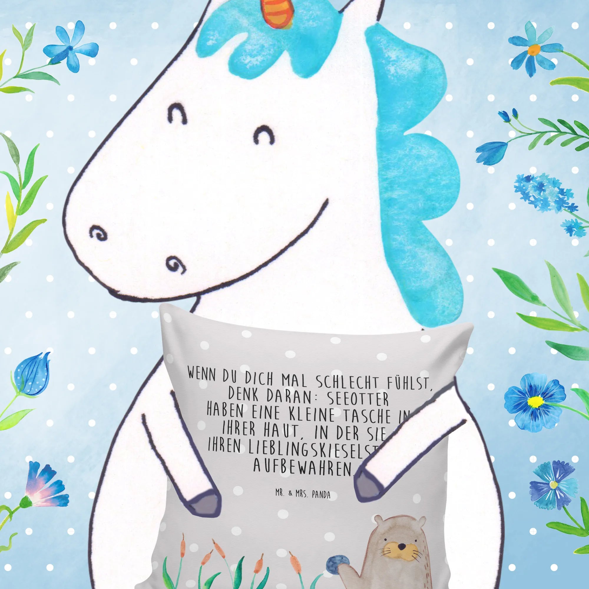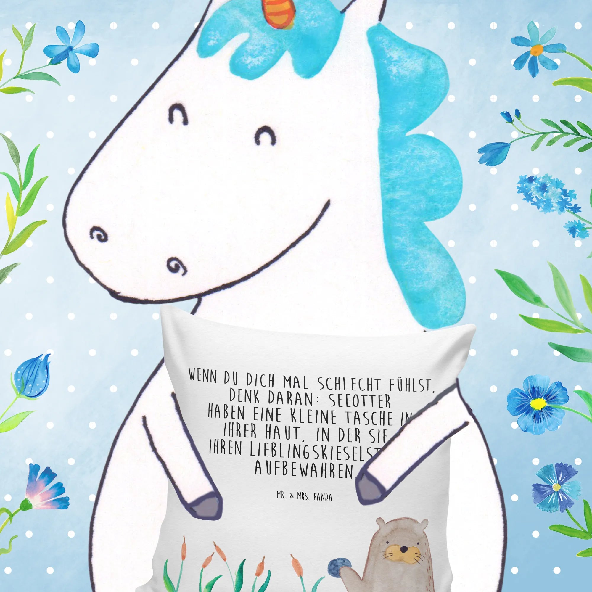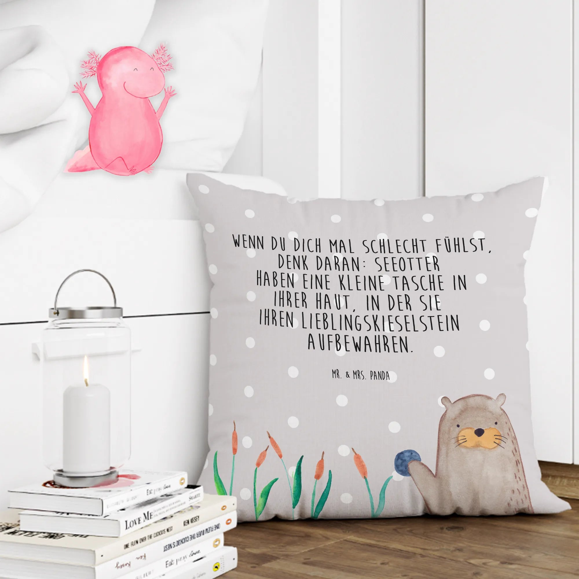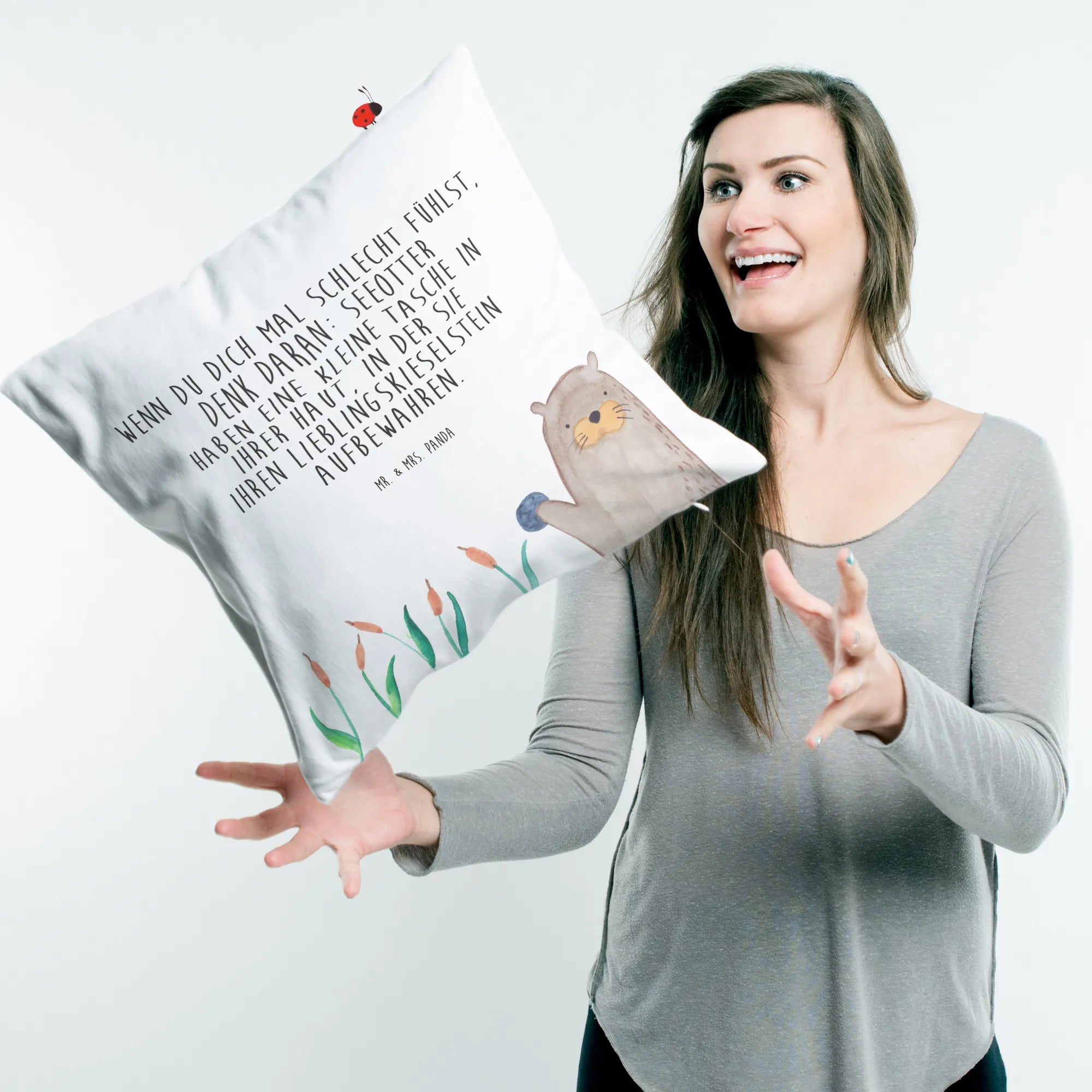 Der Slogan "Wenn du dich mal schlecht fühlst, denk daran: Seeotter haben eine kleine Tasche in ihrer Haut, in der sie ihren Lieblingskieselstein aufbewahren" gibt diesem Kissen eine besondere Note und kann dir helfen, die positiven Gedanken zurückzubringen. Besonders gut macht sich das Kissen im Wohnzimmer als Sofakissen oder Dekokissen und zieht alle Blicke auf sich. Ob zum Geburtstag, zur Einweihung oder einfach als kleine Freude zwischendurch, dieses zierliche Kissen bringt jedem ein Lächeln ins Gesicht.
