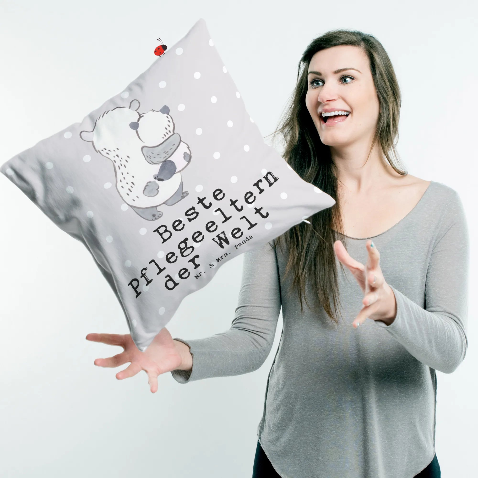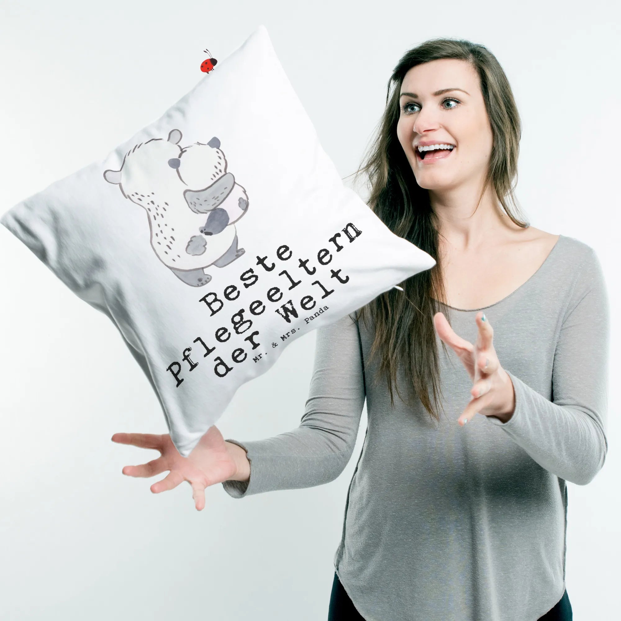 Das 40x40 Kissen mit dem bezaubernden Motiv "Beste Pflegeeltern der Welt" von Mr. & Mrs. Panda ist das perfekte Geschenk für alle, die Pflegeeltern sind oder eine ganz besondere Beziehung zu einem Pflegekind haben!